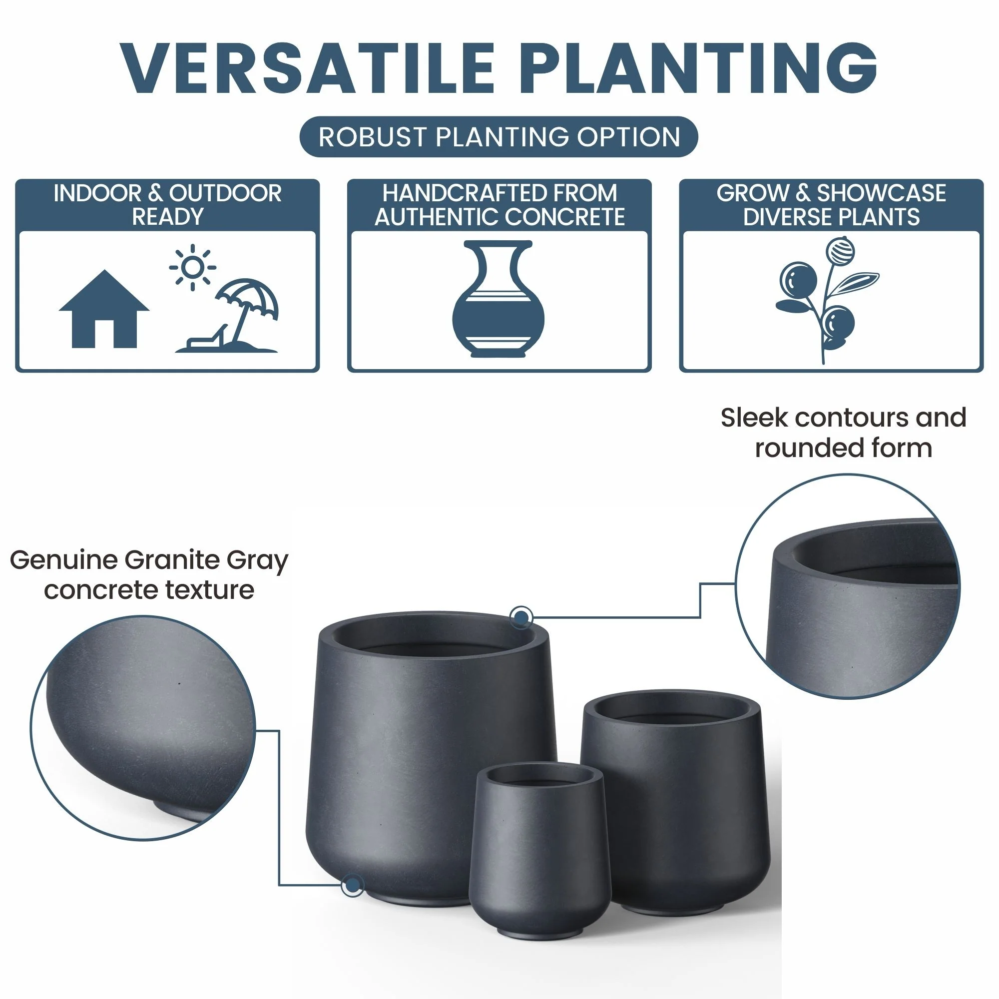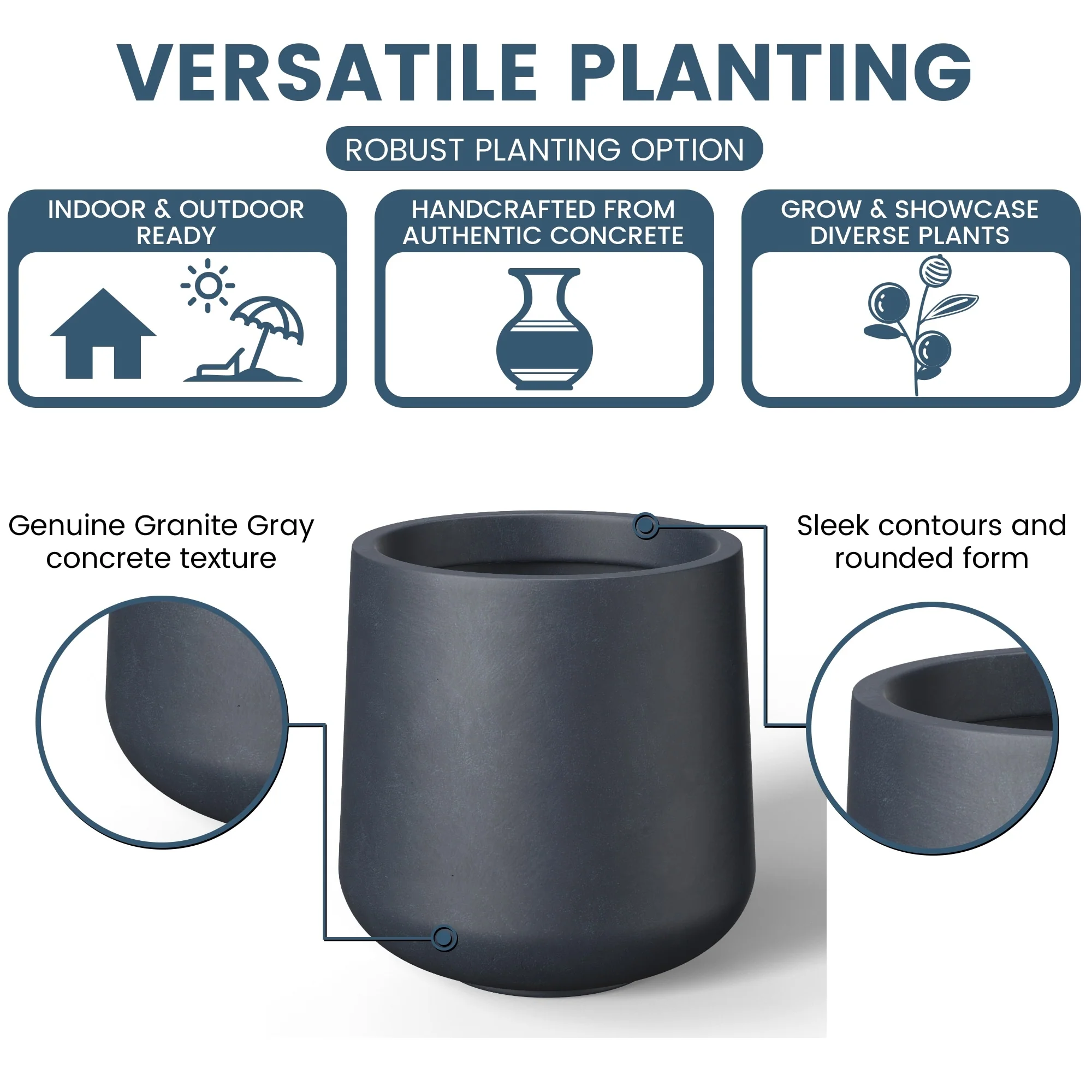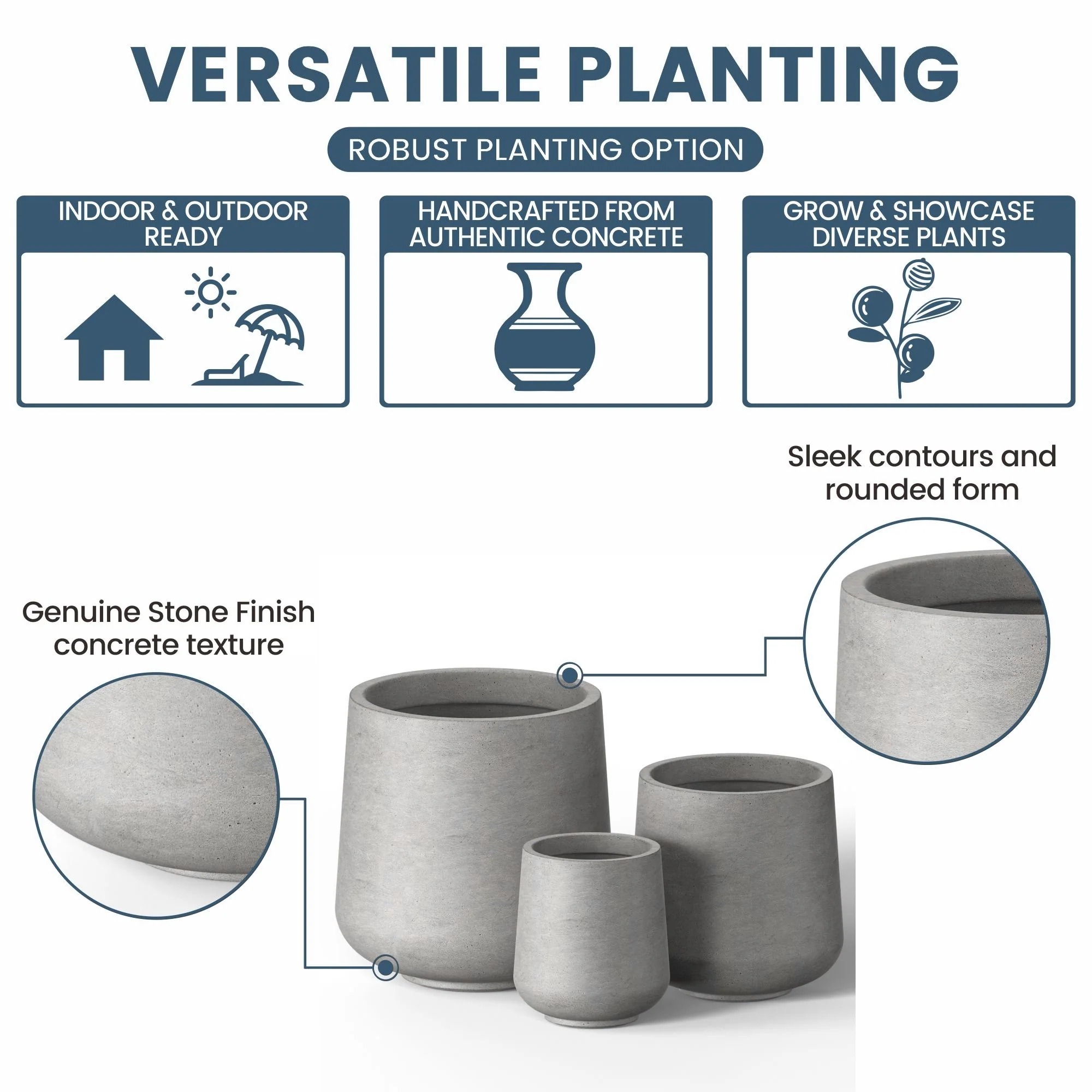 *Versatile Designs: From tall planters for outdoor plants to modern planters that make a statement, the Durx-litecrete collection offers a variety of shapes including round planters and tall planter pots