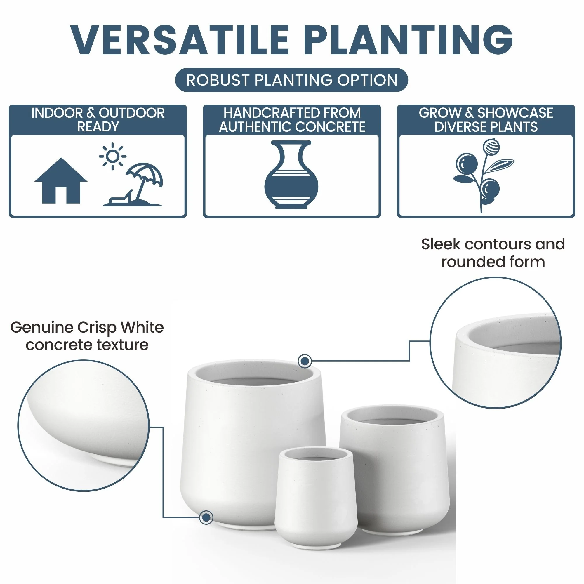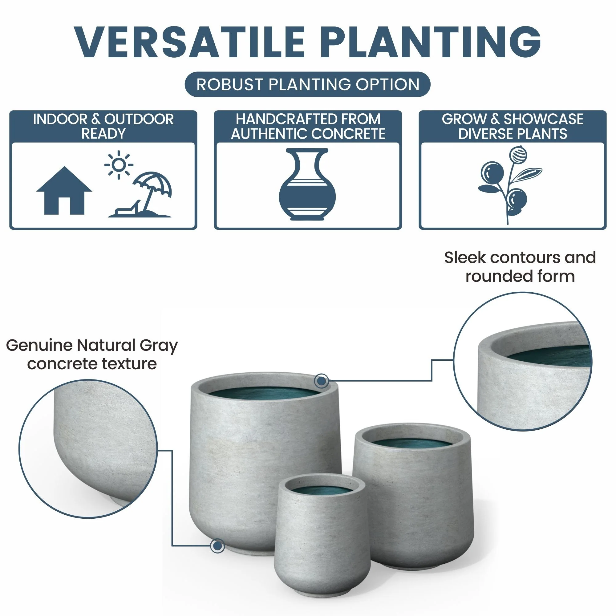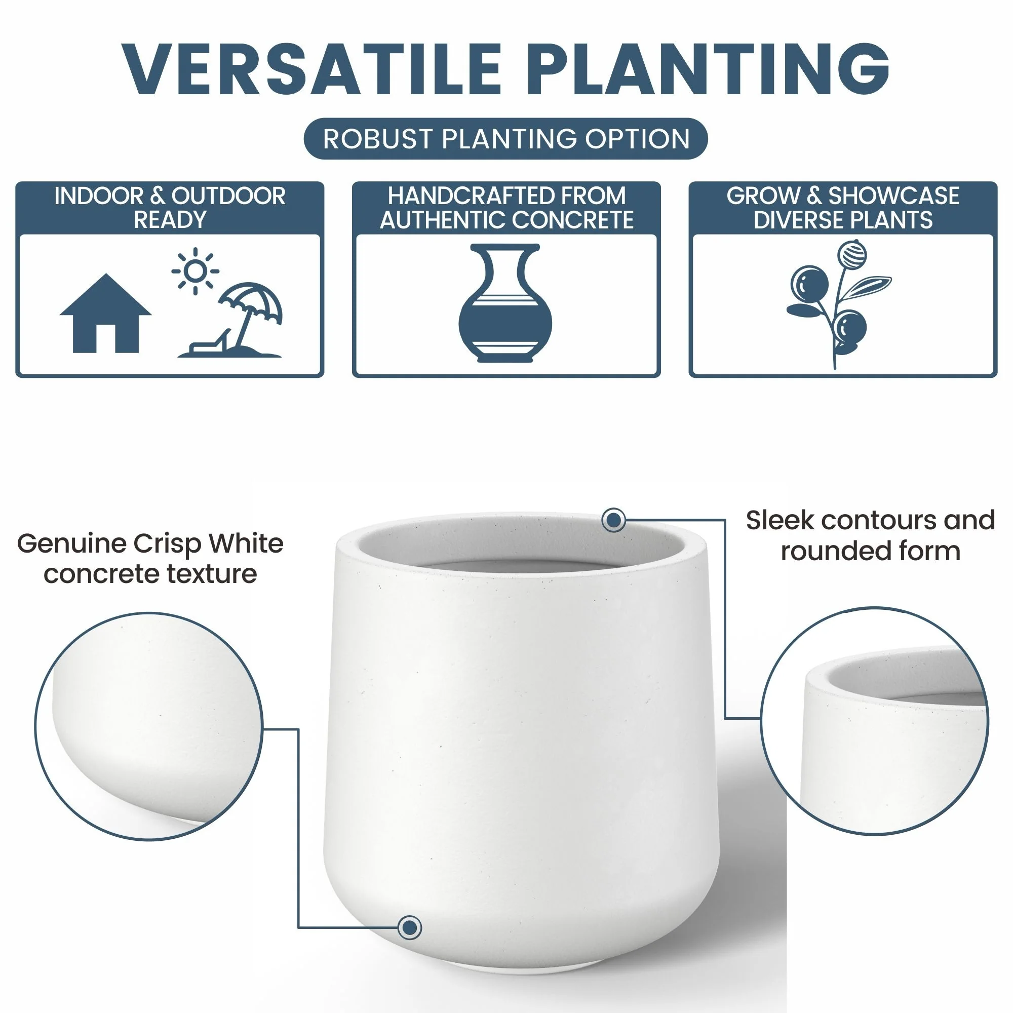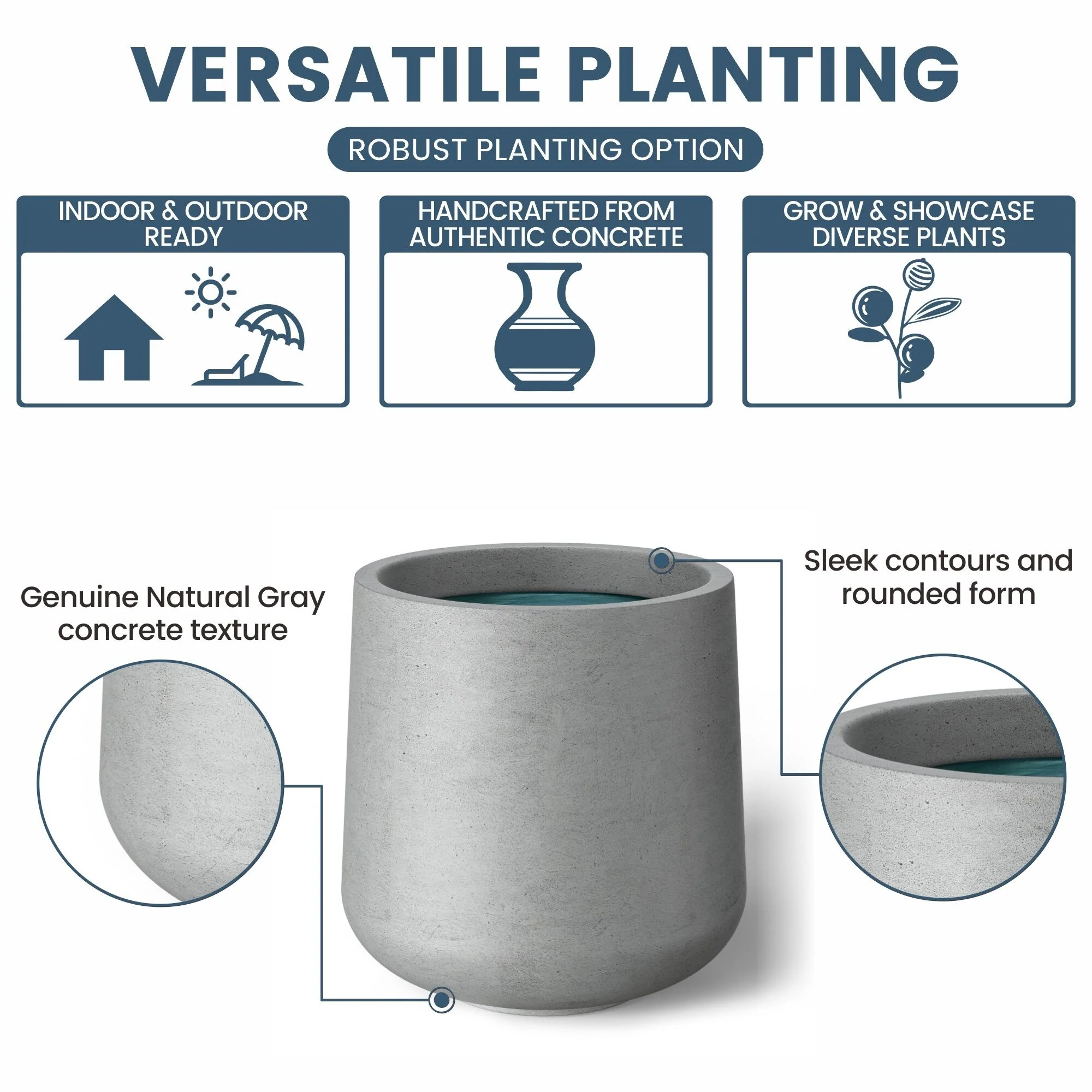 *Versatile Designs: From tall planters for outdoor plants to modern planters that make a statement, the Durx-litecrete collection offers a variety of shapes including round planters and tall planter pots