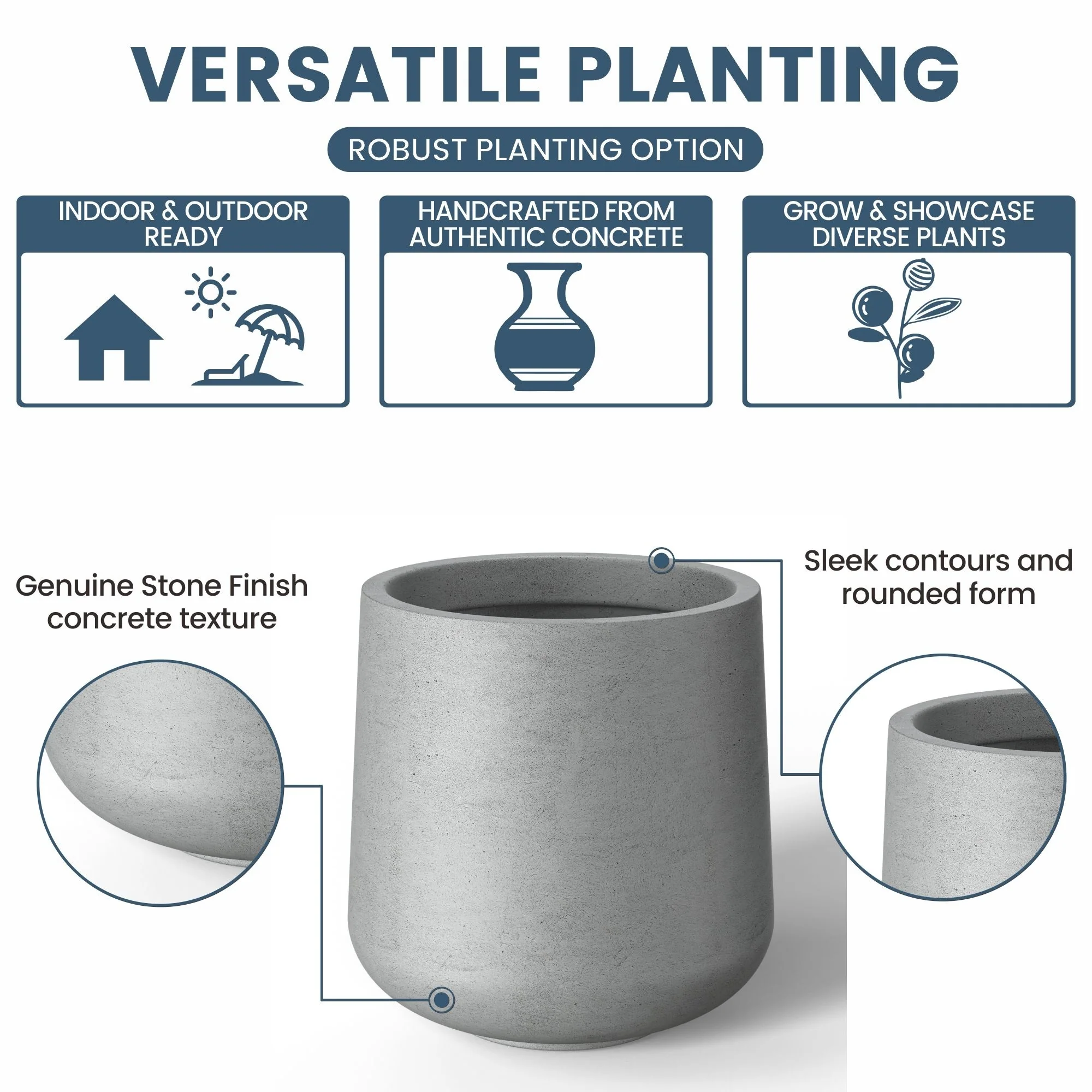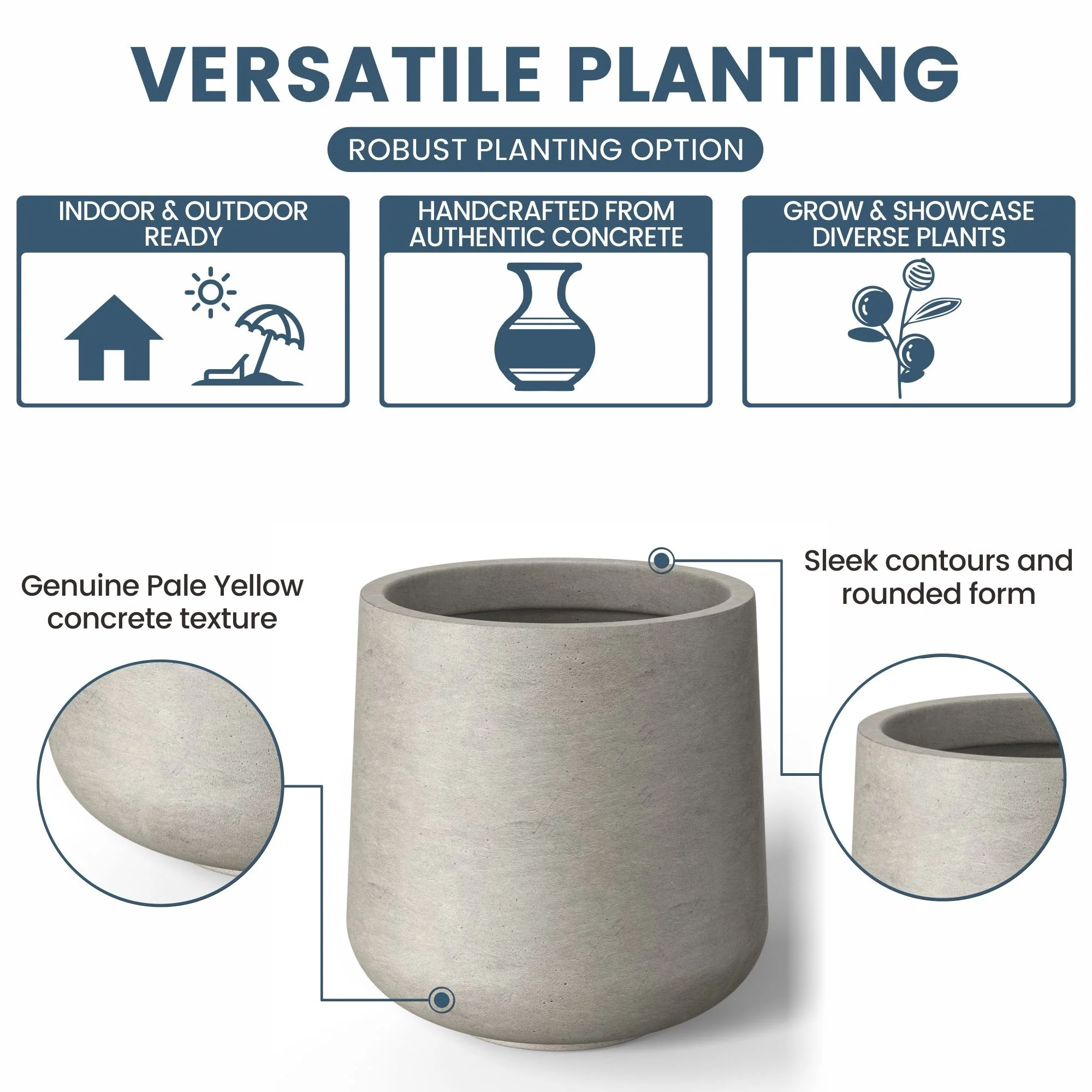 *Durability Meets Style: The cement planter and concrete planter indoor options are not only durable but also complement your home's modern décor with their stone and faux concrete finishes