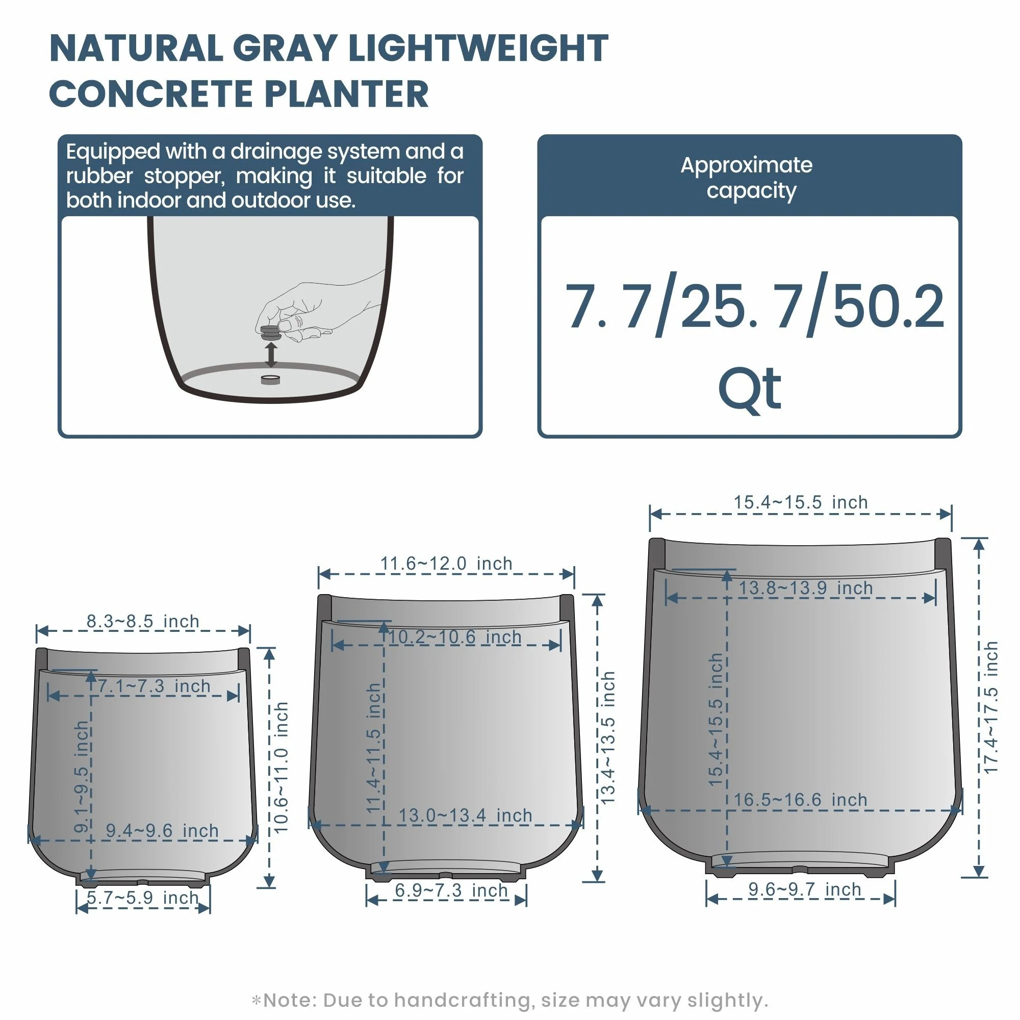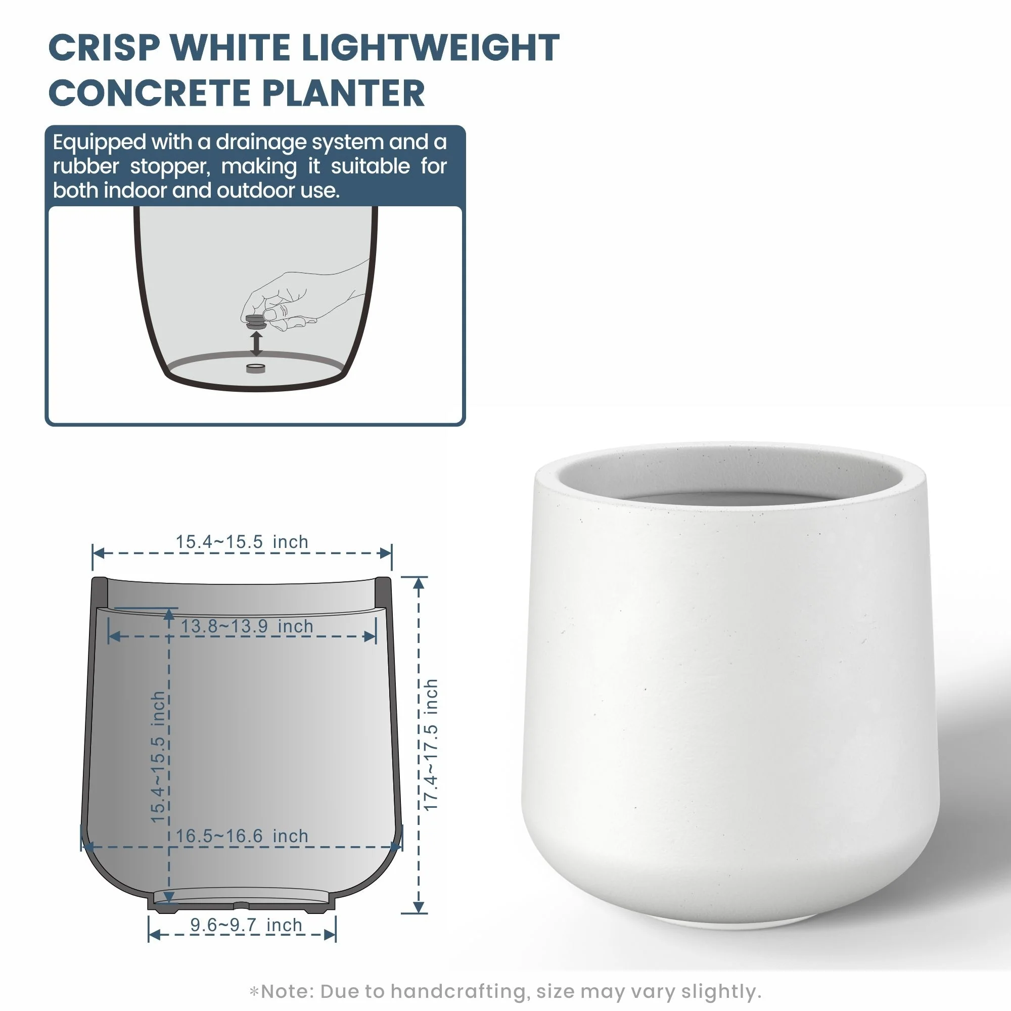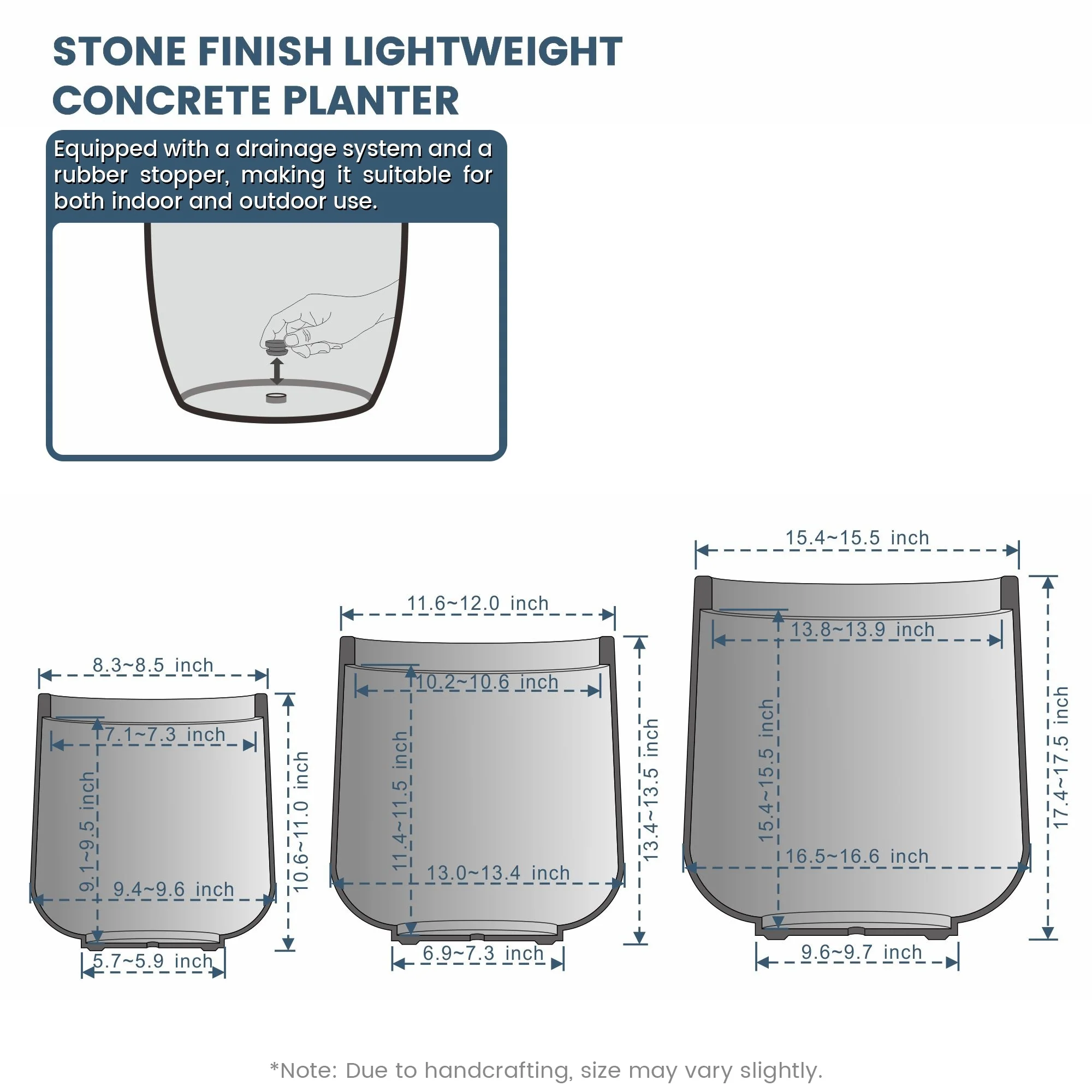 *Lightweight: Despite their robust concrete appearance, these planters are surprisingly light, making them easy to move and rearrange without sacrificing durability or style