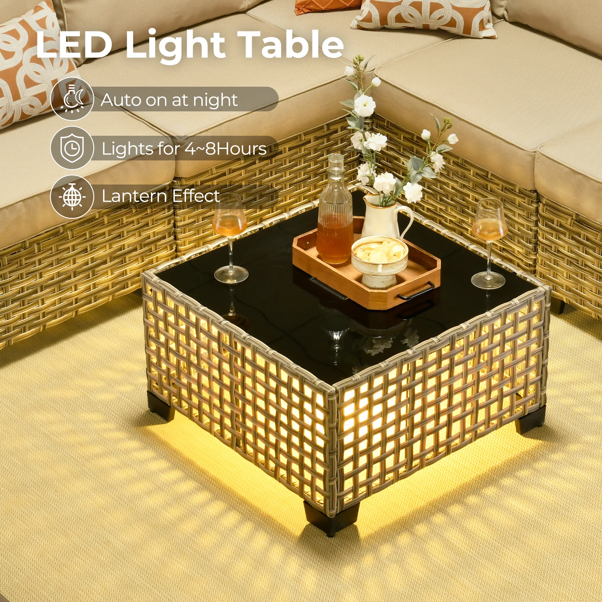 Enhanced Ambiance: Elevate your outdoor living with this stylish furniture set. The neutral color palette and refined wicker pattern integrate seamlessly with any décor, while the coffee table provides a handy surface for drinks and snacks, enhancing the overall outdoor ambiance.