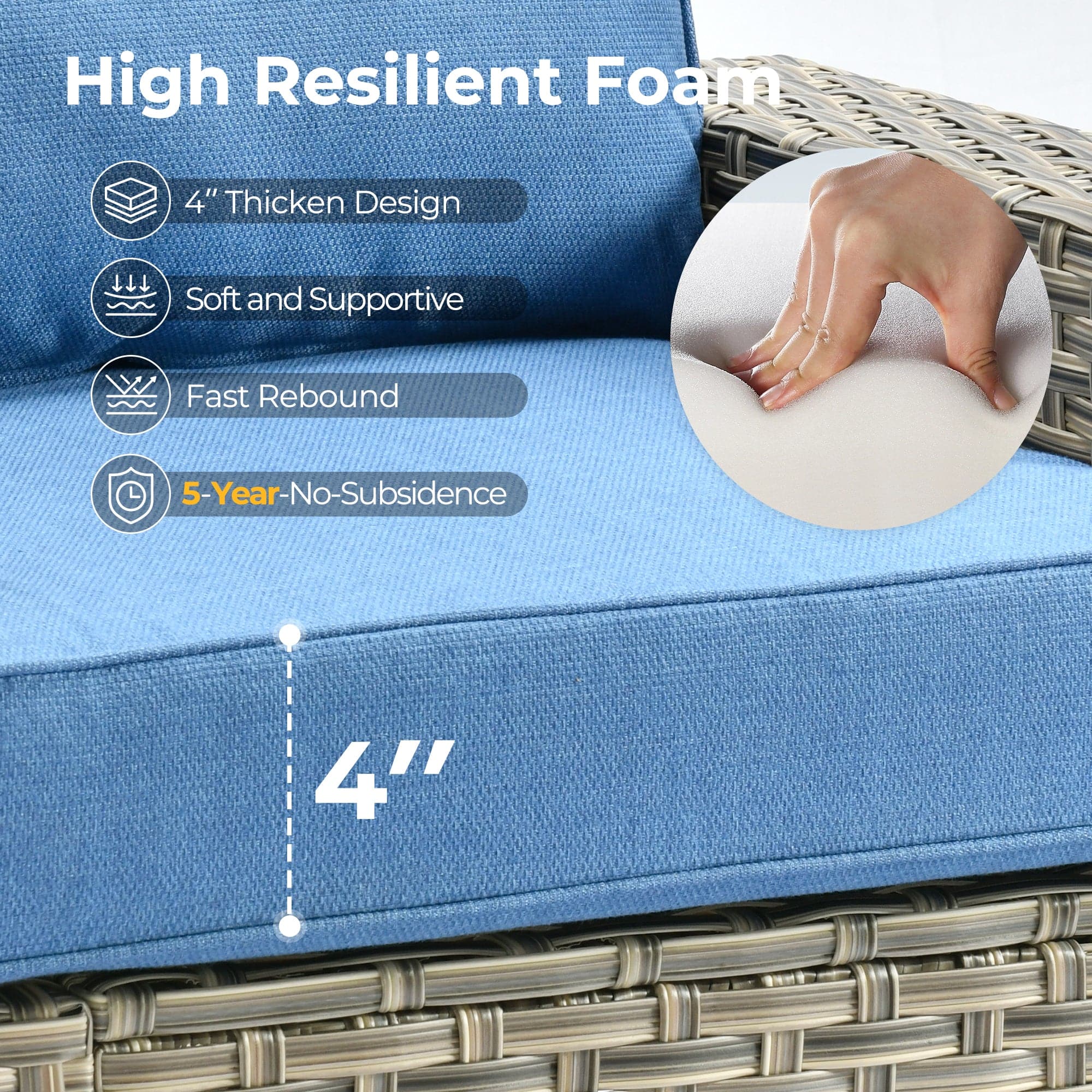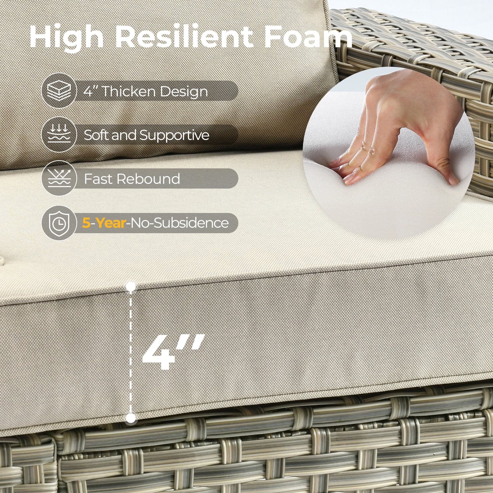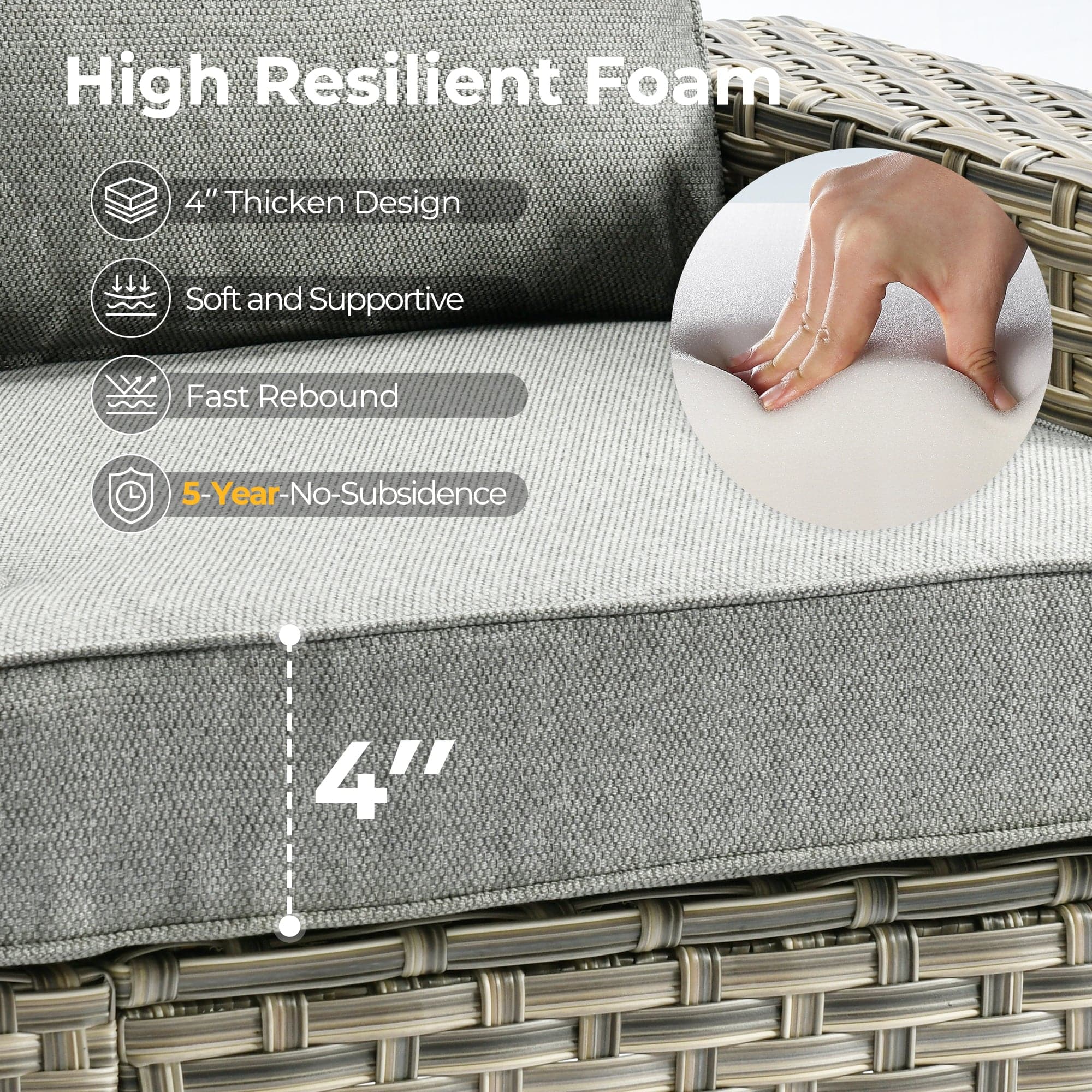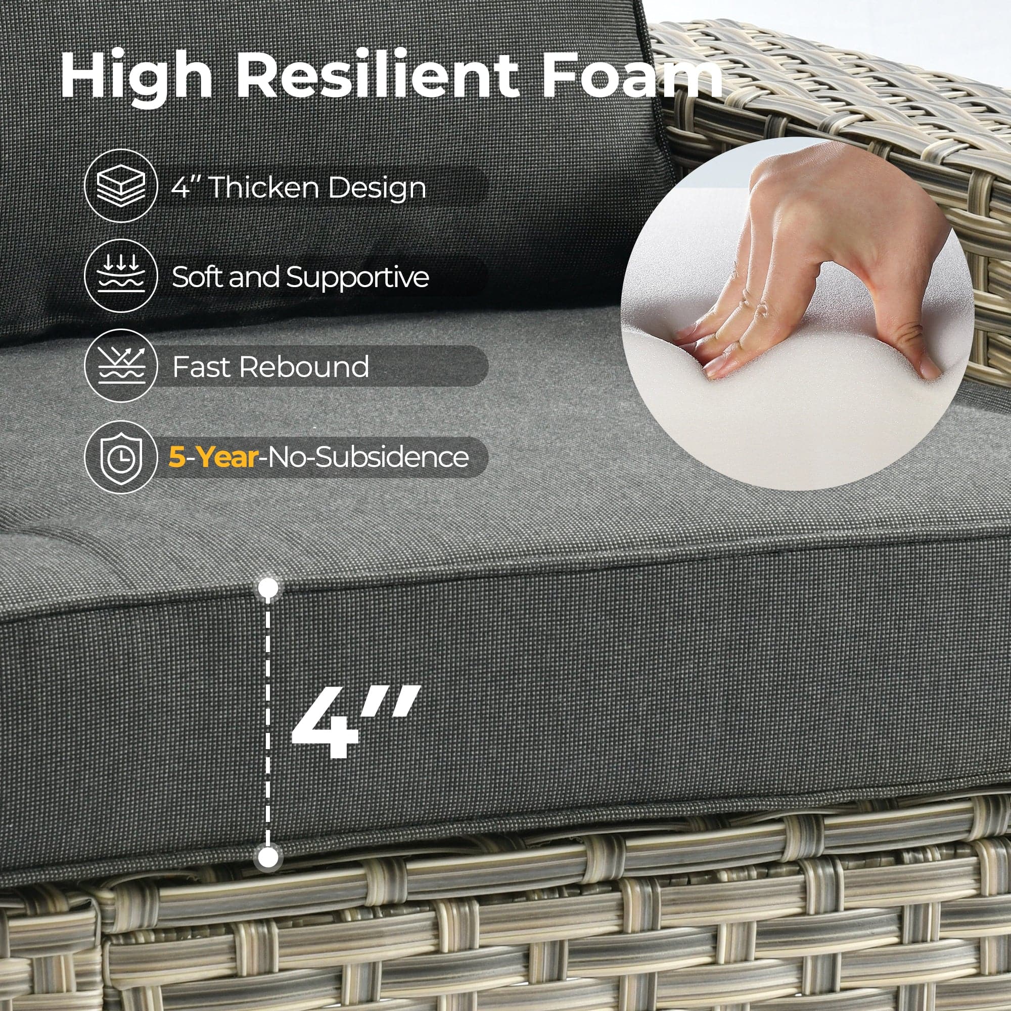 Relaxing Leisure Time: Indulge in ultimate comfort with broad, deep sofas and 4-inch thick breathable cushions. These cushions are designed for optimal relaxation, being both soft and supportive, which makes them perfect for spending long, relaxing afternoons in your outdoor space.