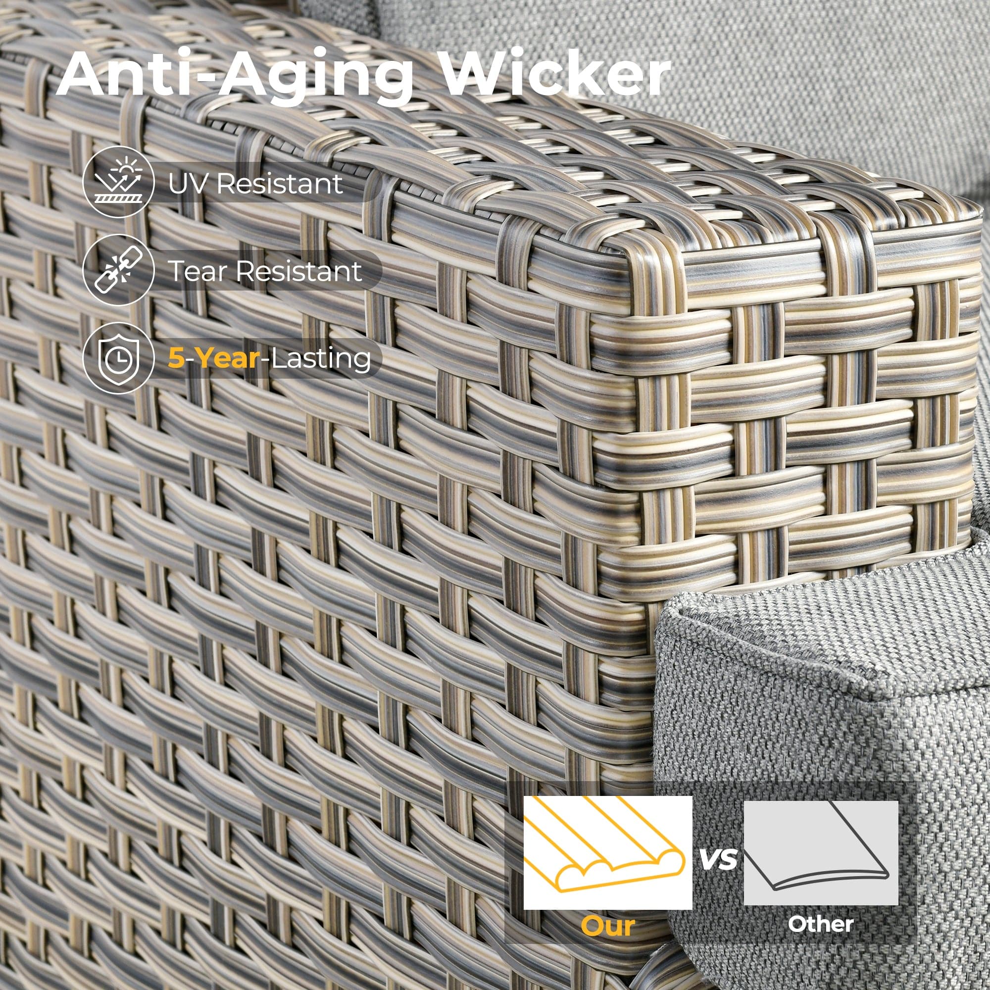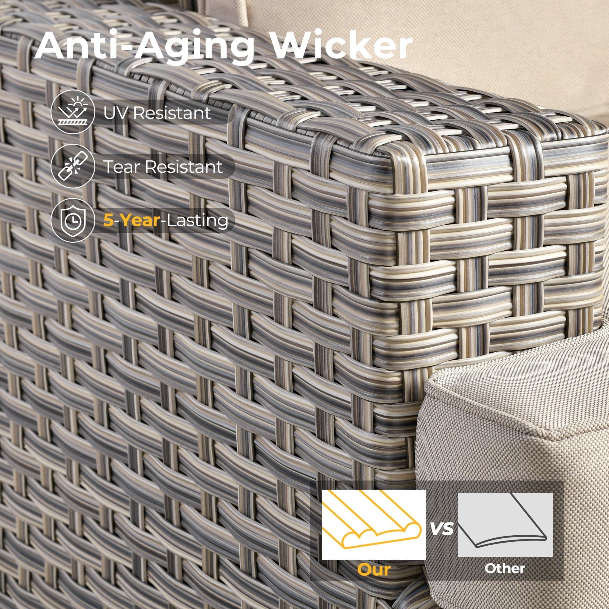 Easy Maintenance: Featuring cushion covers with smooth zippers for effortless removal and cleaning, this set is designed for convenience. Made from weather-resistant PE rattan, this all-weather sectional sofa resists rusting and fading, maintaining its attractive appearance year after year. The low-maintenance materials ensure your outdoor space remains fresh and inviting with minimal effort.
