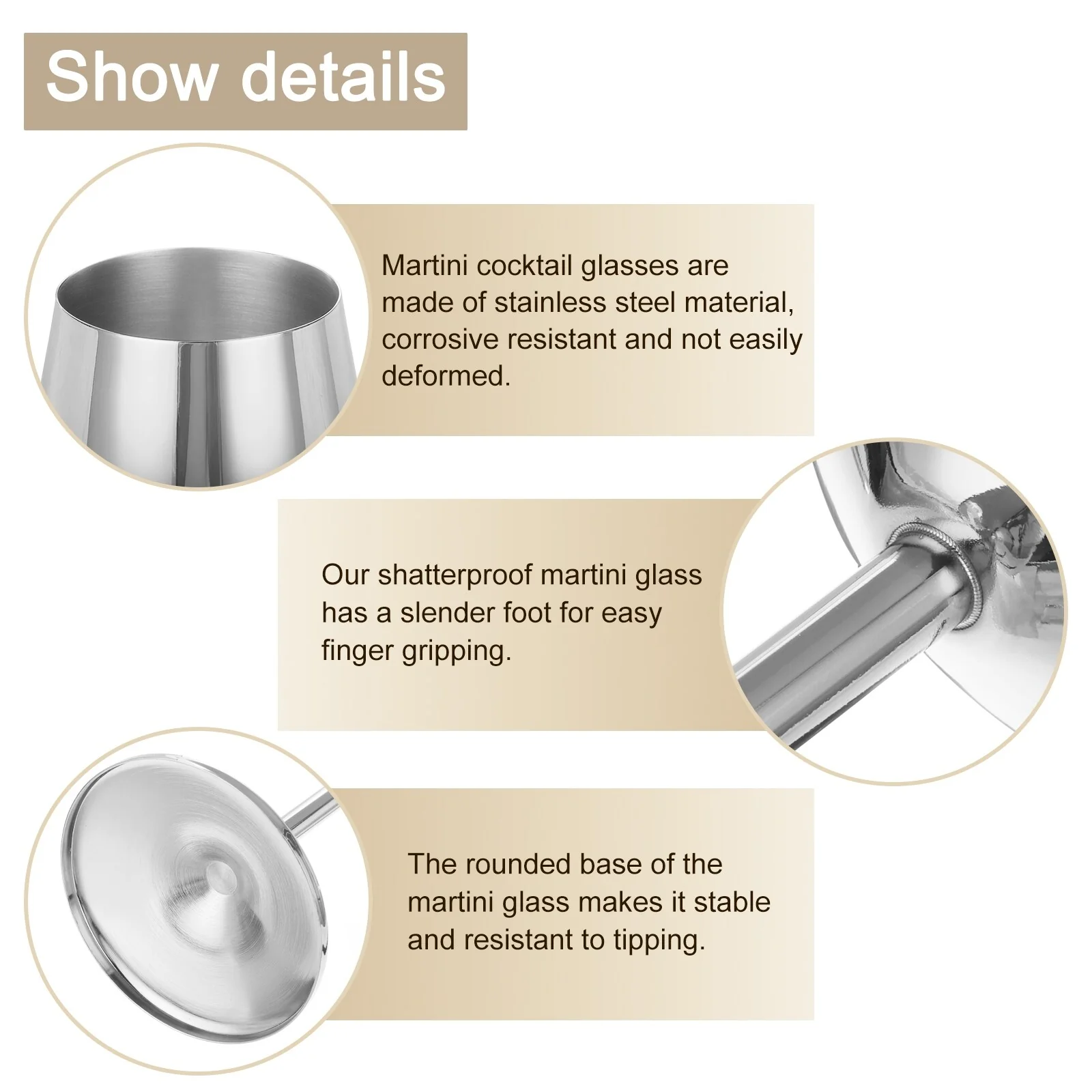 Material: Champagne glasses are made of stainless steel material, corrosive resistant and not easily deformed; Light and sturdy for daily use or large gatherings, our wine glasses are better than traditional ceramic, glass cups