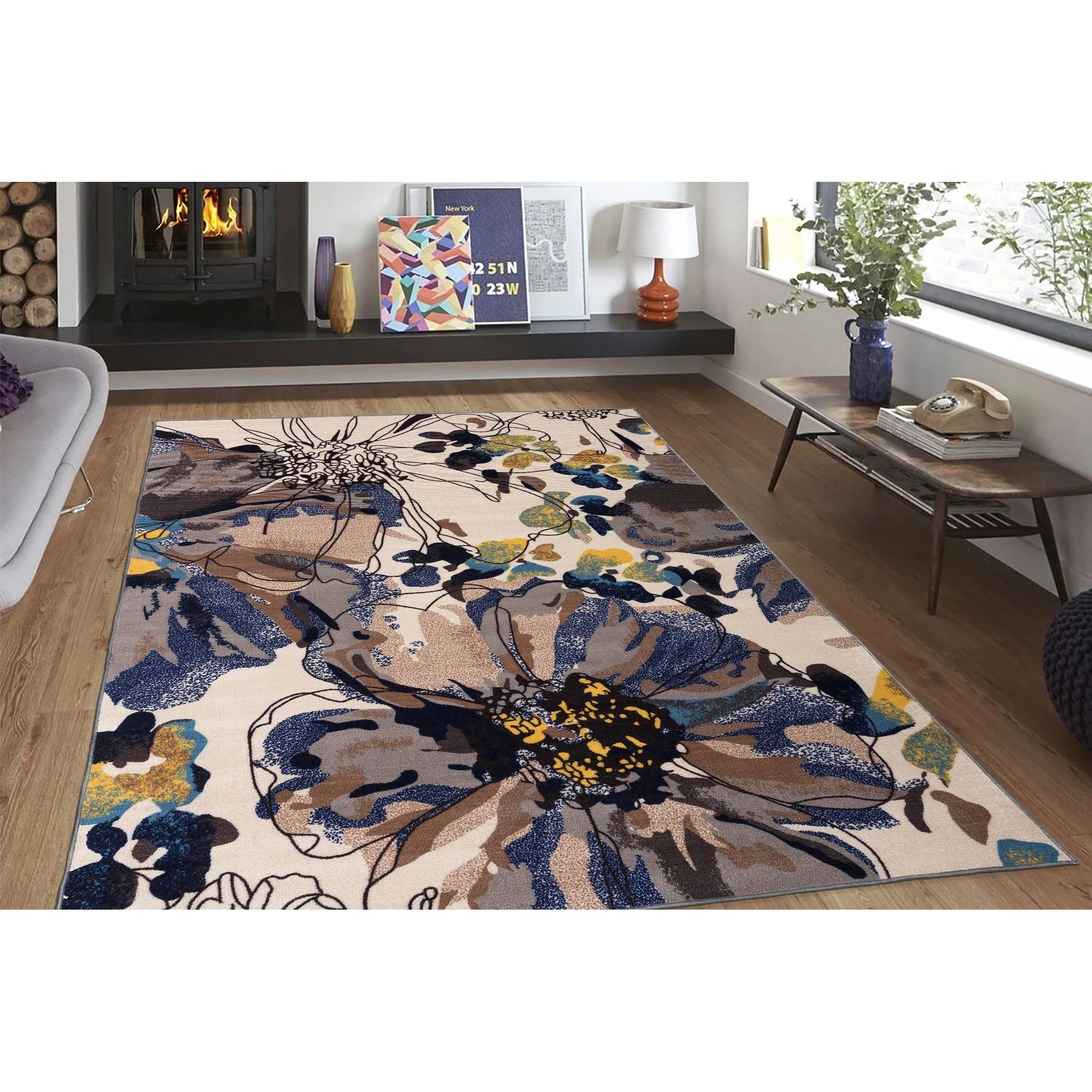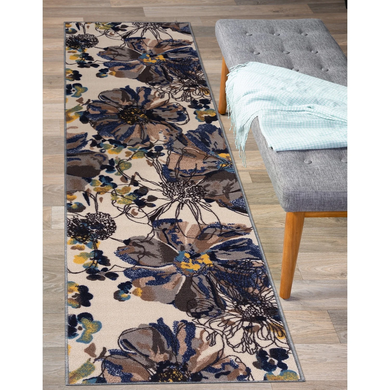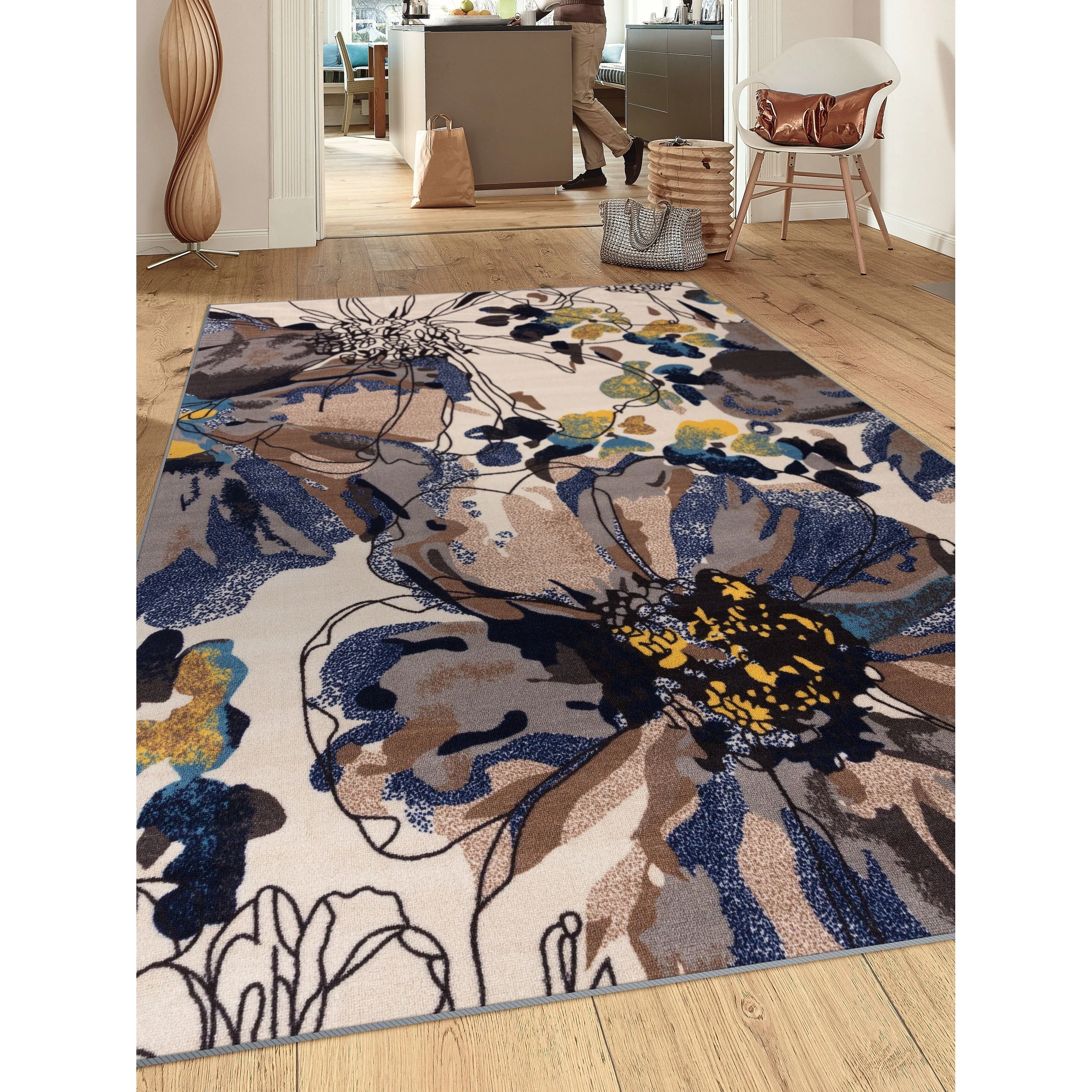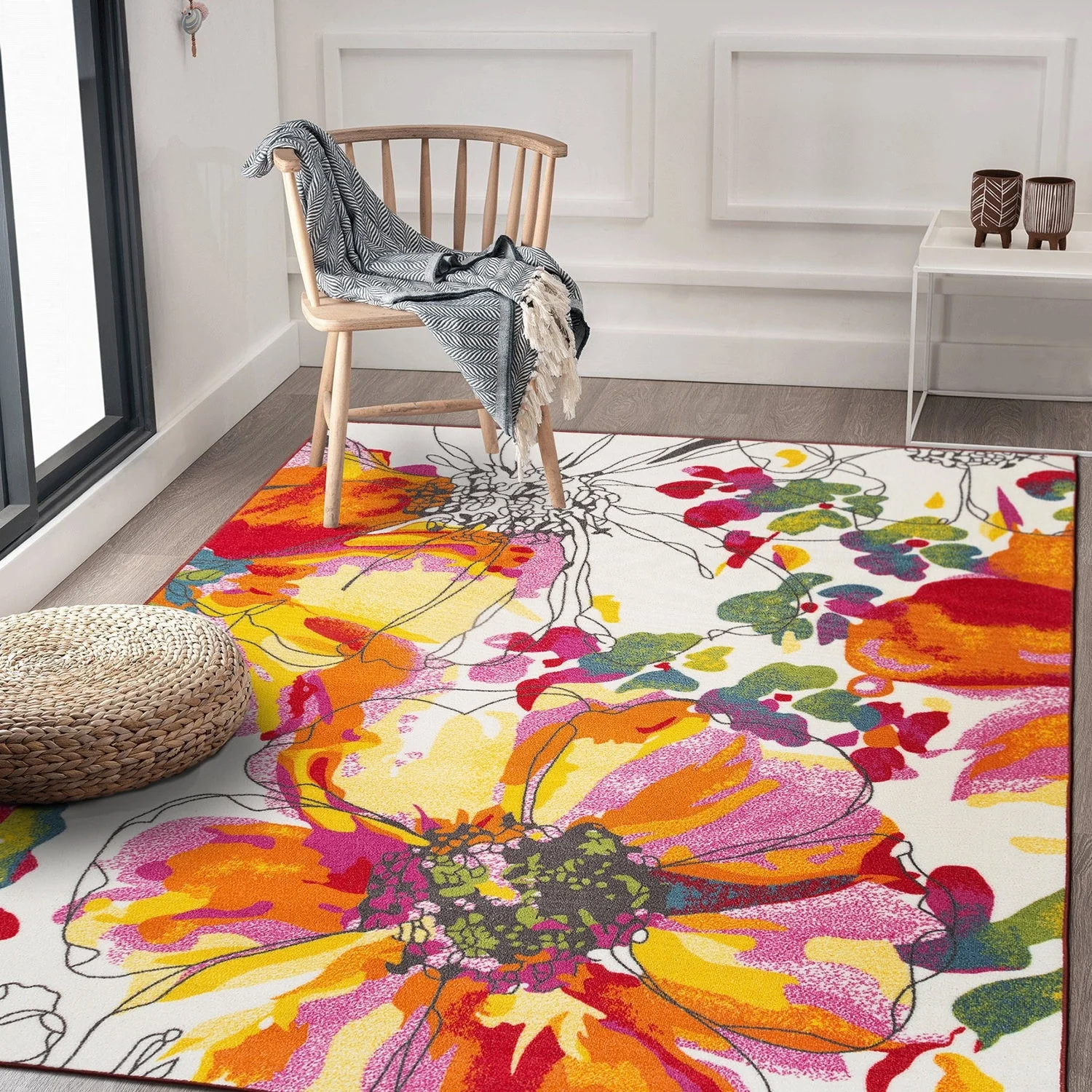 Awaken a sense of fun and vivacity in your home with this OSTI abstract floral area rug woven from stain-resistant nylon. A plethora of bright, warm colors grace a white background, enriching your decor with a dose of flower power. The latex, nonslip backing helps prevent this rug from sliding, providing soft, secure floor coverage underfoot.