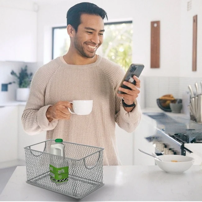 Organize cleaning supplies, toys, and other miscellany with this practical storage basket. Handles attached to the metal frame make this basket easy to carry, while the stainless steel construction ensures durability.