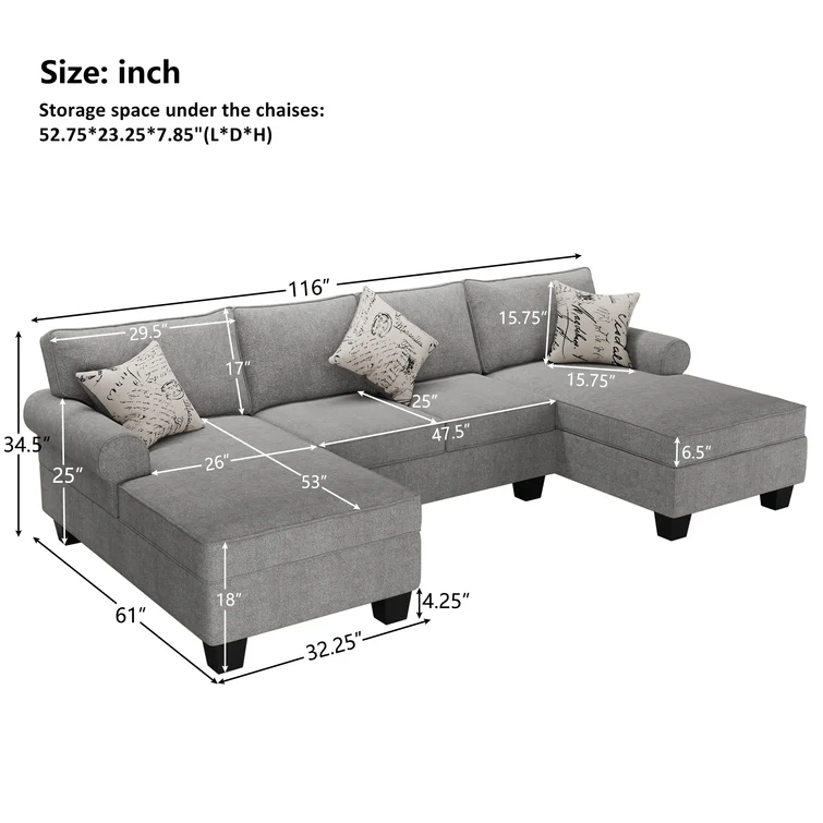 116" Wide Left Hand Facing Modular Sofa & Chaise