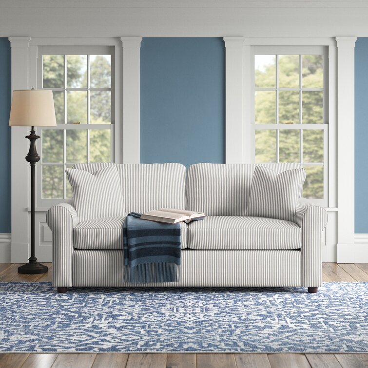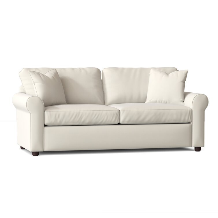 • With rolled arms and a cushion back, this standard sofa comfortably seats two