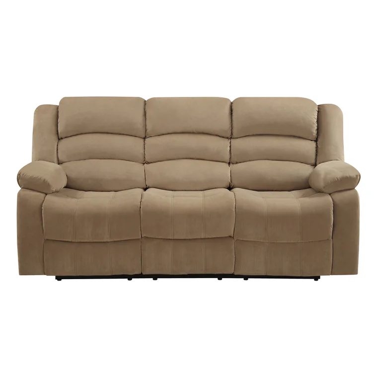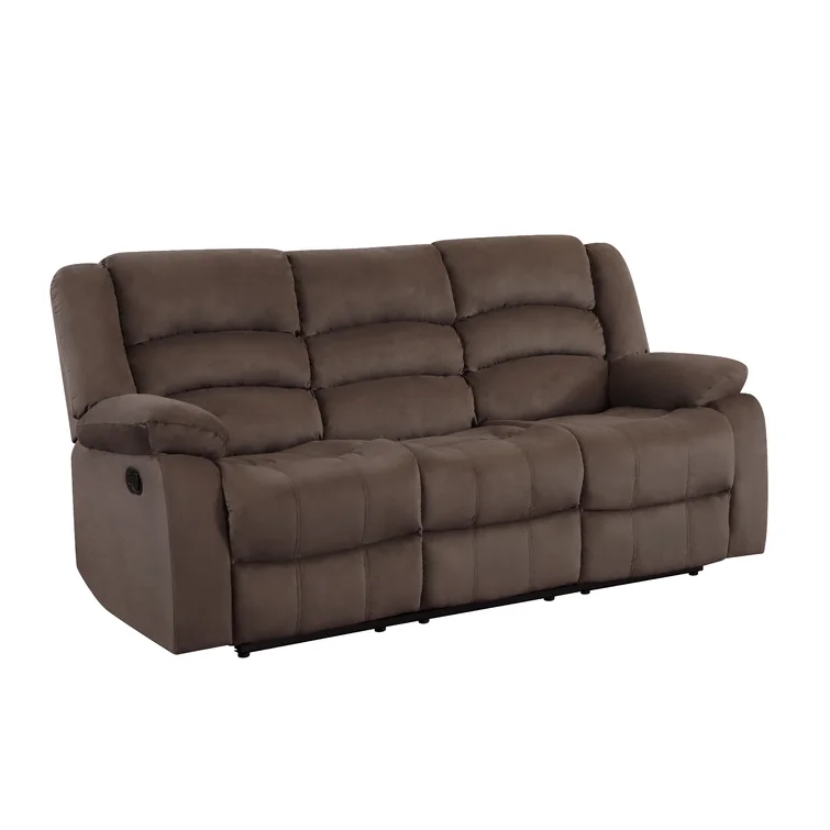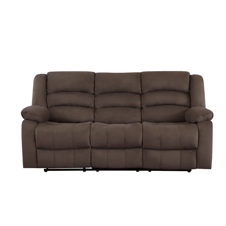 Provide ultimate comfort for your family with a beautiful touch of contemporary charm to your home. This lovely aum living room Aum 81" Pillow Top Arm Reclining Sofa offers the perfect balance of relaxation and comfort. This elegant aum living room reclining sofa features a contemporary shape with a microfiber fabric upholstery that is sure to leave a lasting impression on your home. This aum living room reclining sofa features a center recliner mechanism with a manual crank and a steel base that ensure this sofa will be a staple in your home for years to come. This piece is proudly brought to you.
