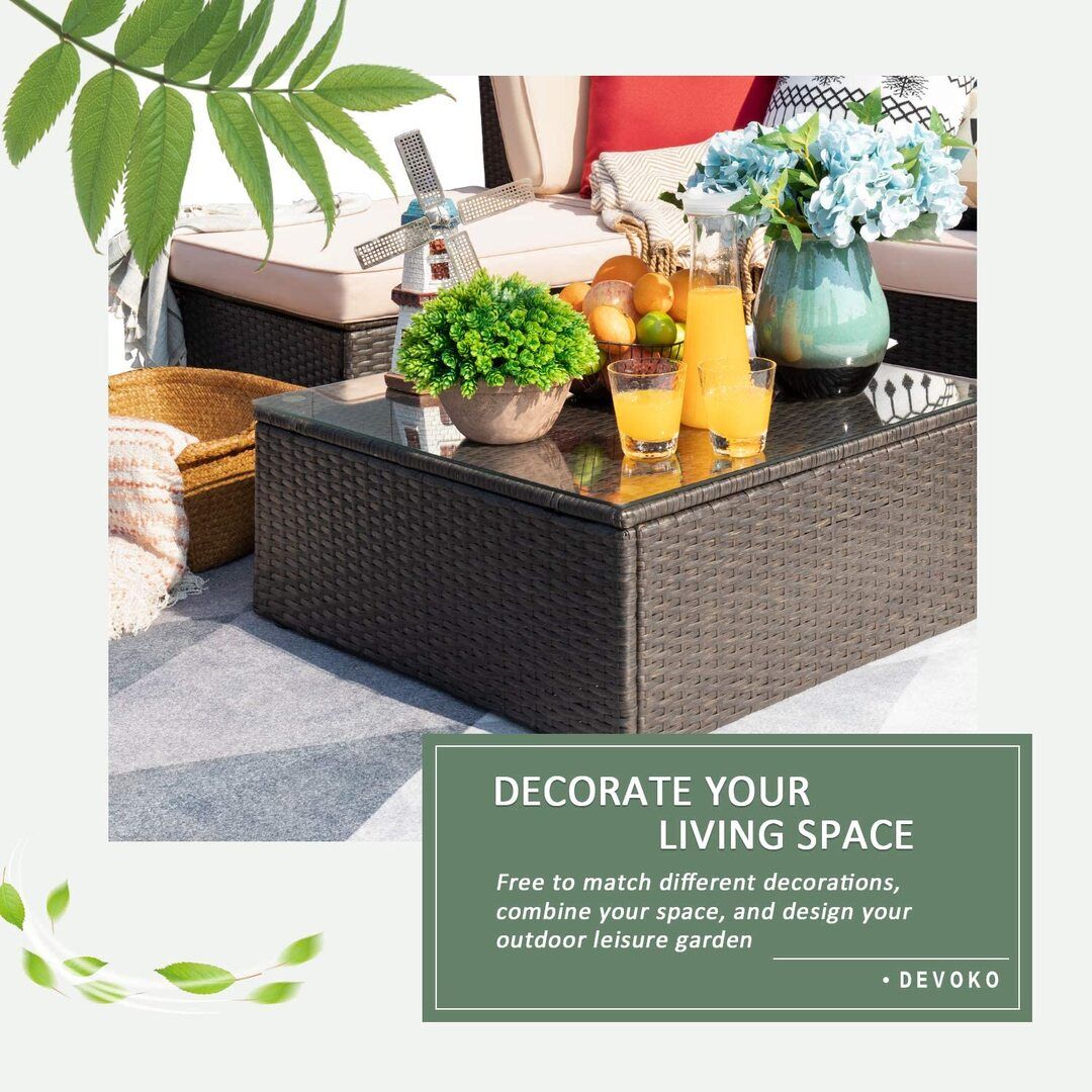 - Sturdy & Durable: This outdoor sectional sofa sets with solid frame. high quality PE wicker are strong enough to withstand all weather variations. Thickened water resistant durable cushions and tempered glass are easy to clean.