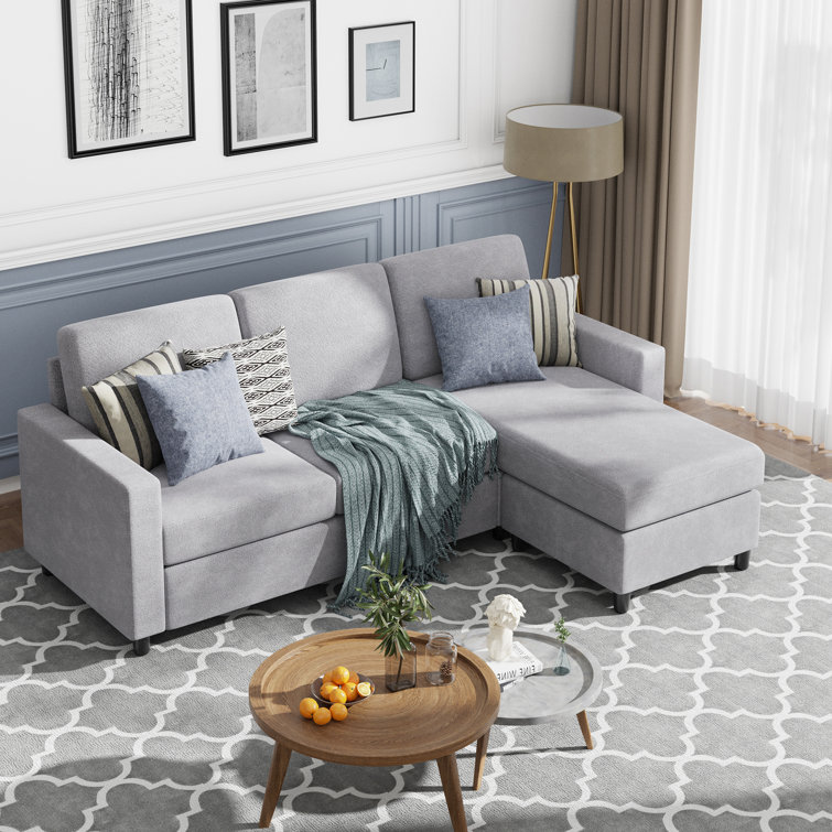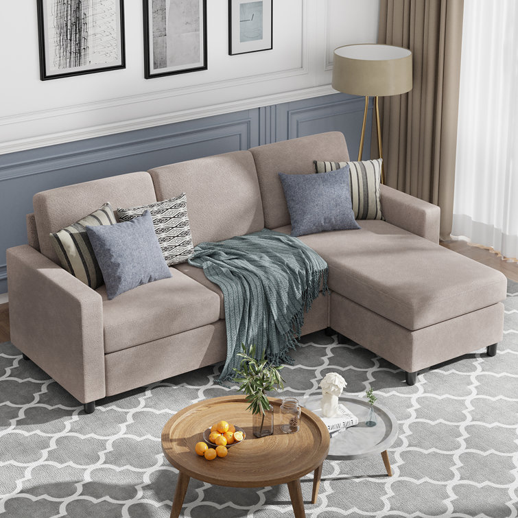 Upholstered in a linen-look fabric that is easy to maintain, this sectional achieves a clean and simple silhouette and will work very well with any home decor.