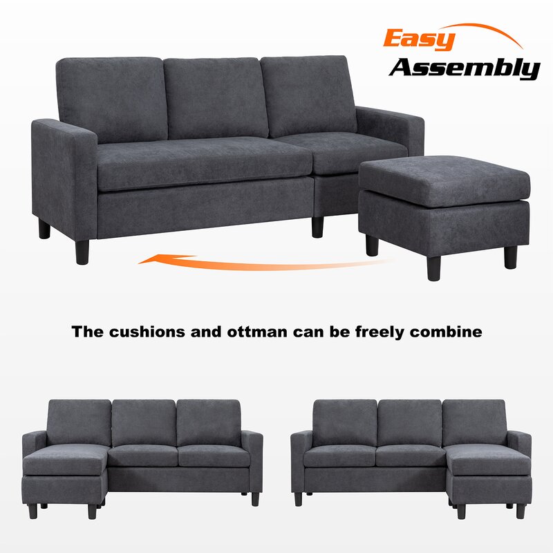 • Harbuck 77.55" Wide Reversible Sofa & Chaise with Ottoman