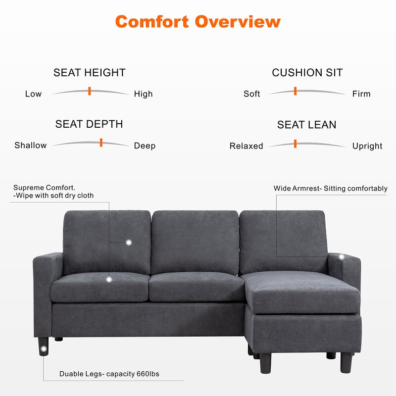 Aesthetics and comfort are the biggest features of this sofa. Classic curves and modern designs give you different visual feelings. soft cushions can bring you the greatest comfort. The interchangeable ottoman can be arranged on either side, allowing you to easily customize depending on the configuration of your room, which is a combination that can bring you the best experience