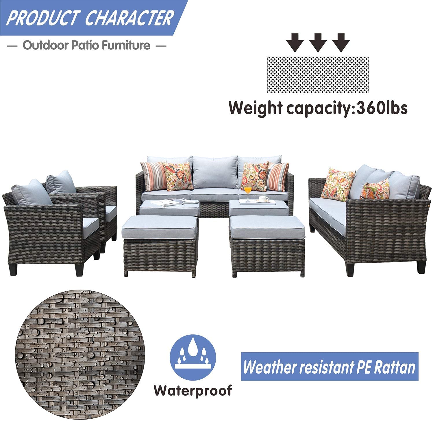 • Patio Furniture 8 PCS Hight Back Outdoor Furniture Sets Modern Wicker Patio Furniture Conversation Sets with 4 Pillows All Weather Garden Patio Sofa