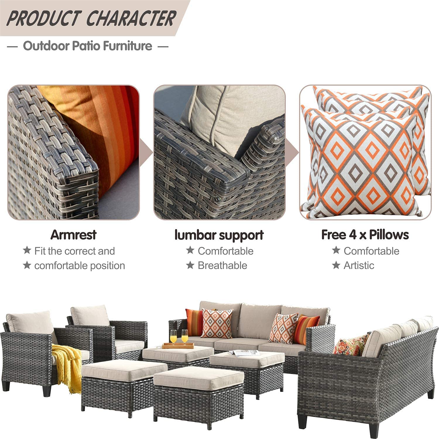 • Outdoor Sofa Set: this big size comfortable outdoor sectional sofa suitable for 8 friends and let you enjoy leisure time with friends and family. Suitable for most places