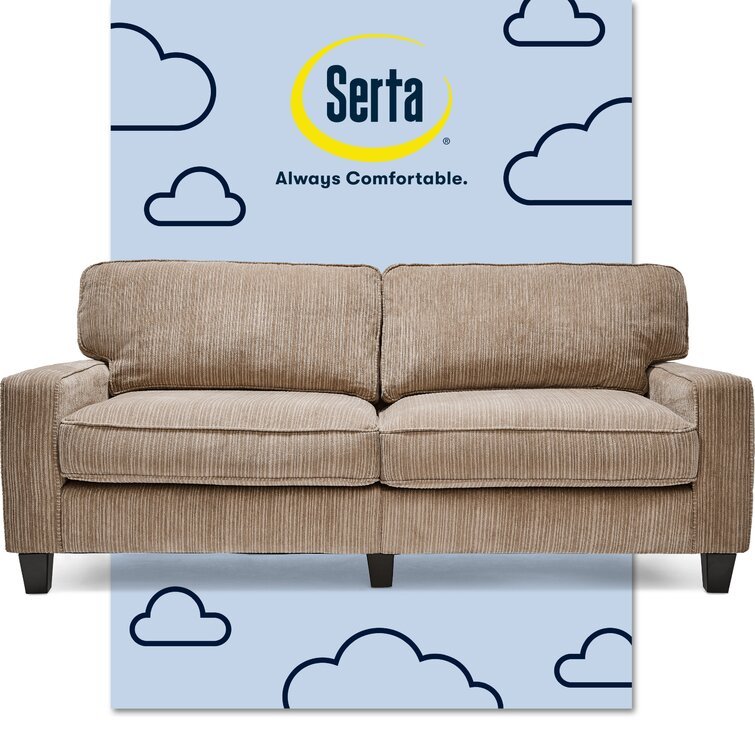 • Ideal for small living spaces, the Serta Palisades 73-Inch Sofa instantly livens up rooms with its effortless, functional style. This modern sofa has a compact size and unique, tool-free assembly, making it a great seating solution for apartments, offices, and dorms. Rich upholstery options, square footers, and straight arms bring a modern flair to any living room, guestroom, or home office, creating a warm and inviting space where you and your guests will want to sit and relax. Individually wrapped coils and pillowed back cushions offer a cozy yet supportive seating to read, chat, or watch TV. This small sofa is designed to match the other pieces in the Palisades Collection. Use it as a stand-alone piece in a smaller room or pair it with another sofa, loveseat, or accent chair for a coordinated look.