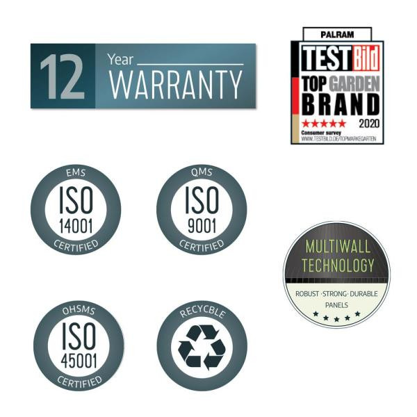 • 100% UV protected, 10 mm multiwall fortified polycarbonate panels maintain their integrity