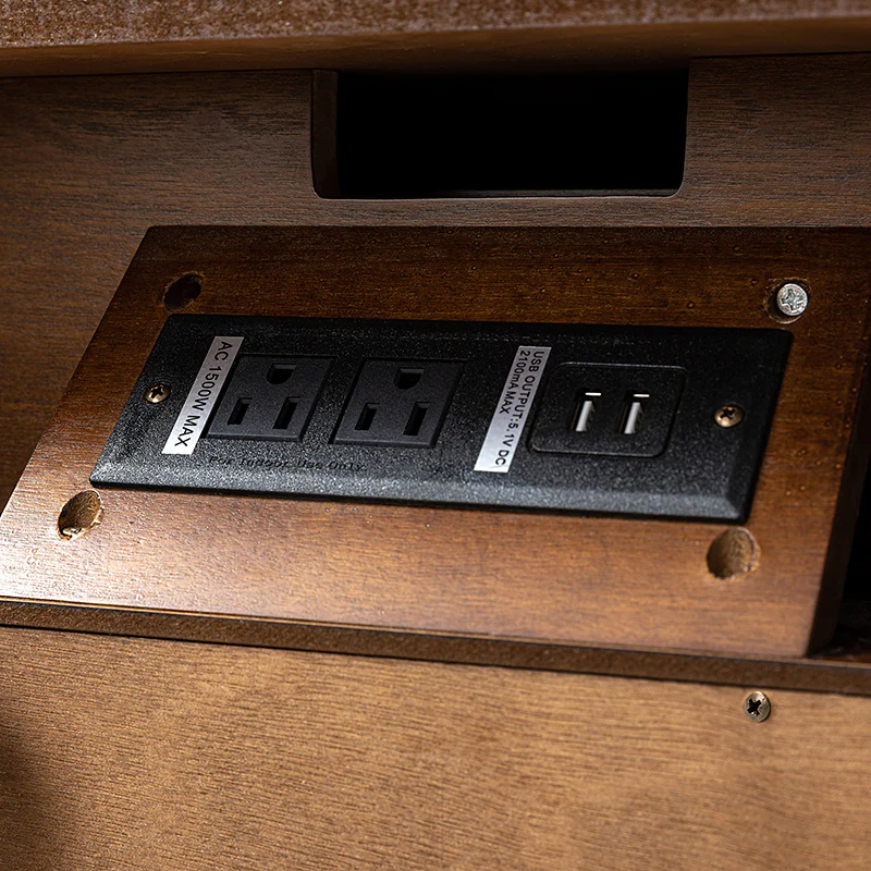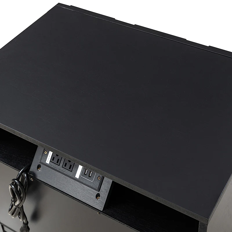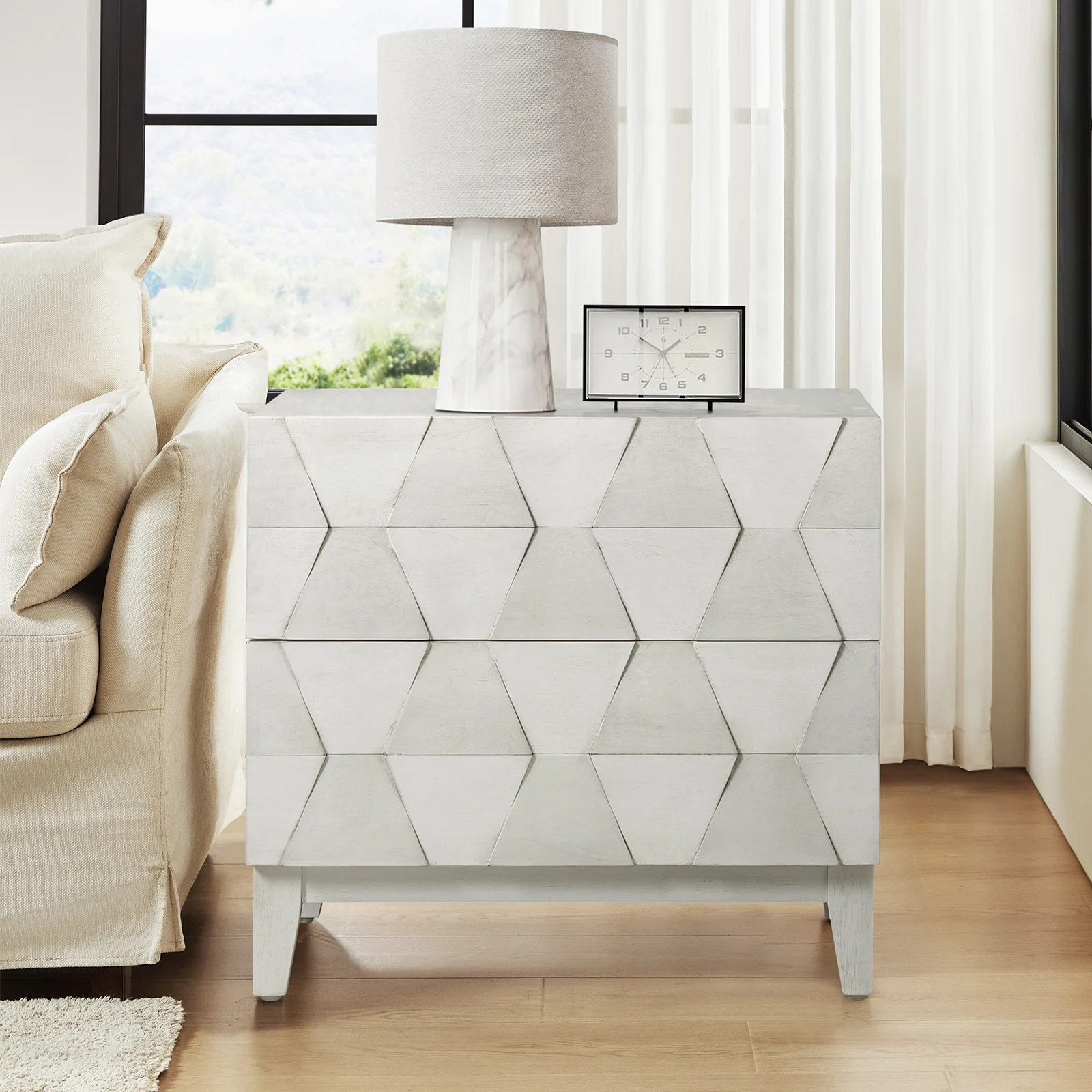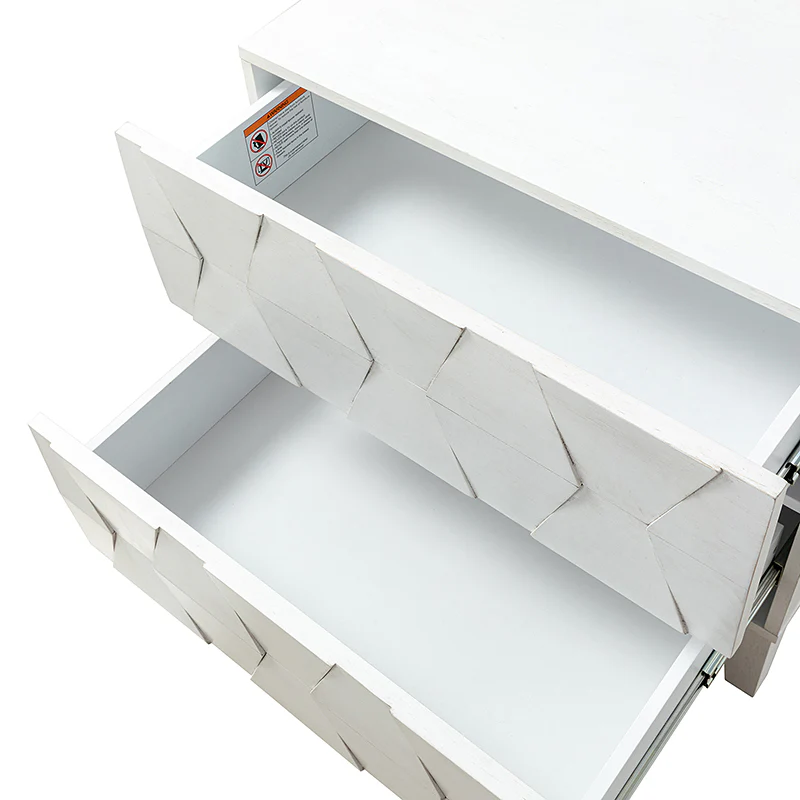 Introducing the sleek and highly functional contemporary nightstand with a built-in charging station. Crafted from solid and engineered wood, this exquisite piece stands gracefully on tapered legs. Its door fronts feature captivating hexagonal embellishments, adding a subtle visual texture and dimension to its design. Furthermore, the nightstand boasts a thoughtfully designed back panel equipped with an outlet and discreet wire hiding space, enabling effortless connectivity to power for charging your smartphones, tablets, or smartwatches as you rest. This mid-century modern and modern nightstand effortlessly integrates into your bedroom, living room, study, or even office, seamlessly harmonizing with your interior style for a truly refined aesthetic.