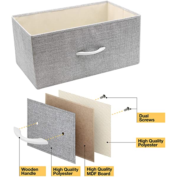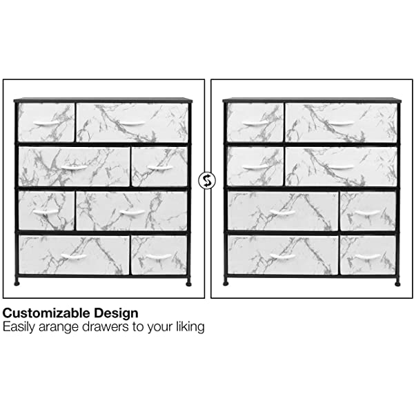 SMART & STYLISH DESIGN — Made with strong steel frame and durable MDF wood top with smooth finish — Drawers made of breathable, non-woven fabric — Wipe clean — Minimal assembly required — Hardware and instructions INCLUDED — Measures approximately 34” L x 11.5” W x 36” H. REMOVABLE & FOLDABLE DRAWERS — Soft fabric drawers with reinforced base — Easy pull handle for quiet opening and closing — Removable Drawers fold flat for easy storage when not in use — Entire unit is portable, lightweight, and easy to relocate to different spaces — Each drawer approx. 8.25” deep. FOR HOME, OFFICE, DORM — Suitable for bedroom, living room dresser, guest room, closet, nursery, hallway, college dorm, small apartment solutions, etc — Can be used as dressers for bedroom, storage cube dresser, 5 drawer dresser, small closet dresser, storage chest, living room dresser, sofa end tables, office supply storage, kids nightstand, or baby nursery table — Complements most décor whether traditional, rustic, or modern. DISPLAY & DE-CLUTTER — Wood top provides hard surface for displaying lamps, alarm clocks, books, eyeglasses, charging station, and more — Drawers great for storing clothes, blankets, linens, baby clothes, lingerie, purses, scarves, socks, accessories, gadgets, toiletries, cosmetics, hair/beauty products, paperwork, toys, knitting supplies, and household clutter. 8-DRAWER DRESSER (WHITE) — Style meets function with our dresser chest, complete with a wood surface and storage drawers — Pairs beautifully with the Sorbus Foldable Furniture Collection.