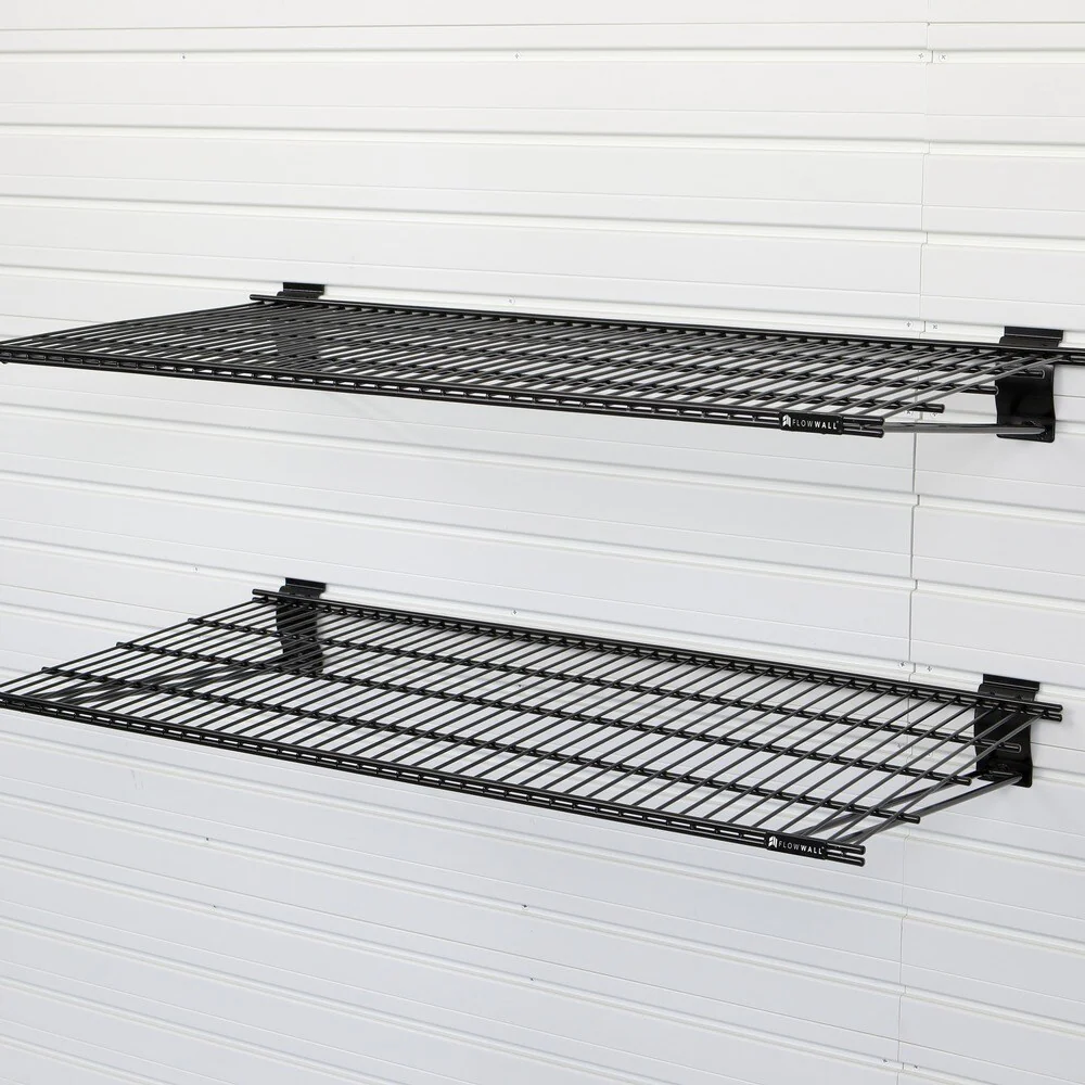 - Bracket shelves store anything you want exposed, such as work boots and tools.