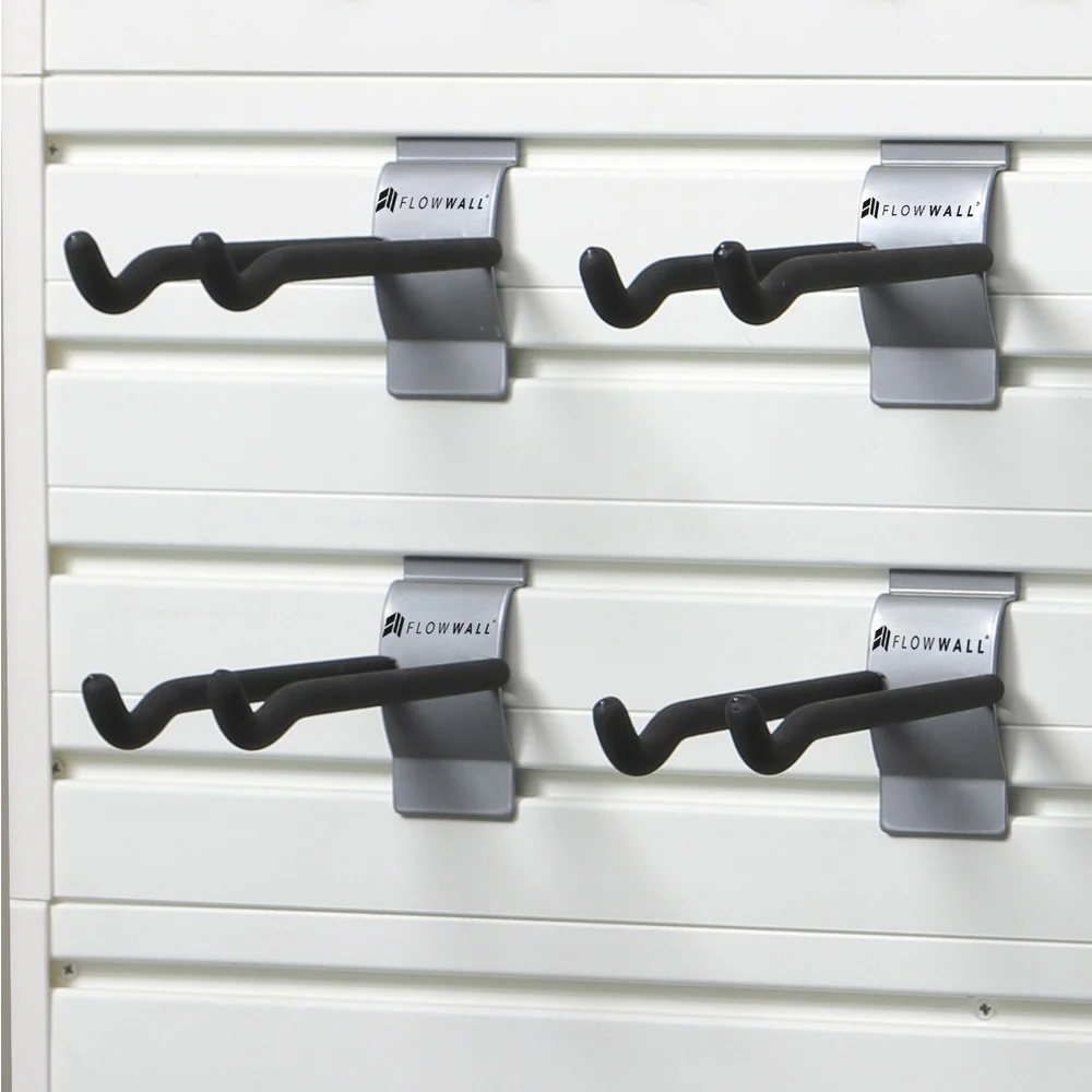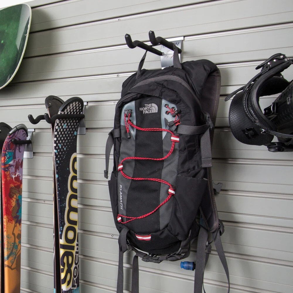 - Cleaning supplies, backpacks, handled tools and more can all be hung on the prongs of the 4-inch hooks.