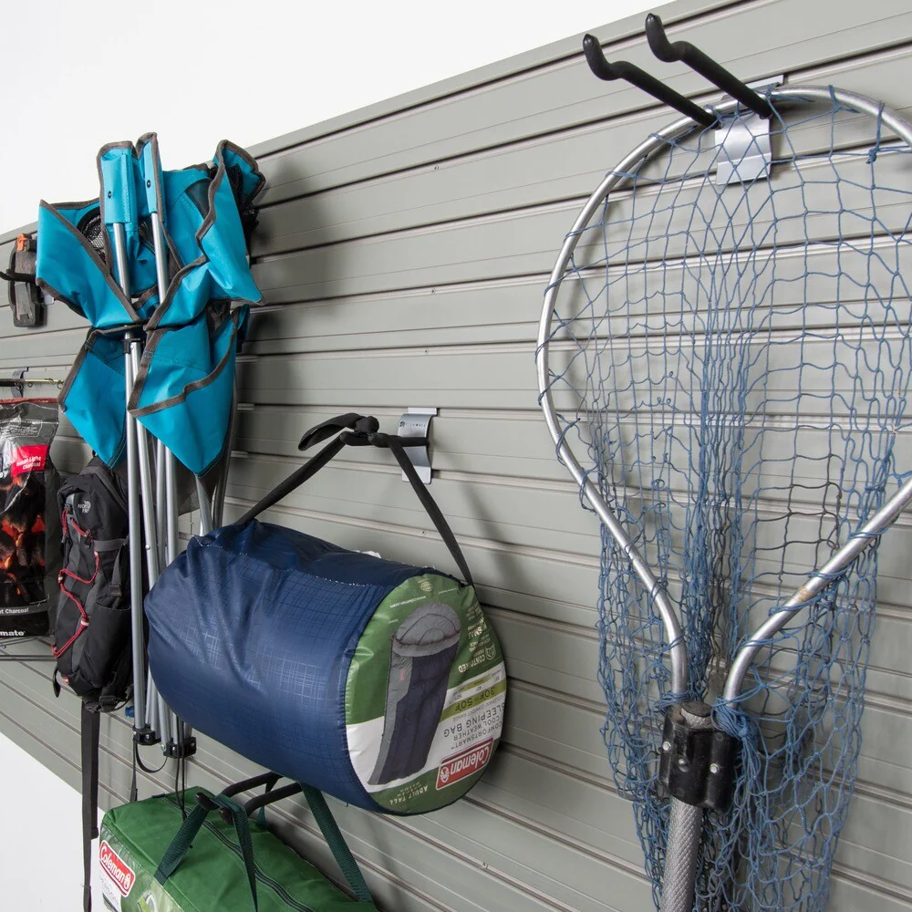 - Hang ladders, step stools, or folding chairs and tables using the heavy duty dual bracket hook.