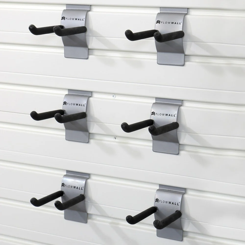 Wall organization is the most efficient way to store and access items in the garage. This Bonus Set includes two boxes of 24 sq. ft. panels, six 4-inch hooks, four 8-inch hooks, one heavy duty dual bracket hook, and four metal bracket shelves.