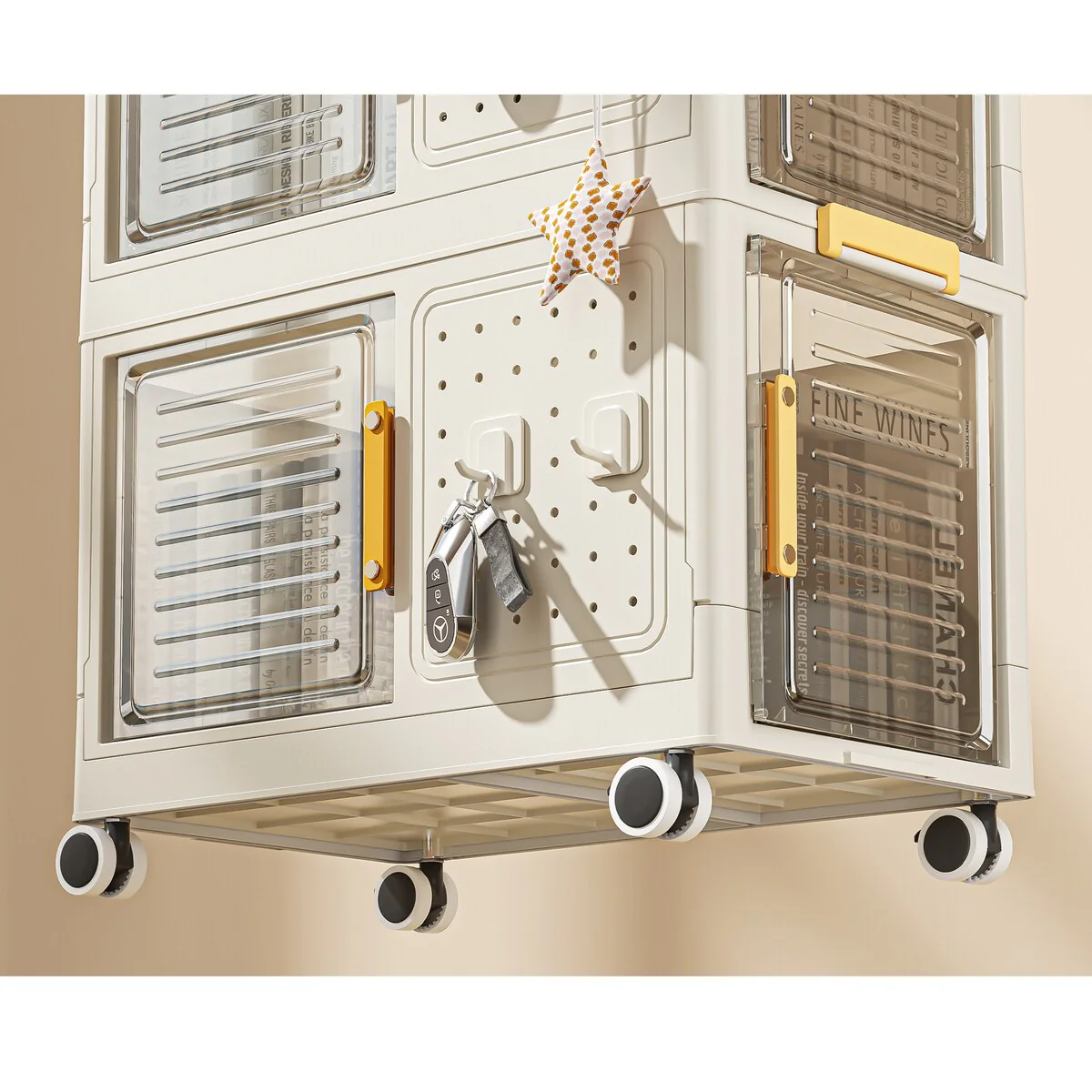 【8 Opening Doors Cart】The rolling cart is able to open in 8 doors. You can easily get what you need from different directions. Every door built in lock buckles, ensure the items inside are not easy to fall. Clear Panel allow you to easily identify the items stored inside and keeps things from being exposed to dust.