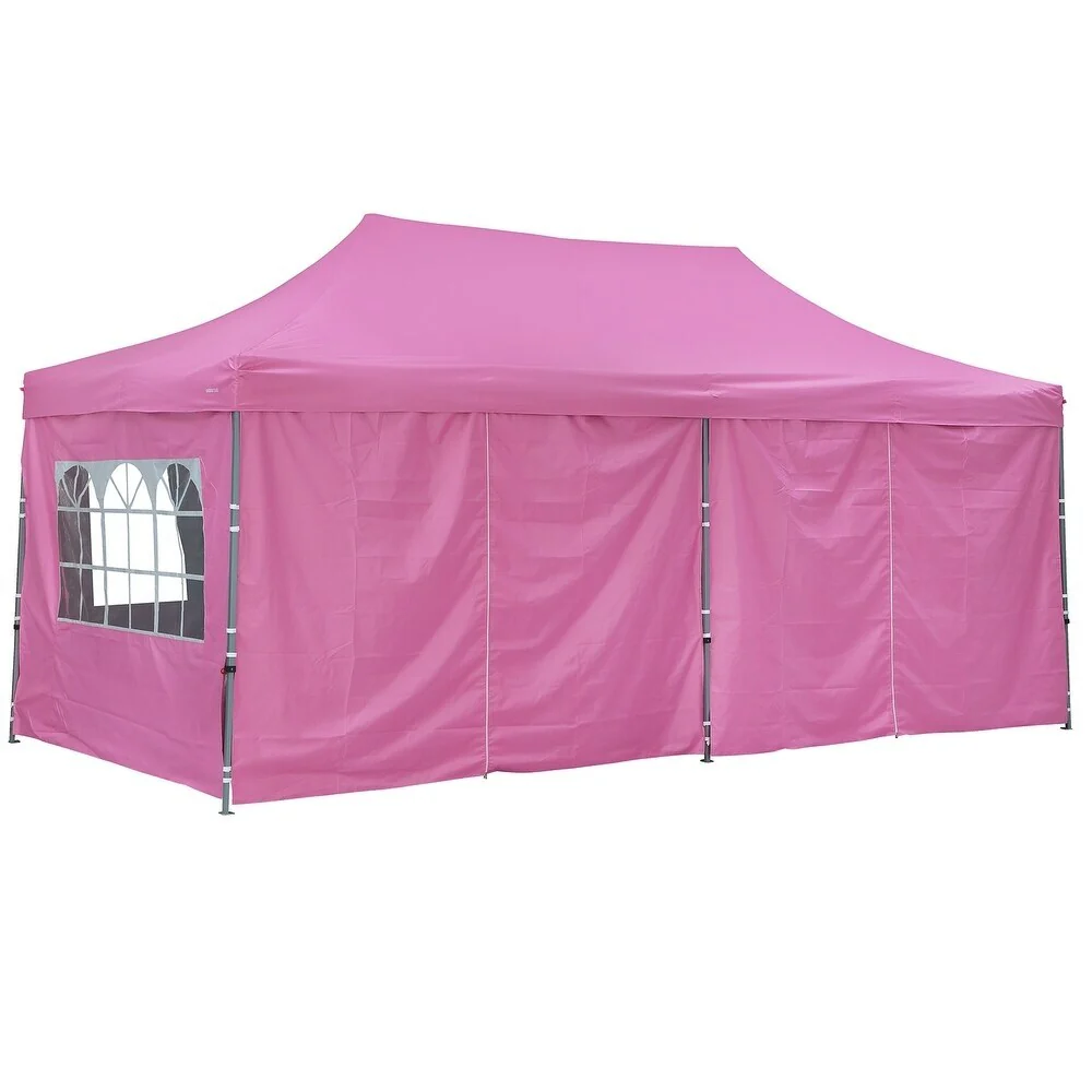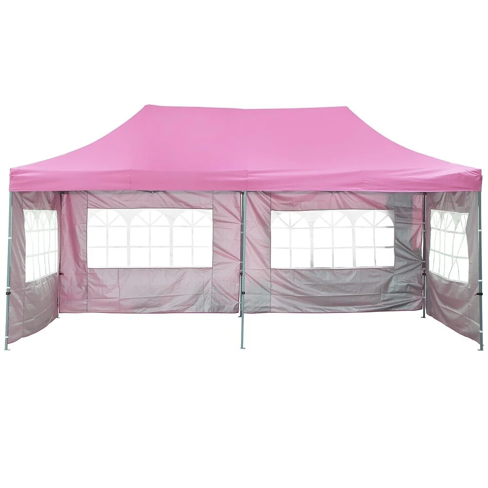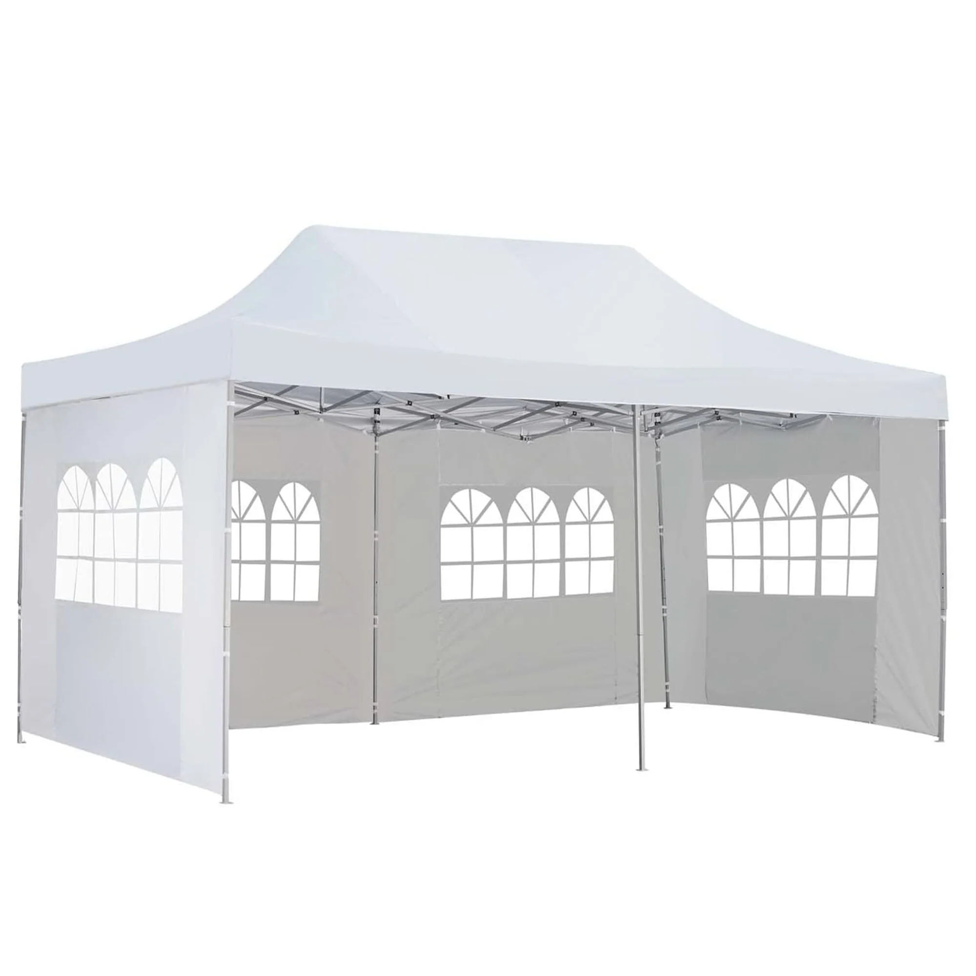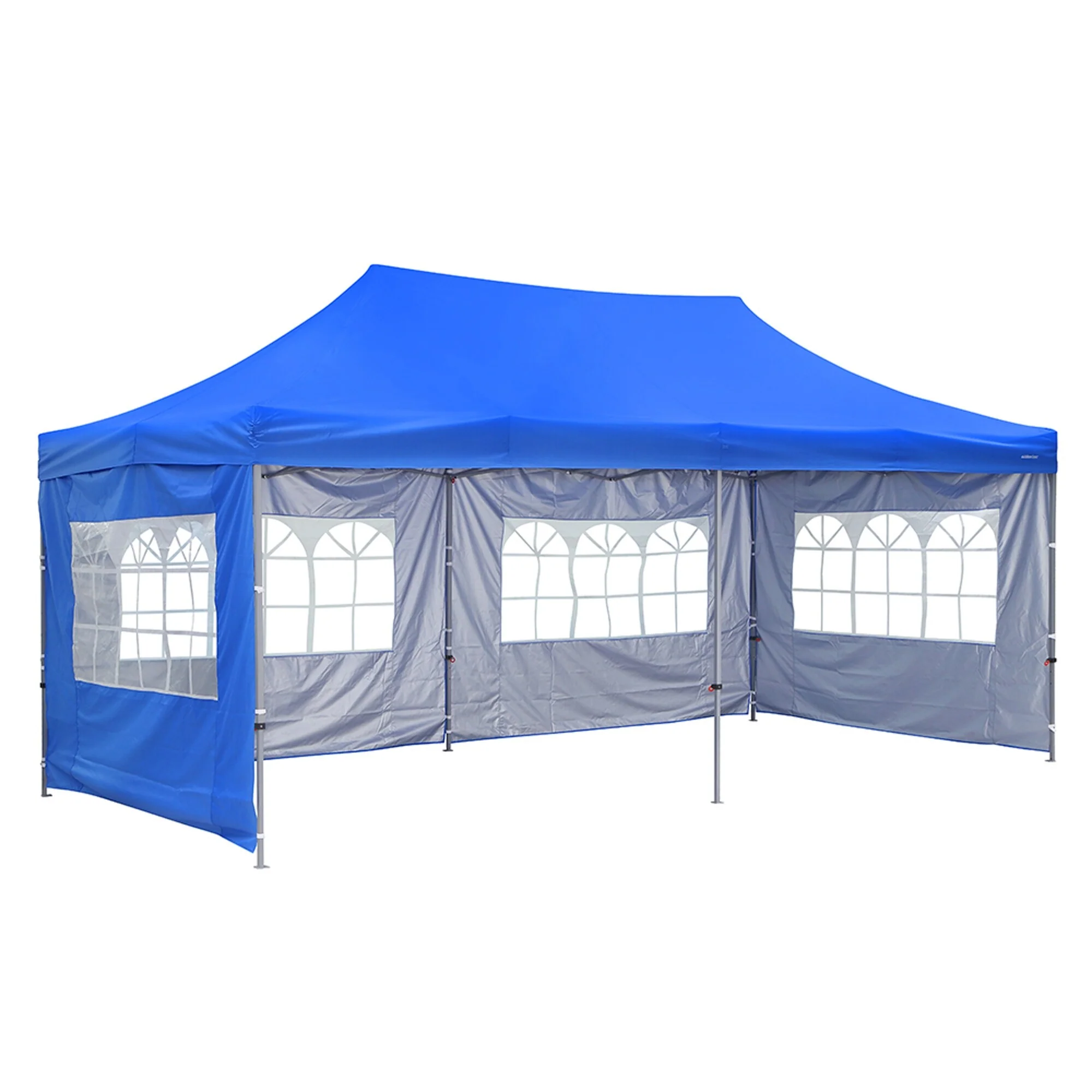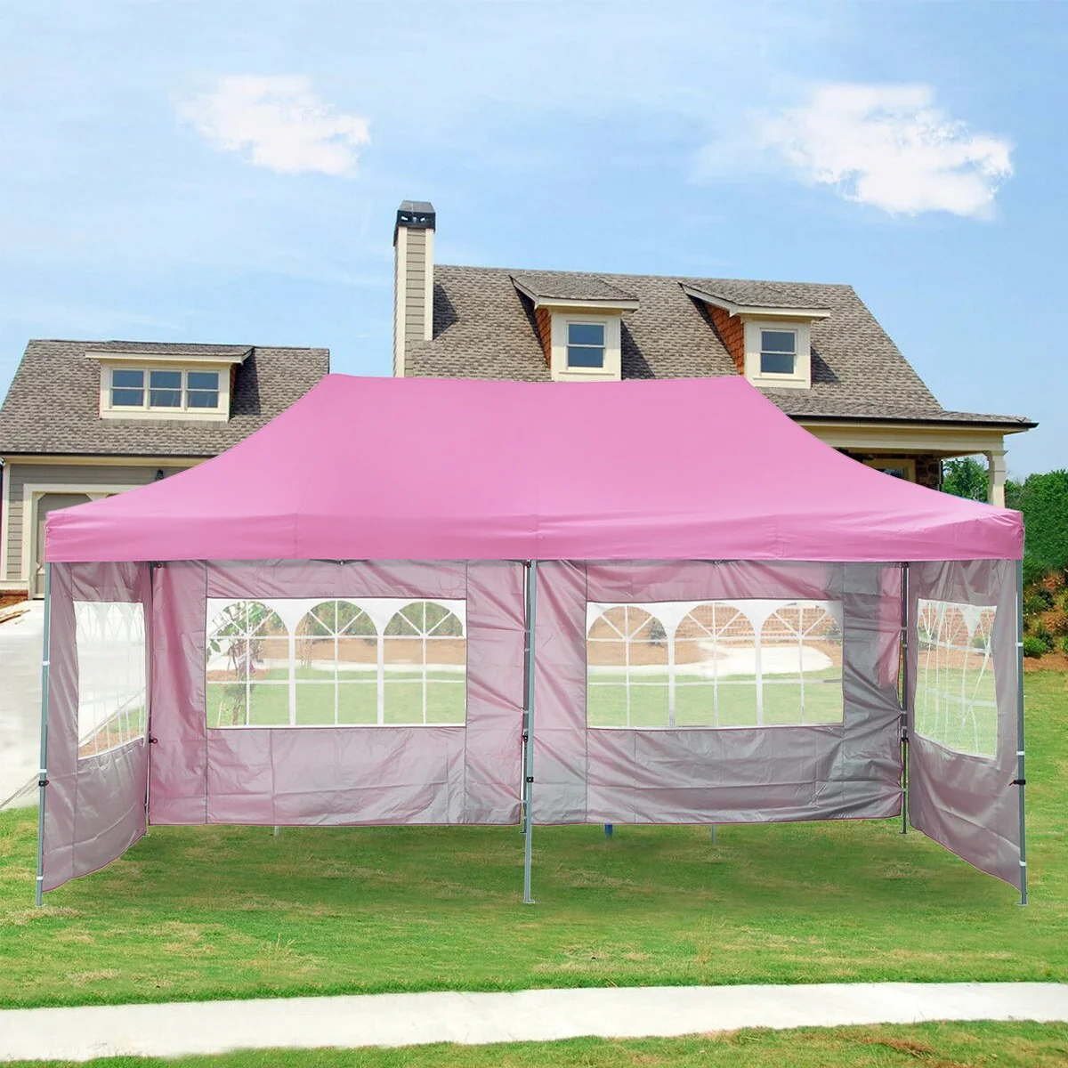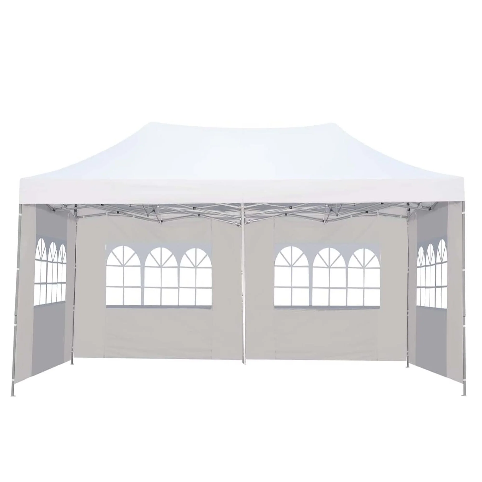 Set up a stylish and functional outdoor gathering space in minutes with the Ainfox 10x20FT Pop Up Patio Canopy Tent. This spacious tent features a water-resistant 210D Oxford Tough Fabric and a sturdy, rust-resistant powder-coated steel frame. The silver-coated inner lining blocks up to 99% of harmful UV rays, and the four transparent windows and four removable sidewalls add extra protection without sacrificing ventilation. With its easy folding and pop-up design and included wheeled carrying bag, this tent is perfect for outdoor weddings, parties, events, and tailgating.