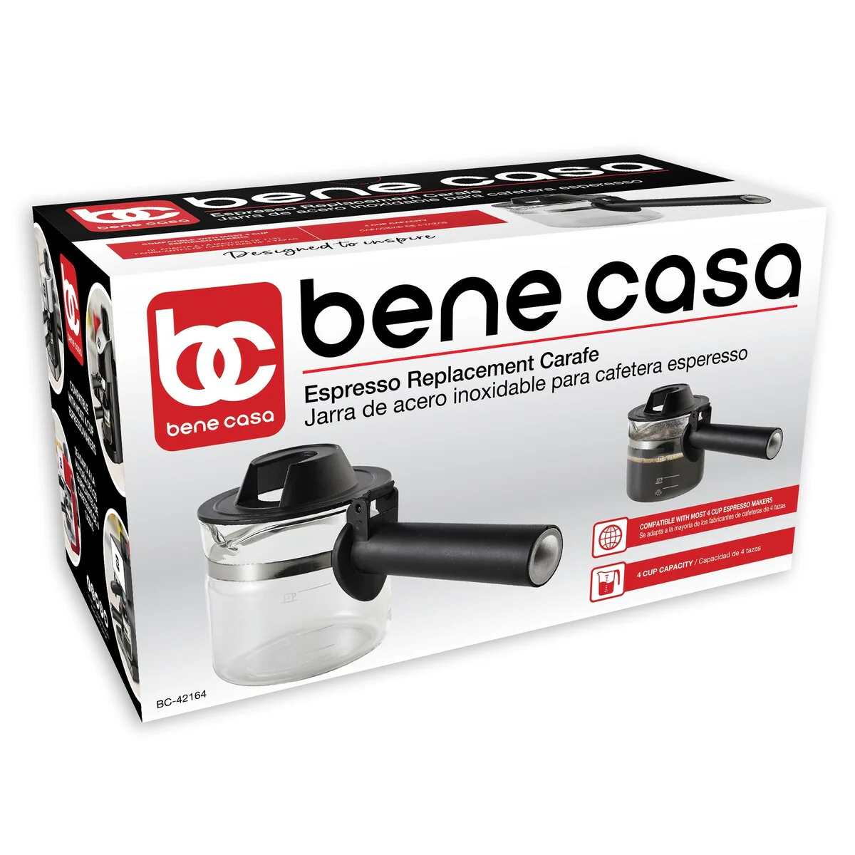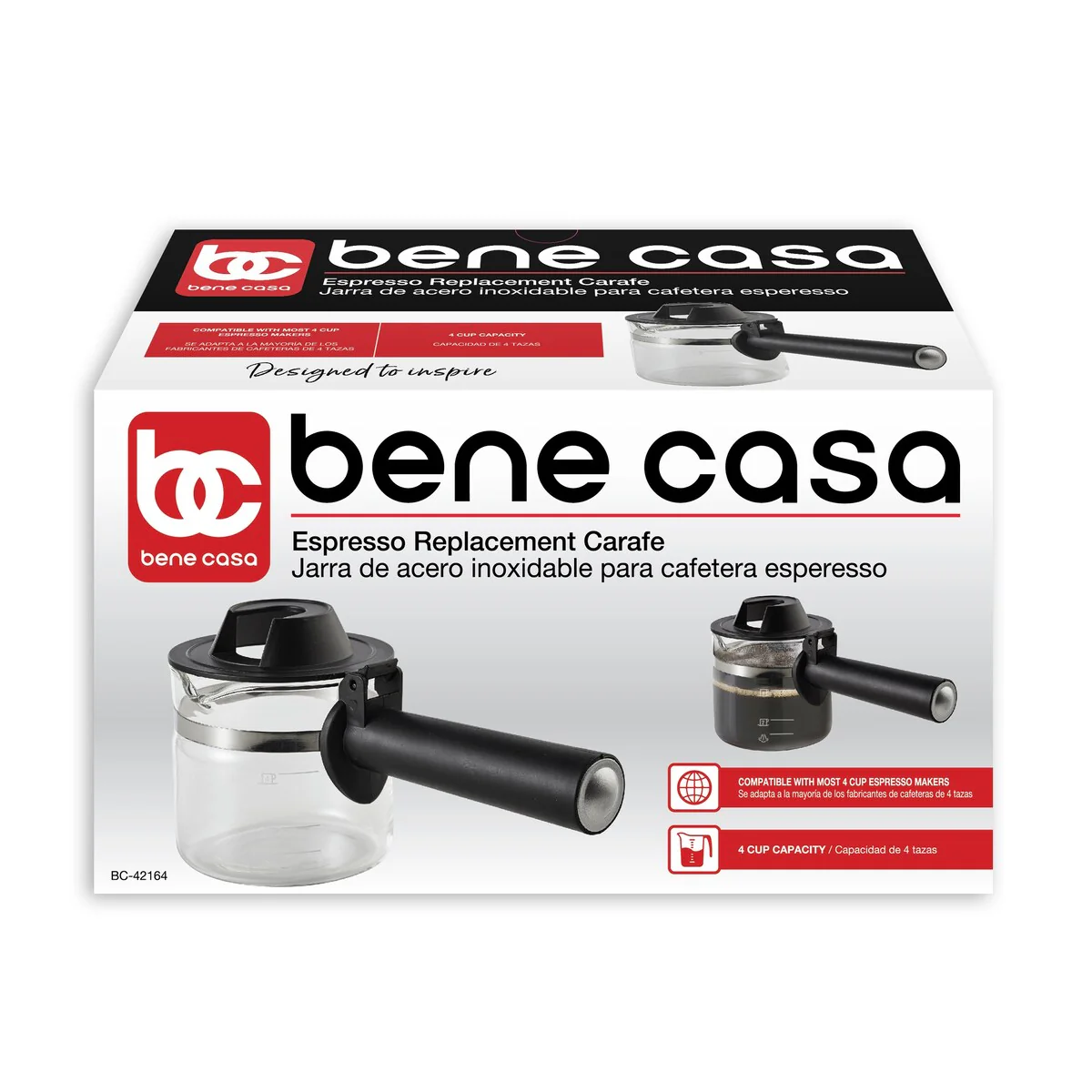 This Bene Casa replacement carafe is suitable for most 4-cup espresso makers available today. It features tempered glass construction and clear, easy to read measurements offering a direct replacement of any 4-cup carafe. The tempered glass construction ensures strength and the ability to easily cope with the temperature of the espresso, while also giving you a clear view of the brewing process from start to finish. With an ergonomically designed, stay-cool handle and easy pour spout, once the brew is ready this replacement carafe makes it easy to serve the delicious drink to your friends, and with BPA free construction you can be assured everything is completely safe. With brad compatibility, whatever your existing 4-cup espresso machine, this is the perfect replacement carafe. Finally, the easy clean, dishwasher safe carafe offers simple maintenance after use, so order your Bene Casa replacement carafe today and get great espresso from your 4-cup machine any time you want.
