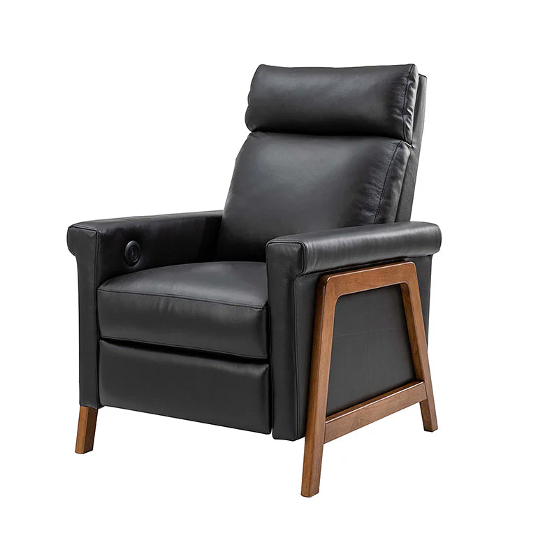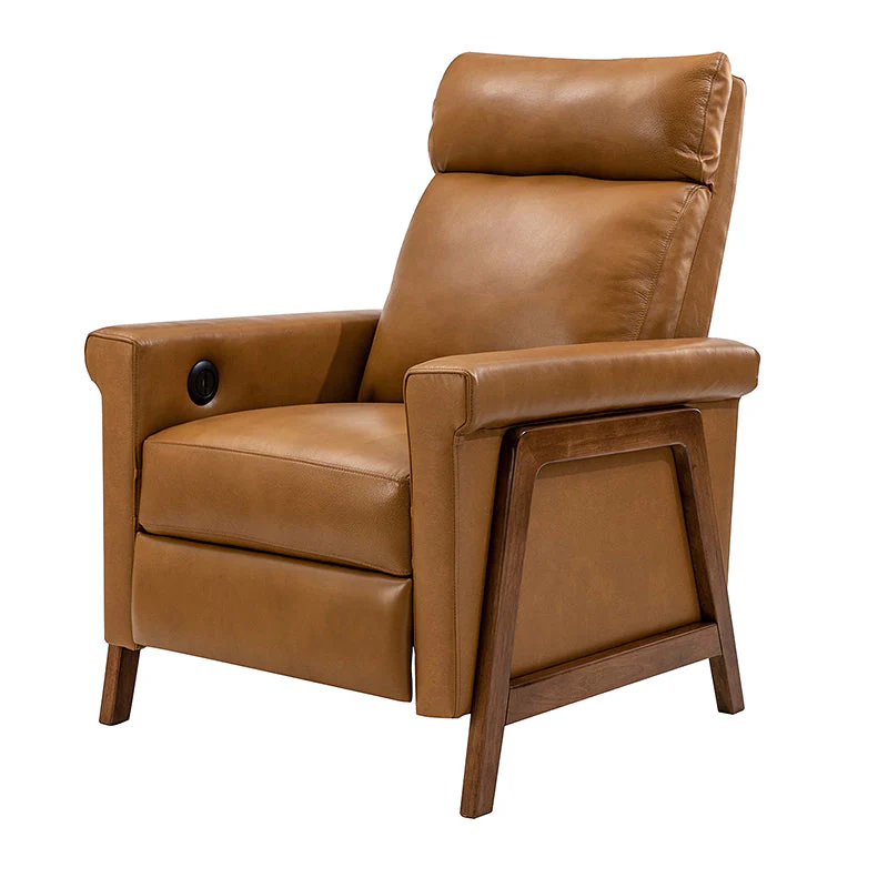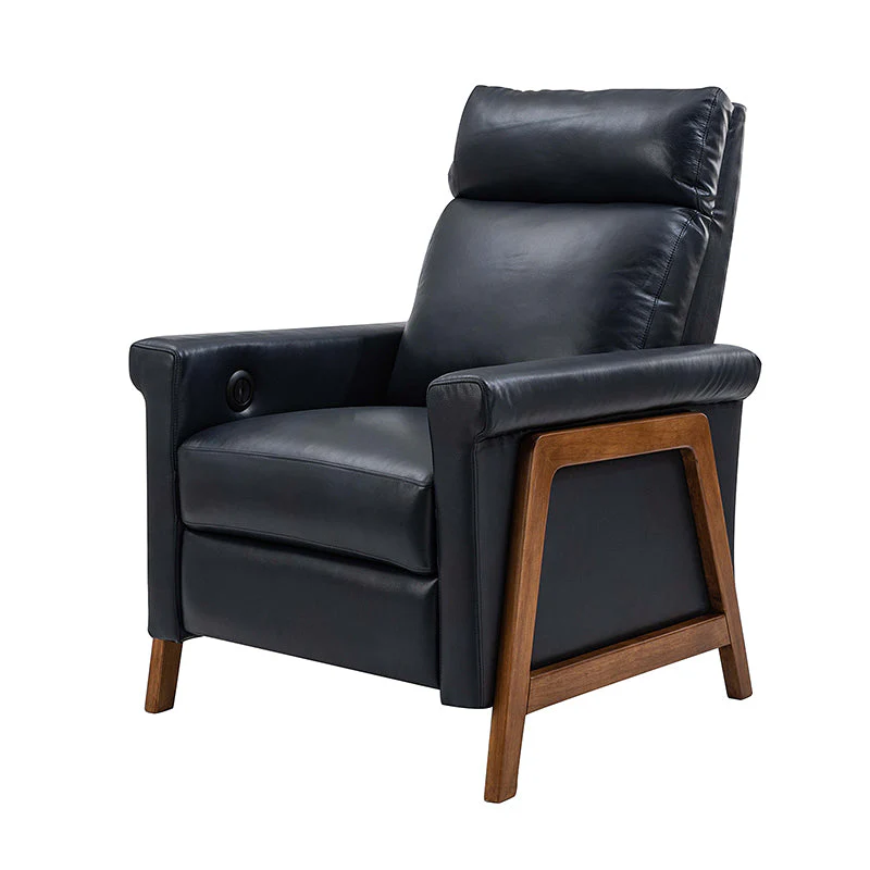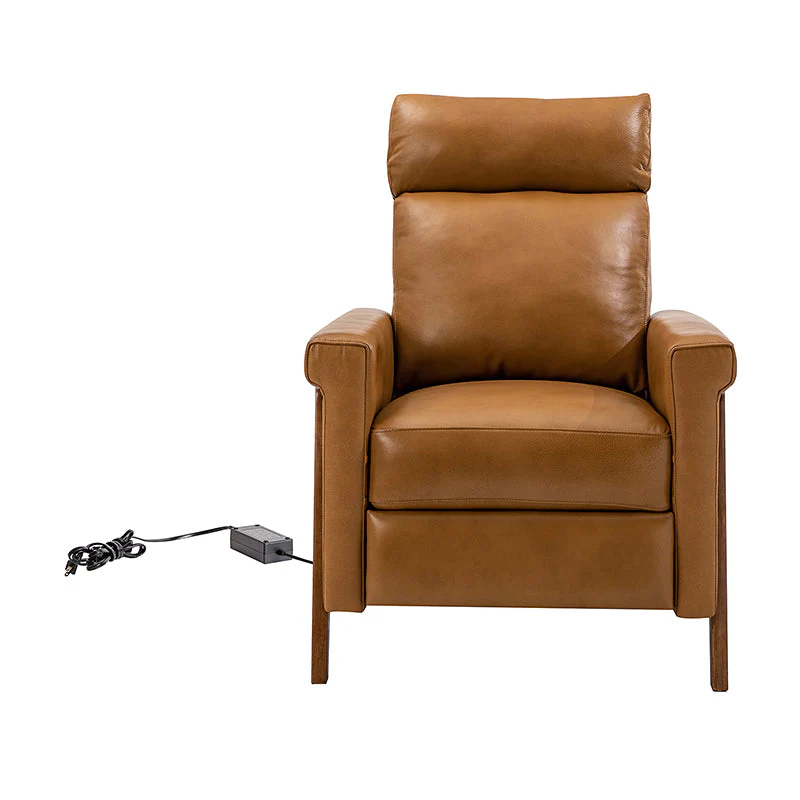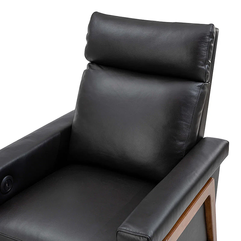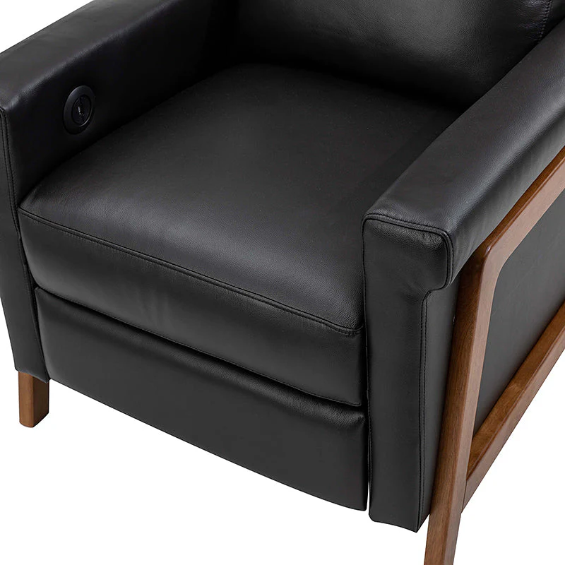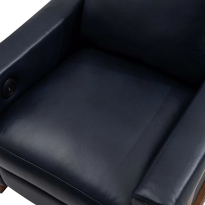 Introducing the power genuine leather recliner, a harmonious blend of sophistication and comfort. Crafted with a solid wood frame, this recliner boasts sleek, modern lines that elevate any living space. Luxuriate in genuine leather upholstery while effortlessly reclining at the touch of a button, thanks to the power recline feature. The retractable footrest cradles your legs in relaxation, while a built-in USB charge station keeps your devices powered and within reach. Elevate your lounging experience with this elegant and functional recliner, where contemporary design meets cutting-edge convenience for the ultimate in relaxation and style.