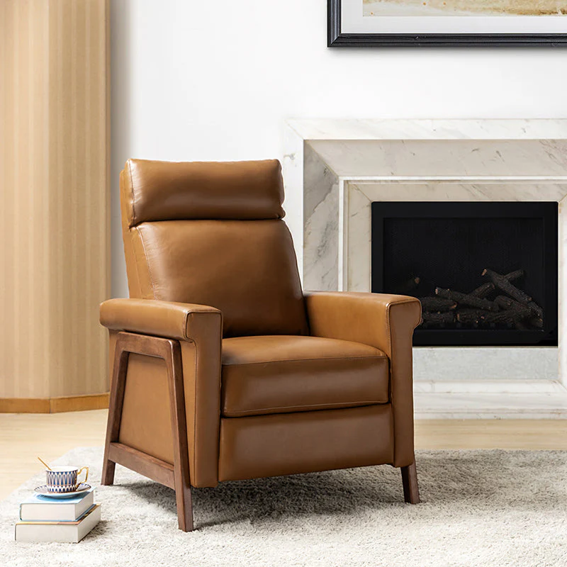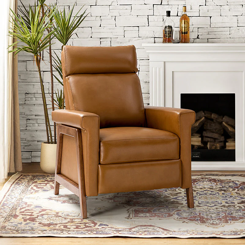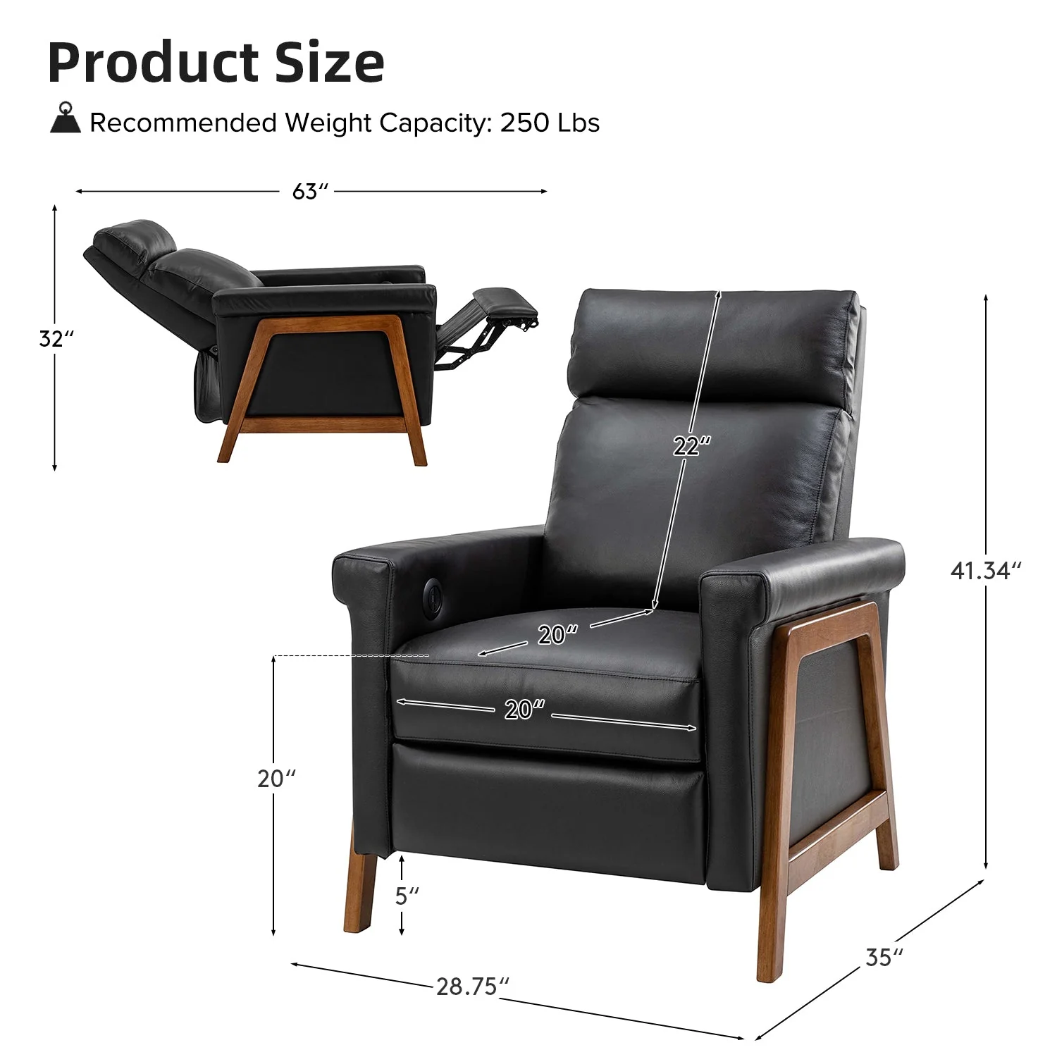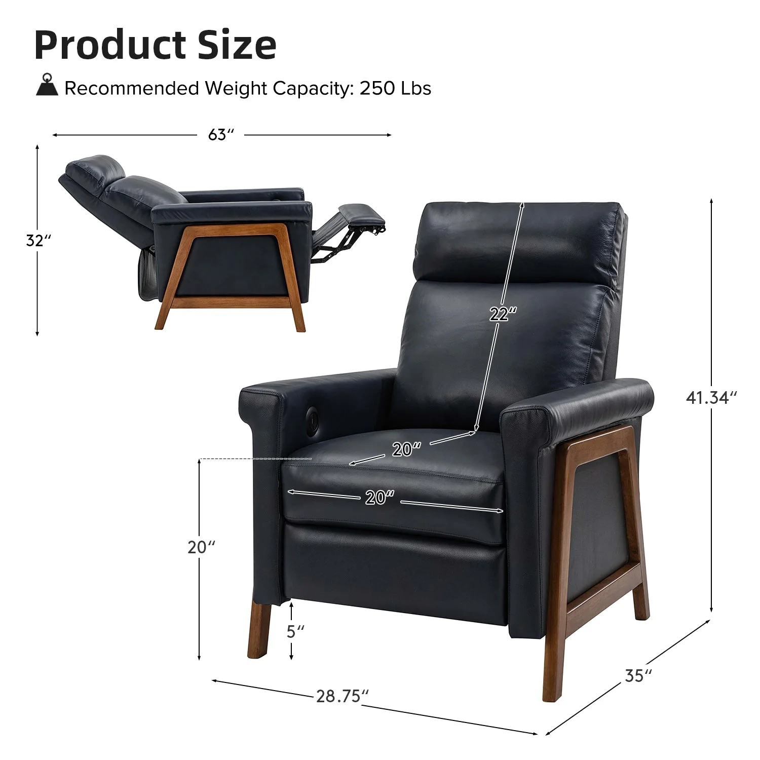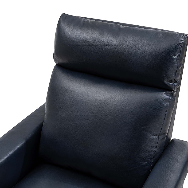 Introducing the power genuine leather recliner, a harmonious blend of sophistication and comfort. Crafted with a solid wood frame, this recliner boasts sleek, modern lines that elevate any living space. Luxuriate in genuine leather upholstery while effortlessly reclining at the touch of a button, thanks to the power recline feature. The retractable footrest cradles your legs in relaxation, while a built-in USB charge station keeps your devices powered and within reach. Elevate your lounging experience with this elegant and functional recliner, where contemporary design meets cutting-edge convenience for the ultimate in relaxation and style.