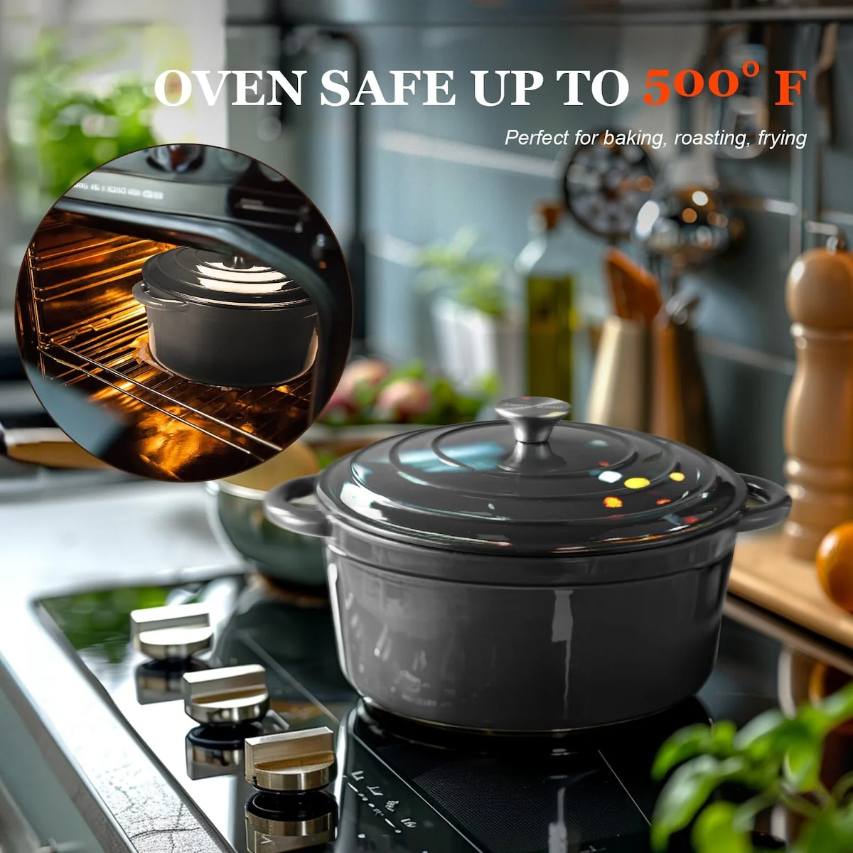 Universal Compatibility: Our premium enamel Dutch oven is designed to shine on various stovetops, including gas, electric, ceramic, and even induction. Plus, it's oven safe up to 500℉, offering an exceptional range of cooking options.