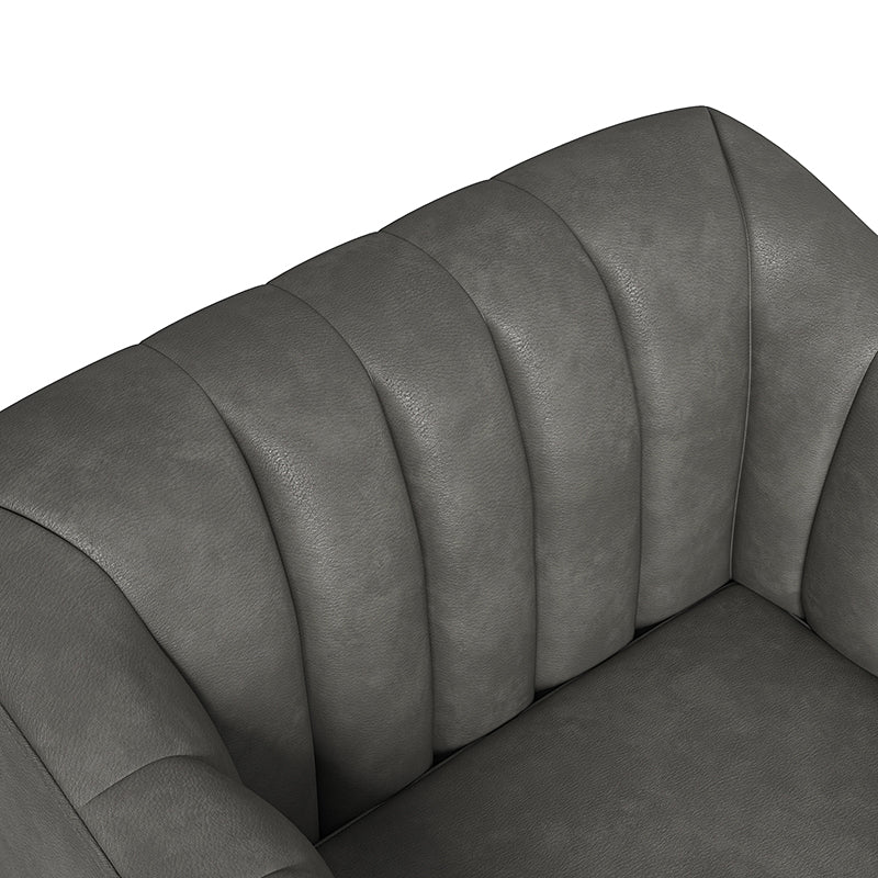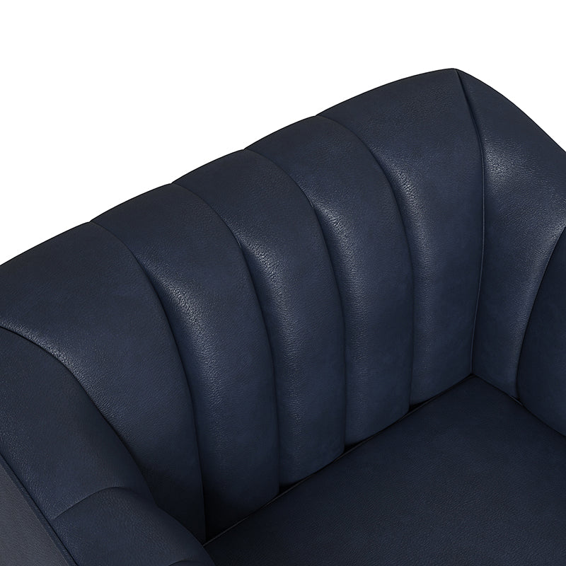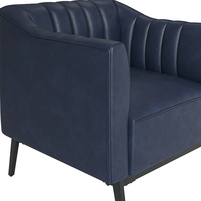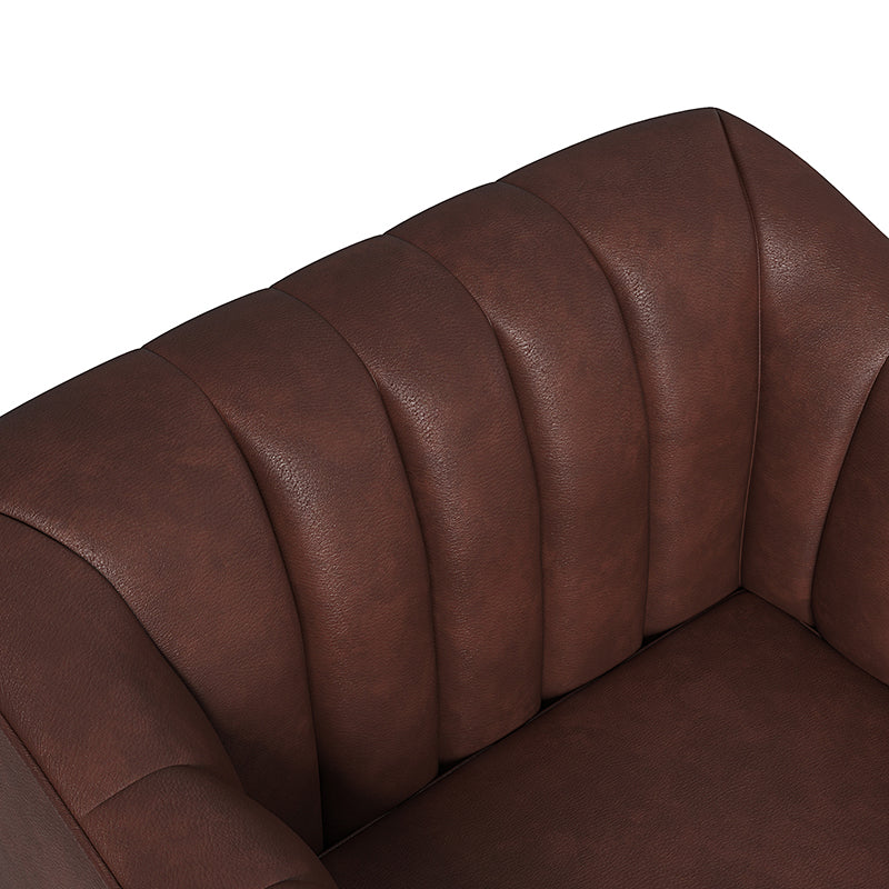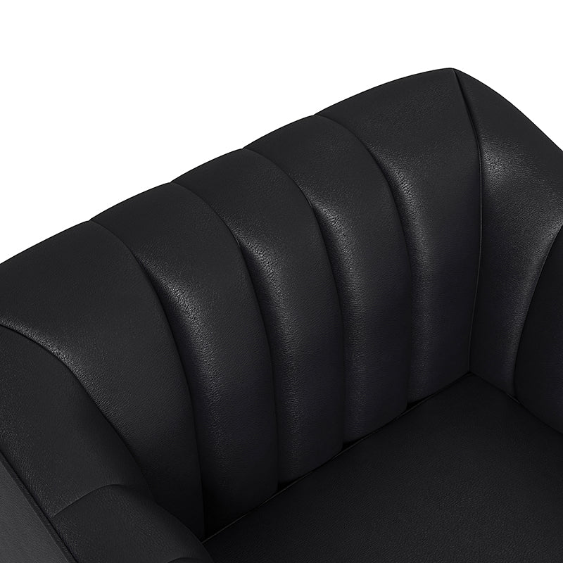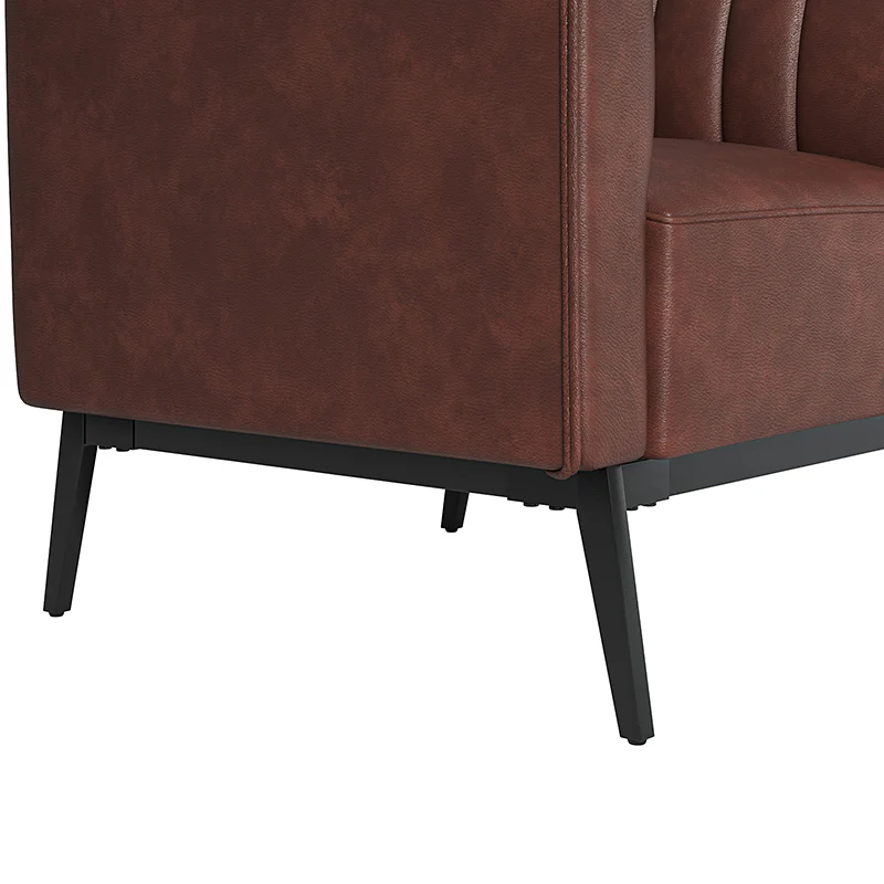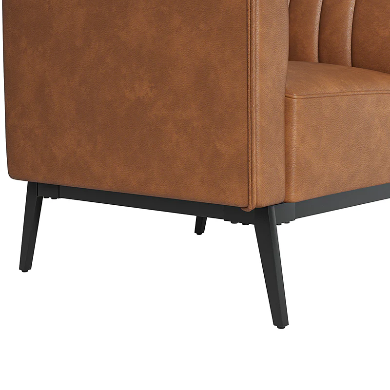 BImmerse yourself in the industrial chic with this exquisitely designed accent chair. Upholstered in quality PU leather, this chair is waterproof and easily cleanable surface ensuring a worry-free experience. Supported by sturdy metal legs, this chair offers reliable stability and robust support, ensuring longevity. The vertical channel tufting on the chair enhances both comfort and visual appeal, creating a visually appealing texture that complements the overall aesthetic. The solid back provides ample support and comfort, making it a good choice for long hours of relaxation or work. Elevate your living or office space with this practical chair that combines industrial charm with contemporary comfort.