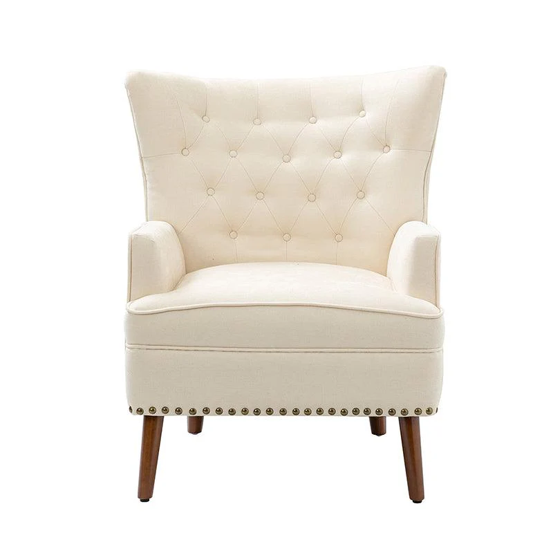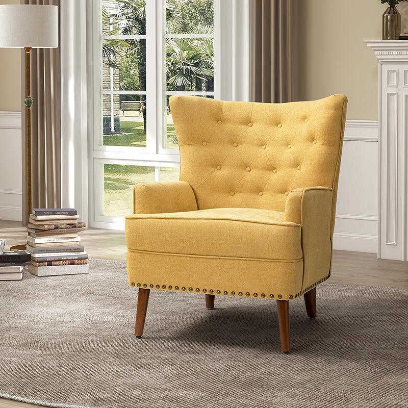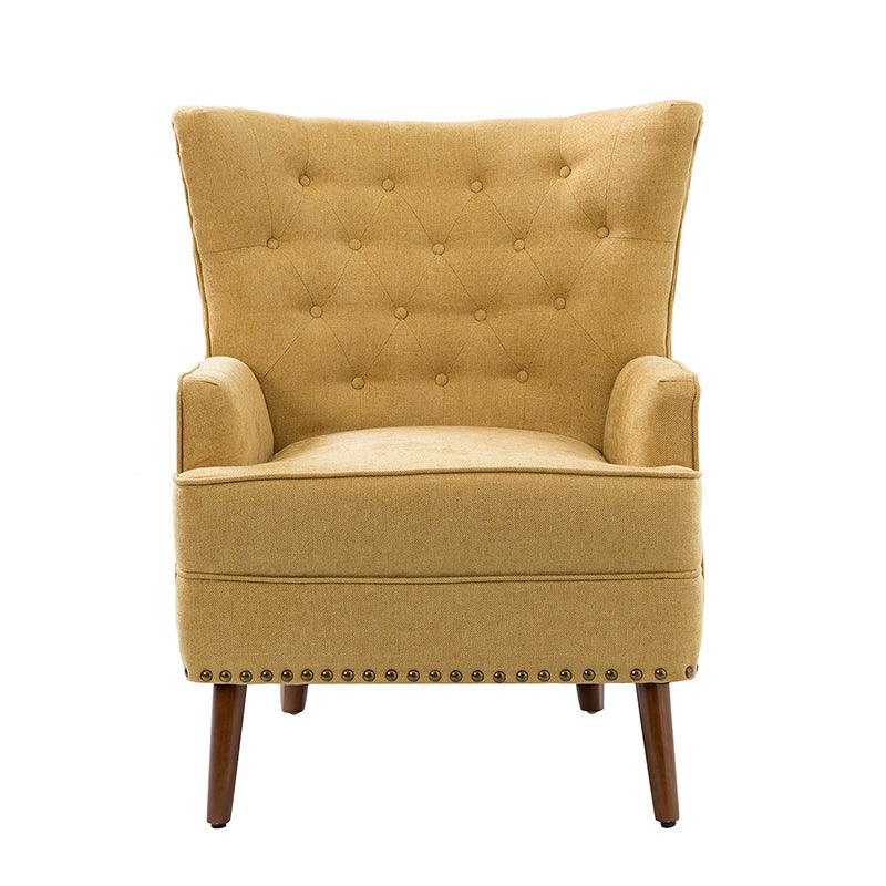 Are you still looking for an armchair to decorate your space? This armchair is the best choice for you. This armchair has a transitional style with a tight back, nailhead trim body and unique recessed arms adding texture and sophisticated upholstery. It is supported by a sturdy solid and manufactured wood frame and a built-in S-spring, and it showcases the visual effect of the combination of different materials that bring about a collision of softness and hardness. This sturdy construction is covered by polyester and padded by thick foam, providing the right choice for long-lasting comfort, with a construction that will stand the test of time. This armchair is suitable for all decors that you need.