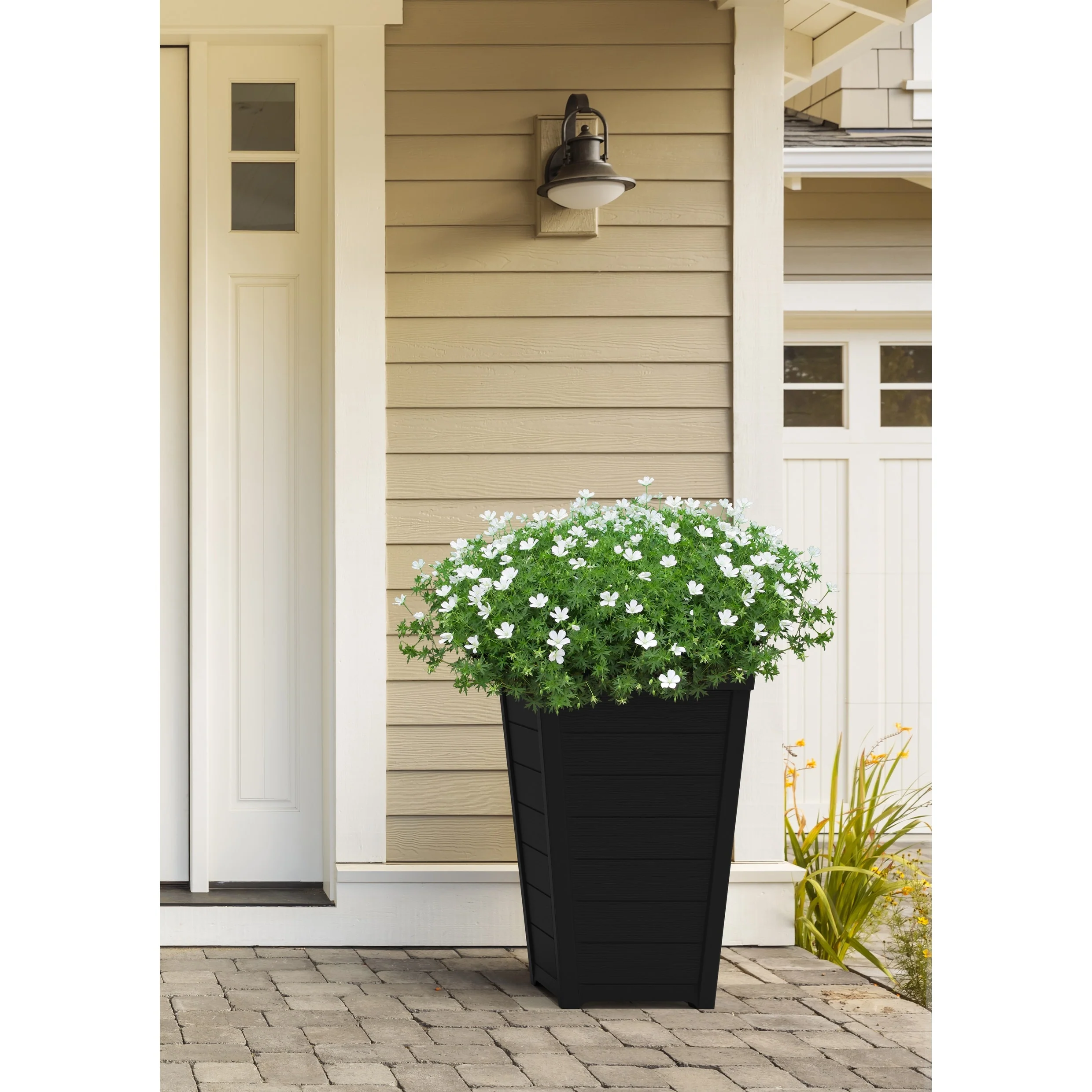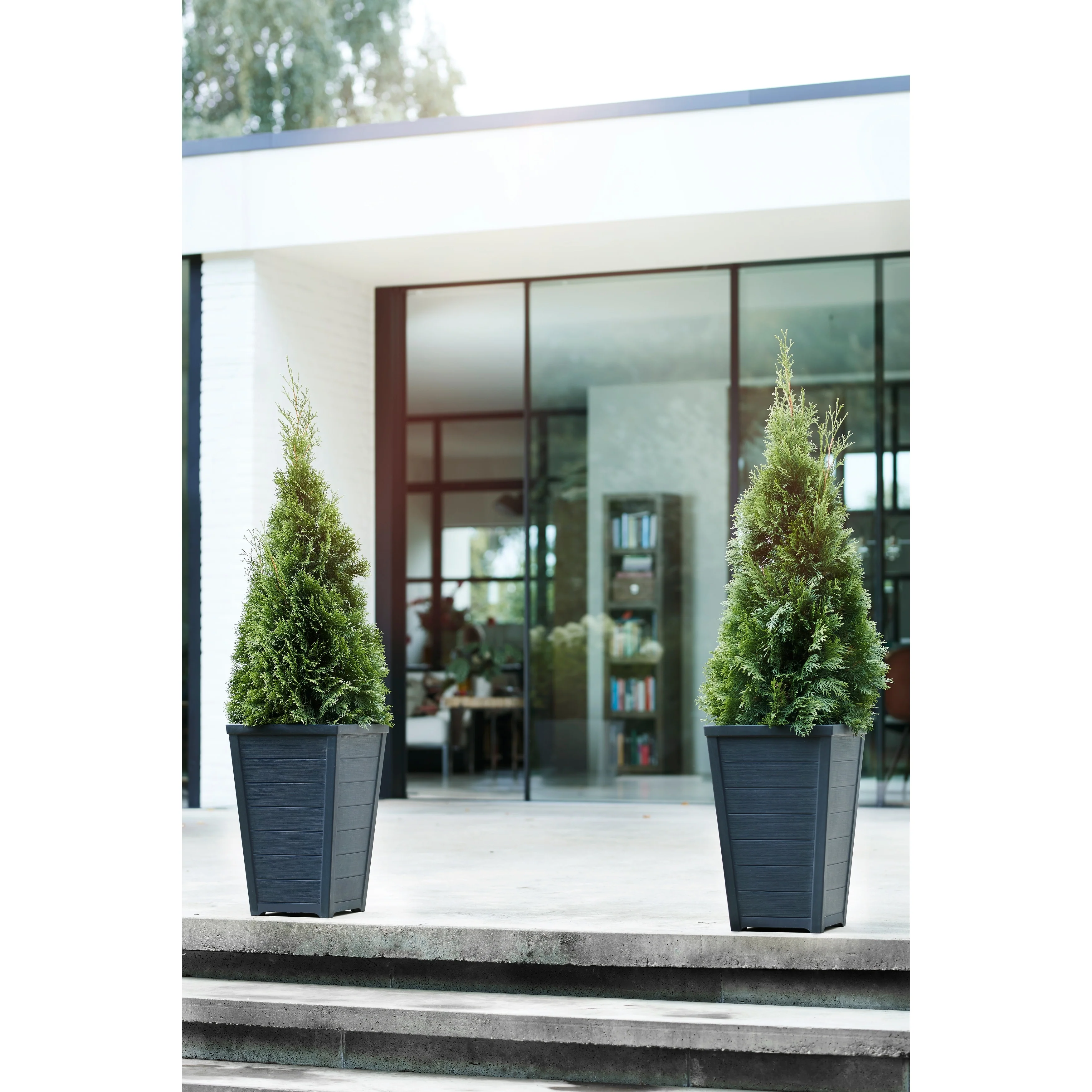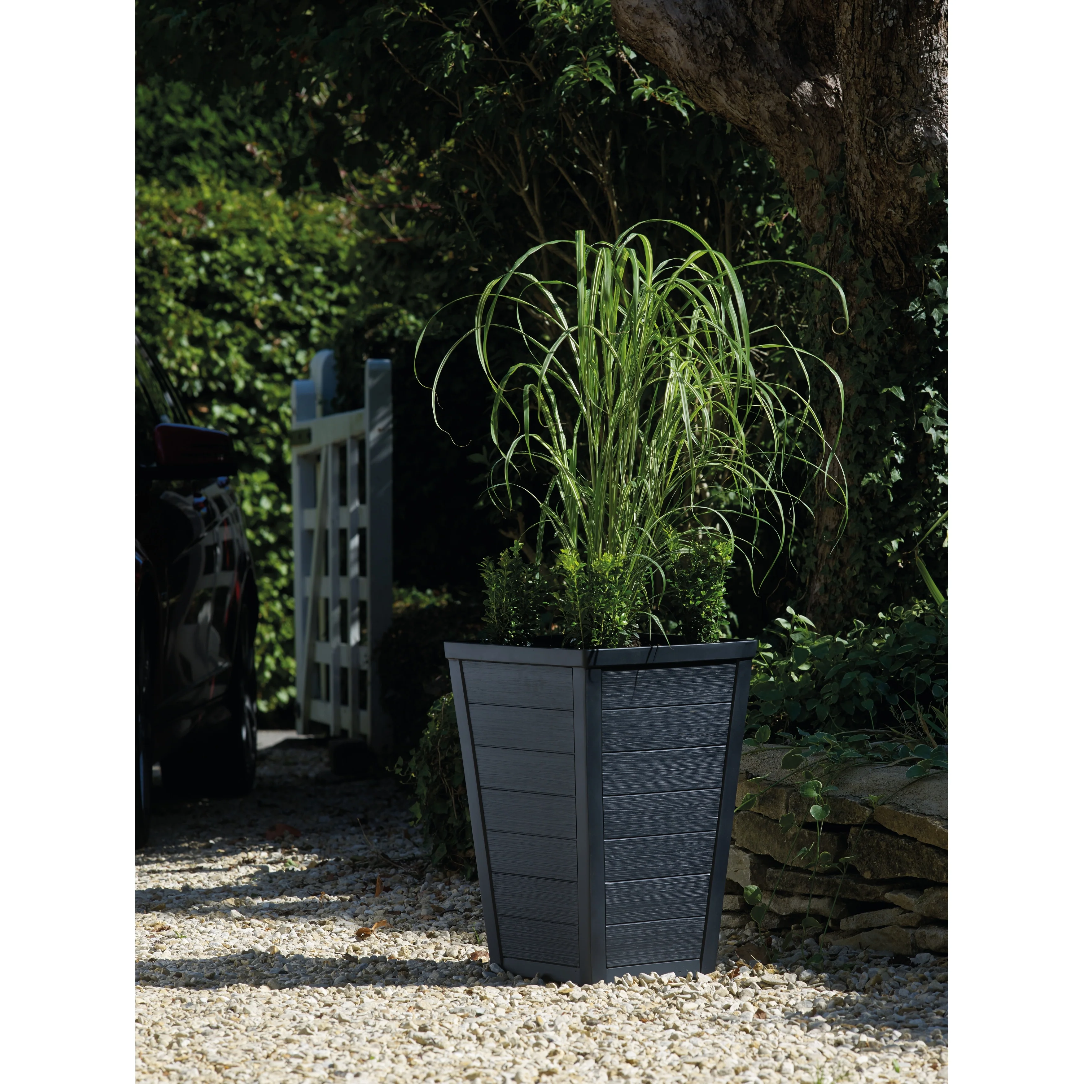 Add a touch of green in a modern way with the Resin Wood Tapered Slat Planter from Keter. If you love the contemporary yet rustic look of wood slats but hate the splinters, extra weight and vulnerability to weather damage, this heavy-duty plastic alternative is the planter for you.