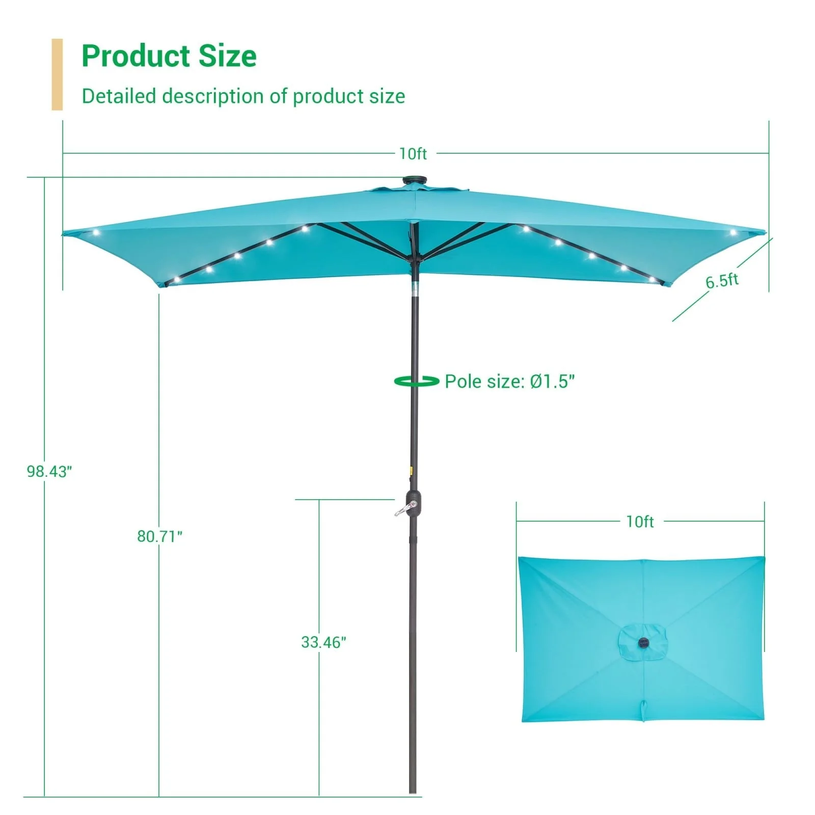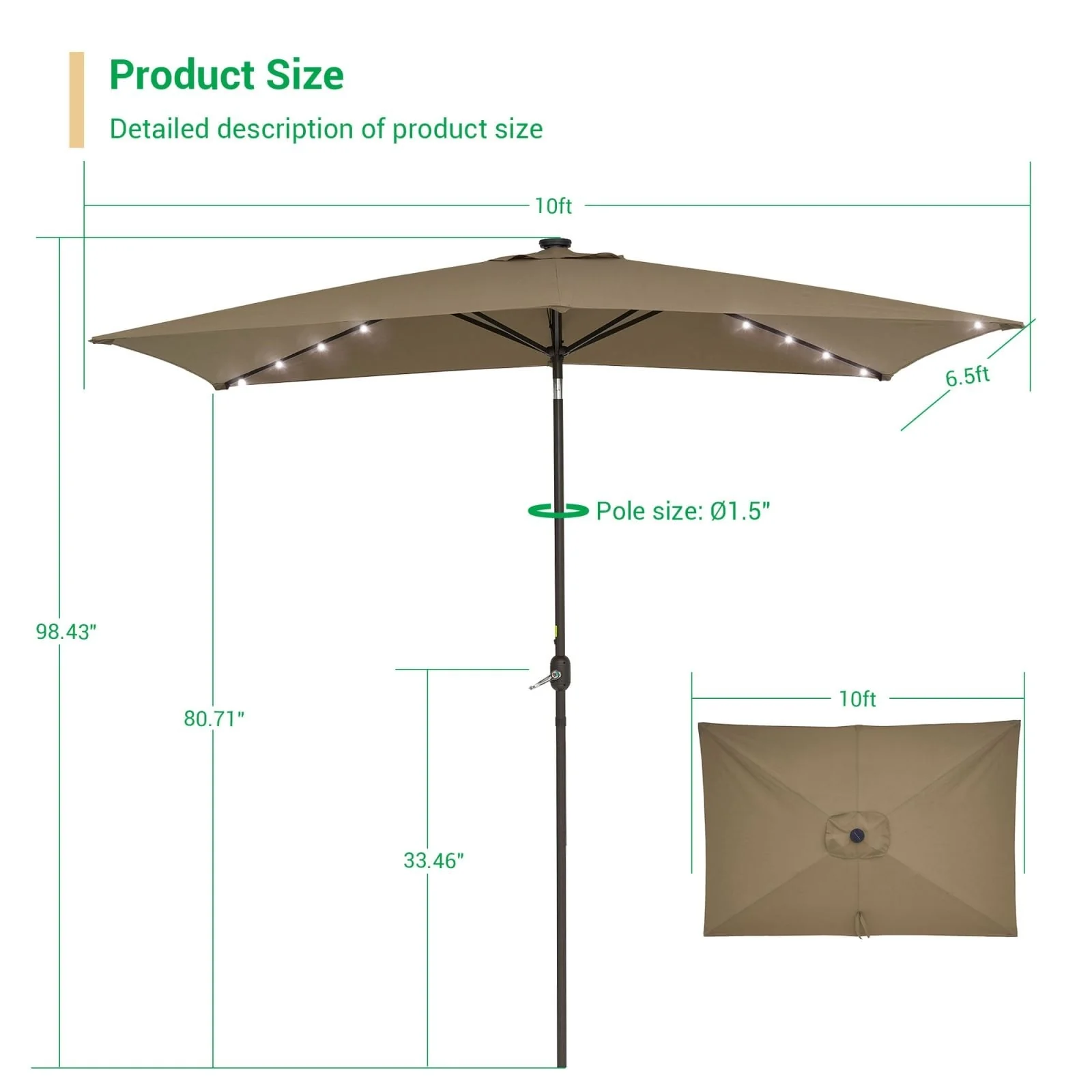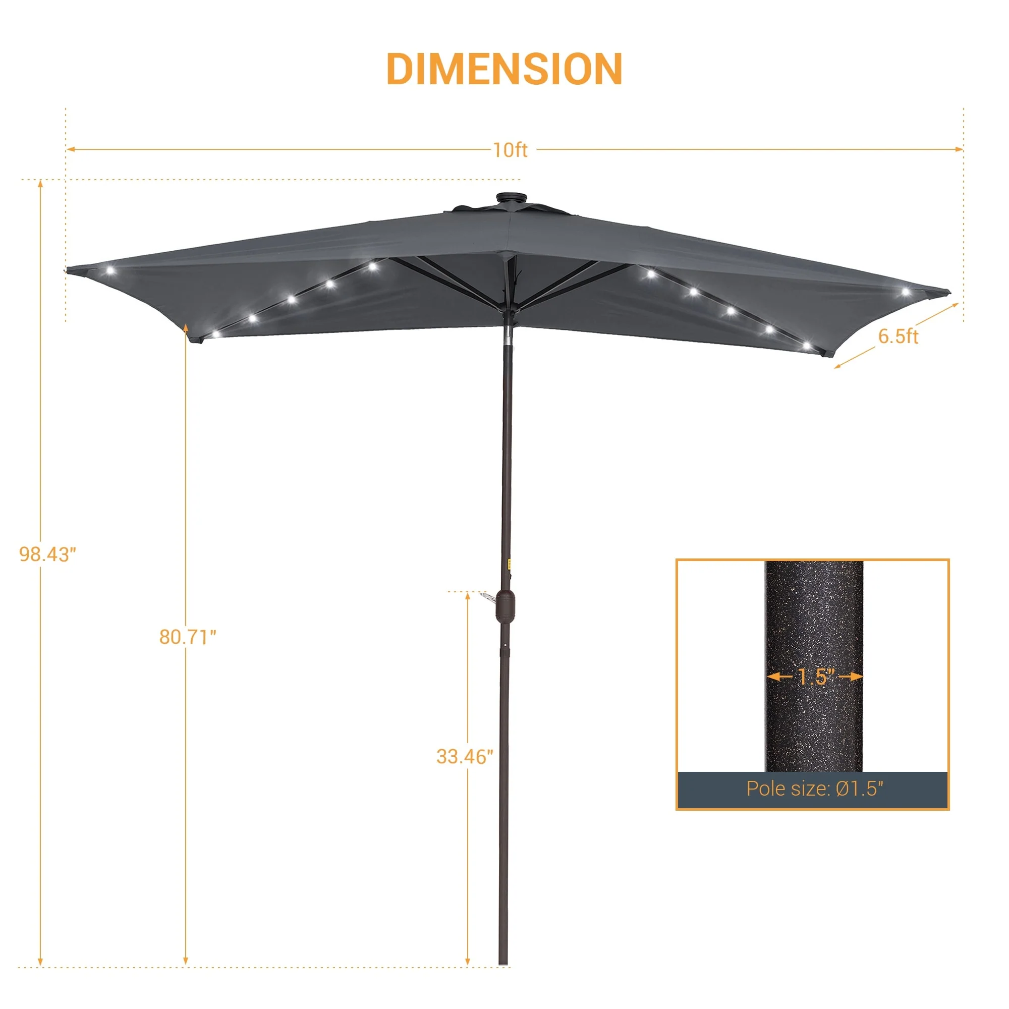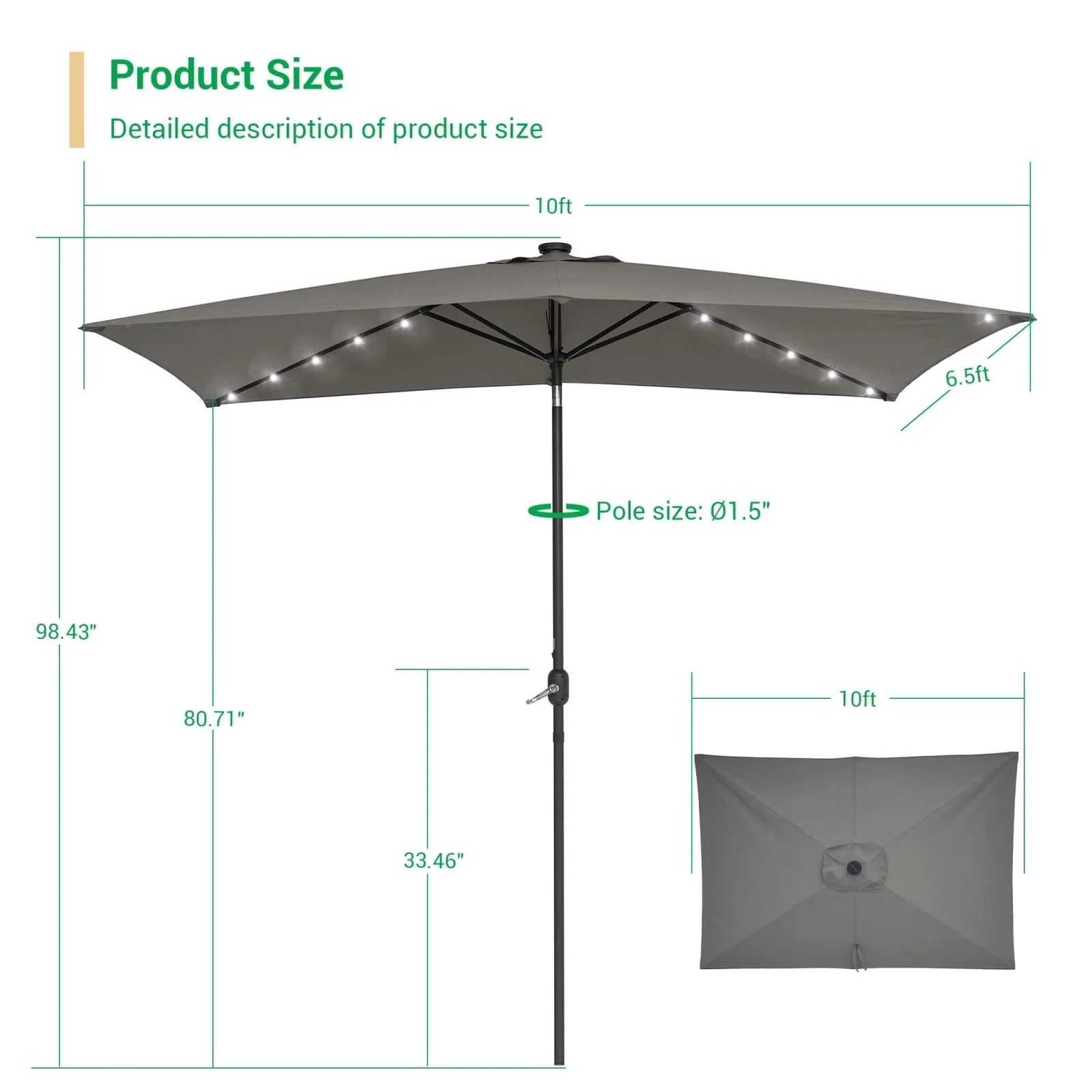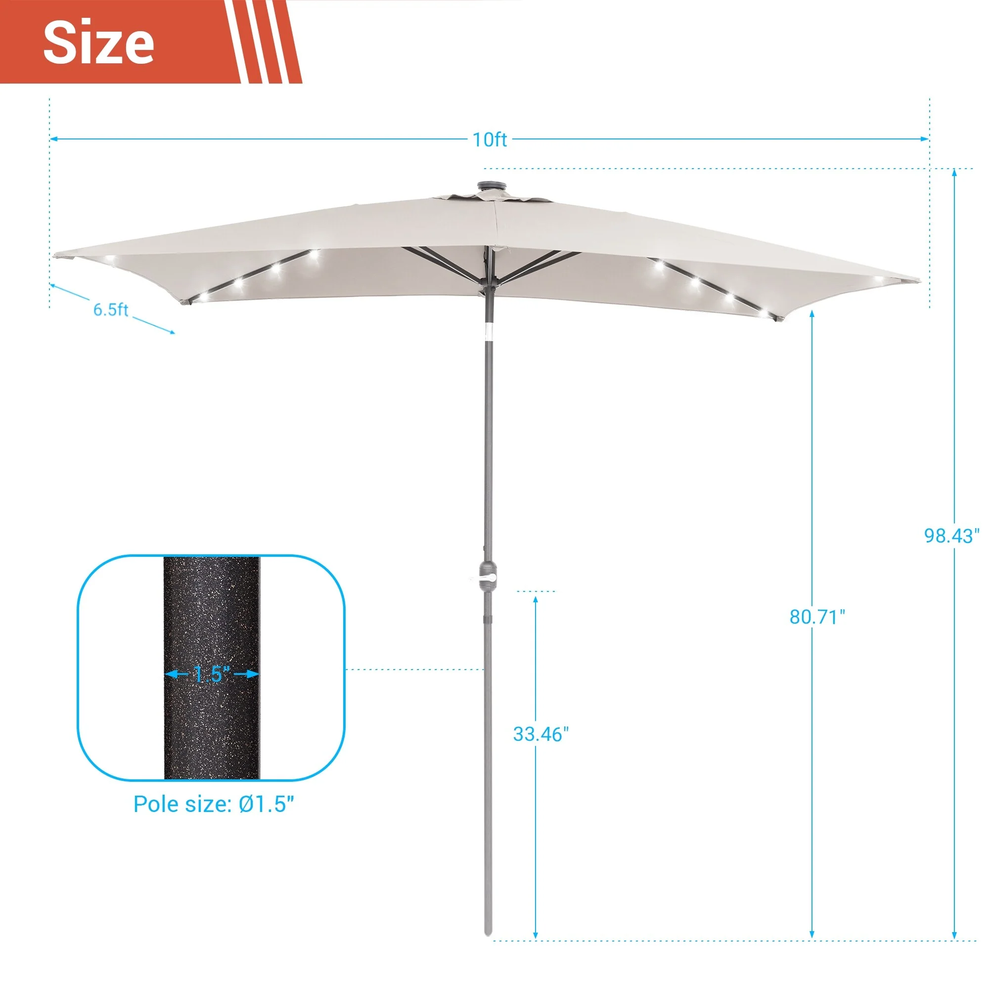 • LIVOOSUN Patio LED 10 x 6.5Ft Market Umbrella Aluminum/Steel Outdoor Table Rectangle Umbrella with Tilt