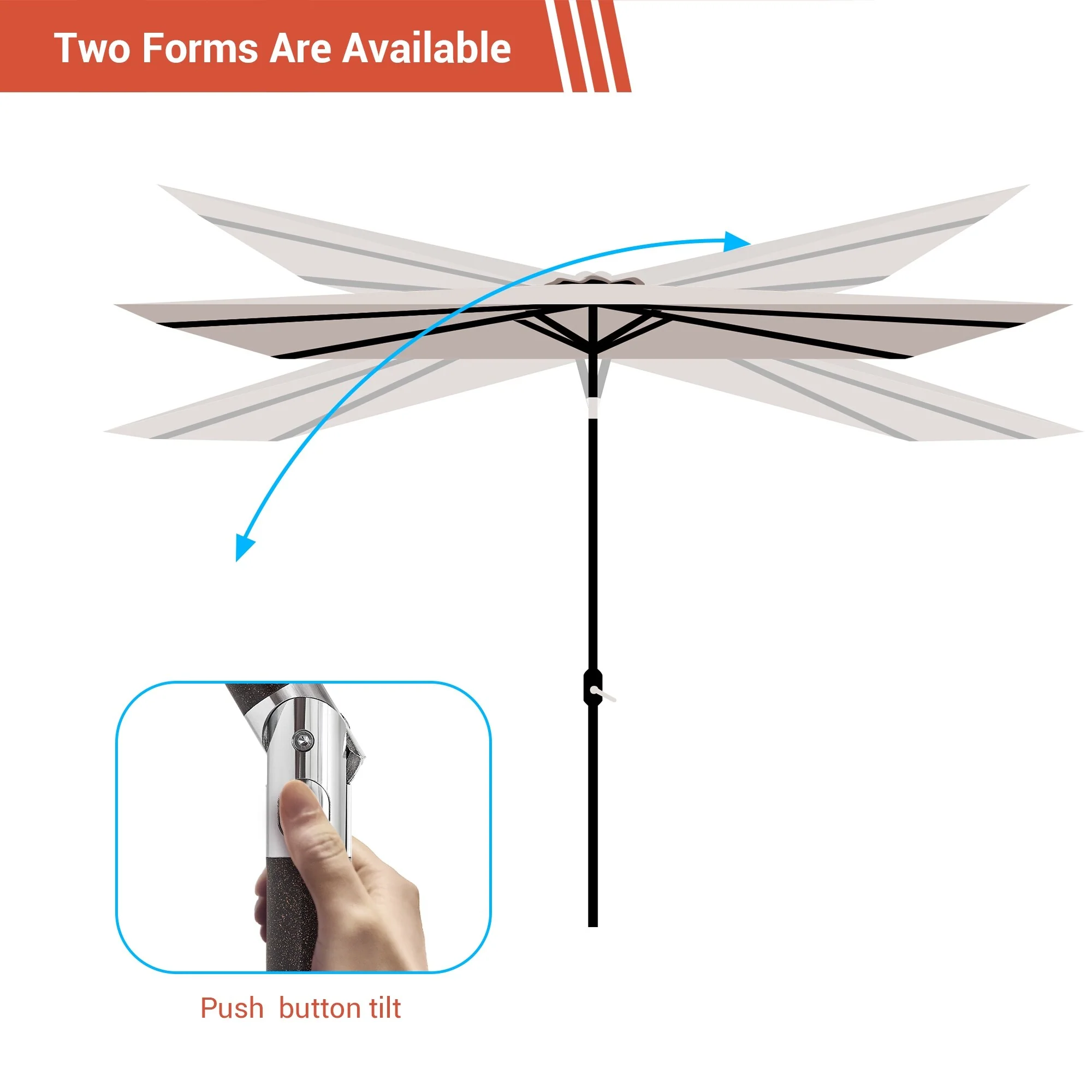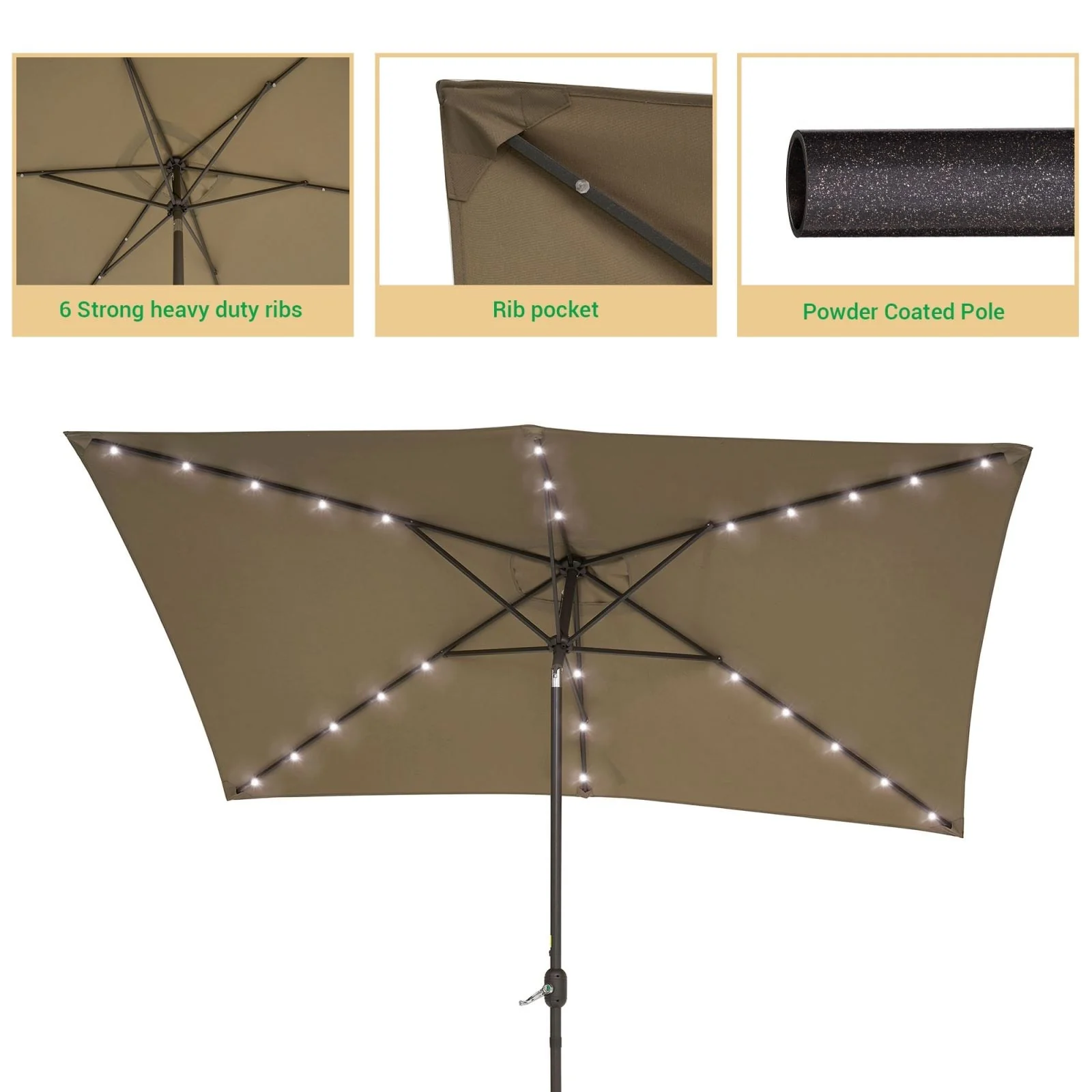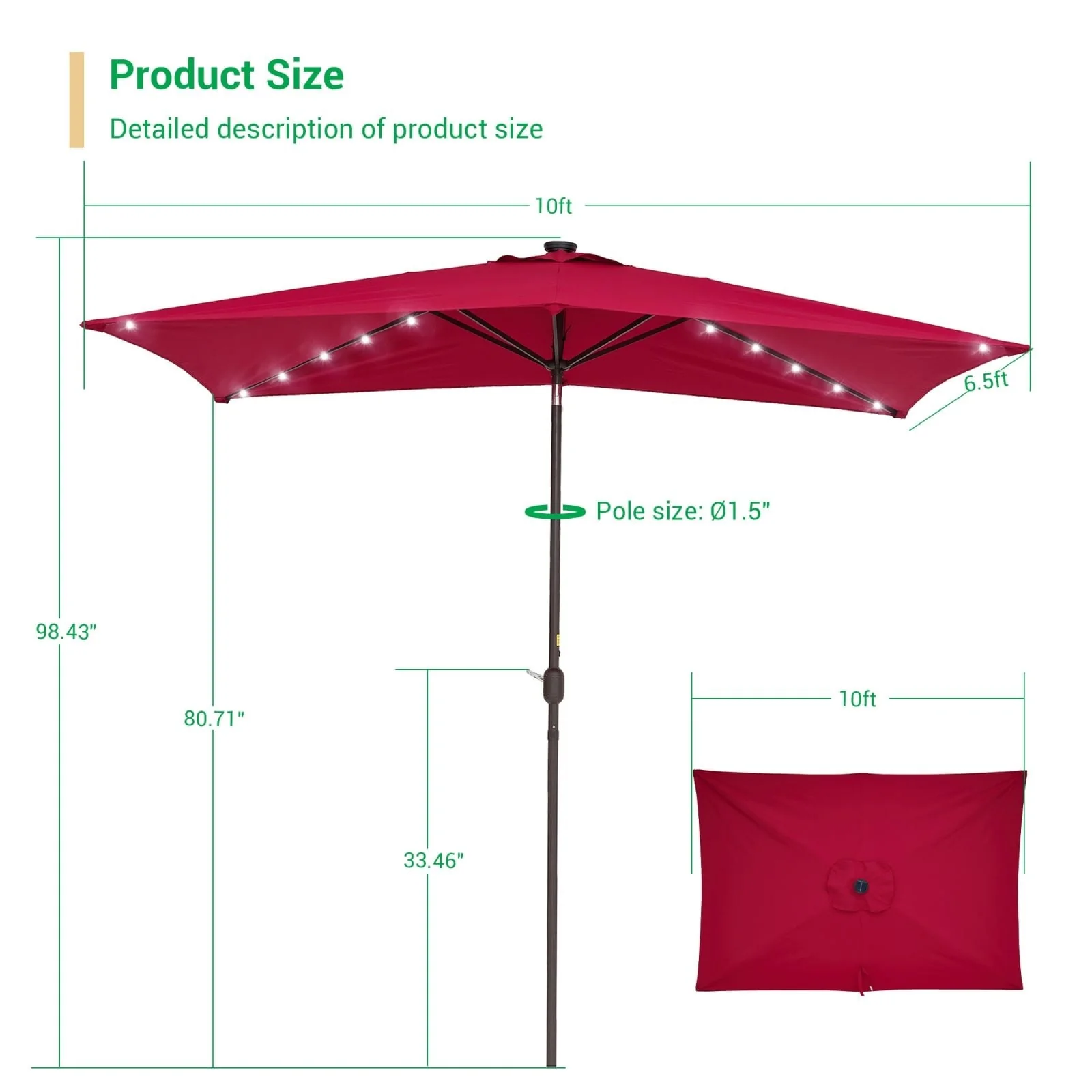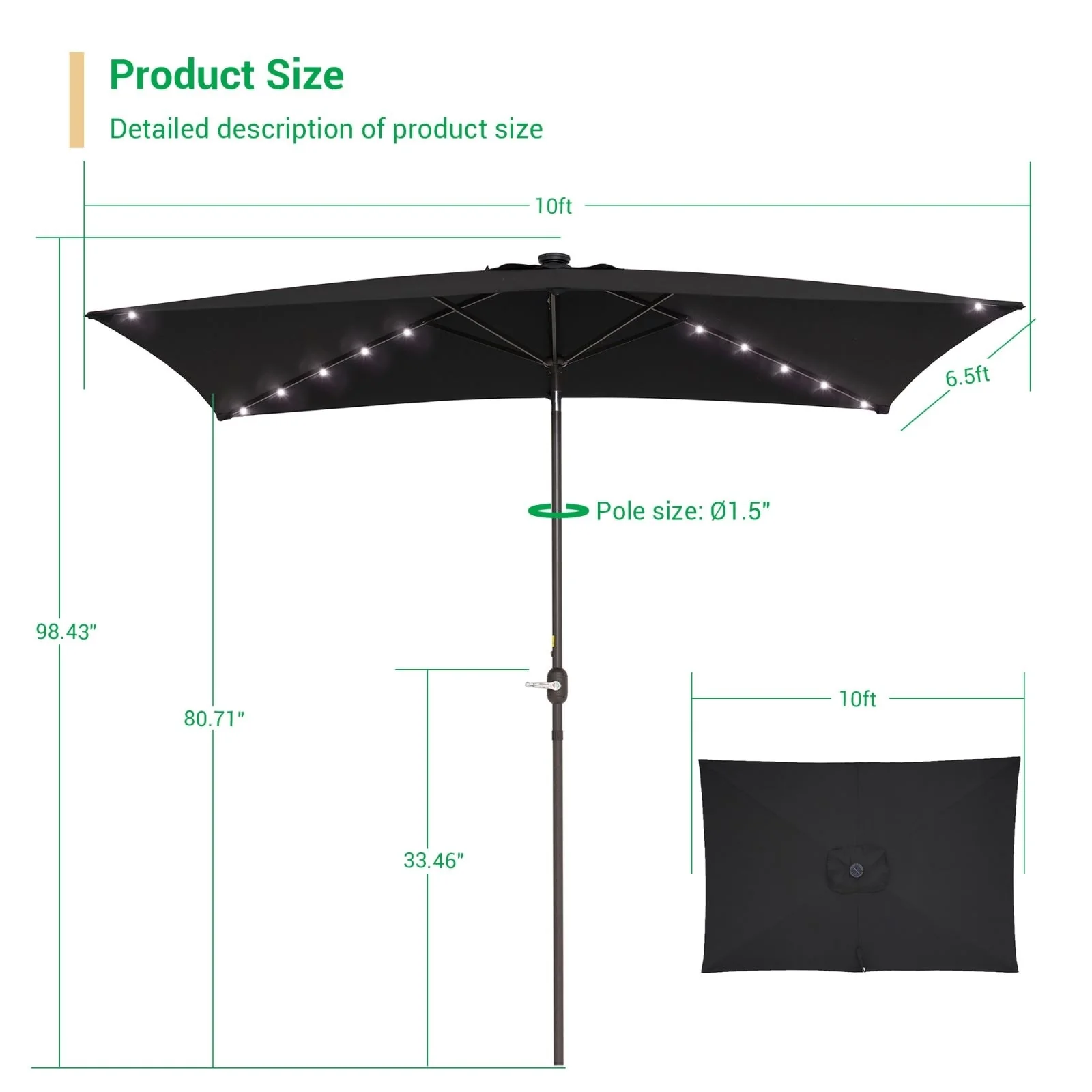 • LIVOOSUN Patio LED 10 x 6.5Ft Market Umbrella Aluminum/Steel Outdoor Table Rectangle Umbrella with Tilt