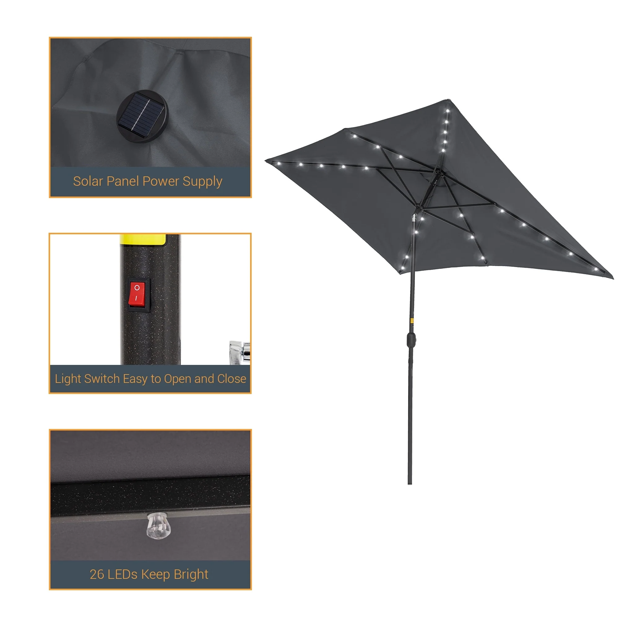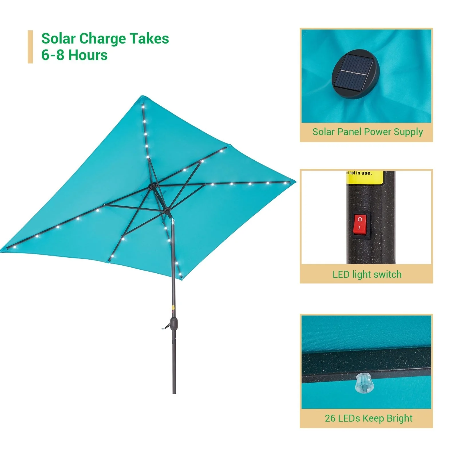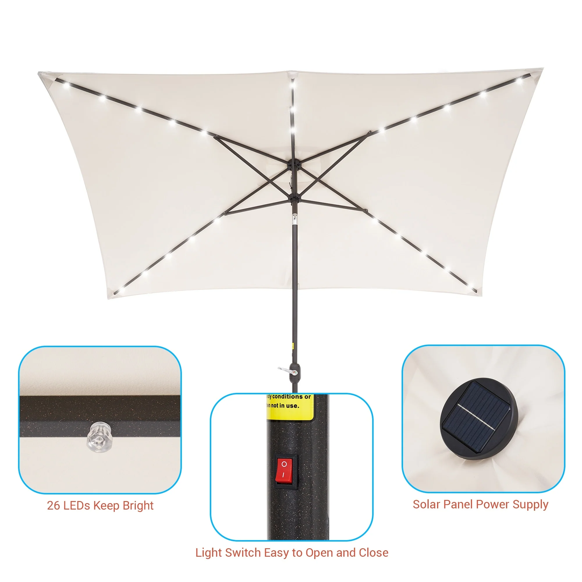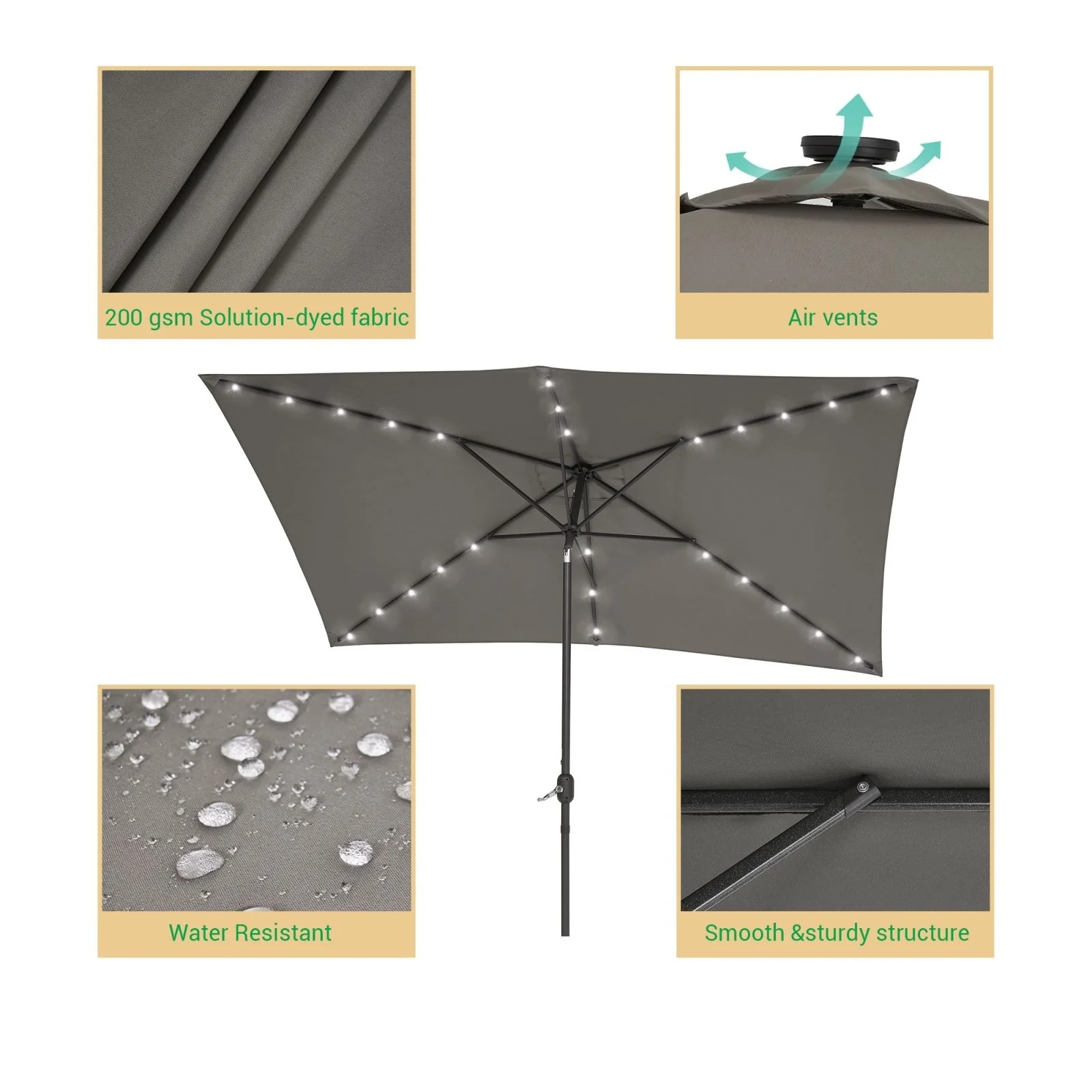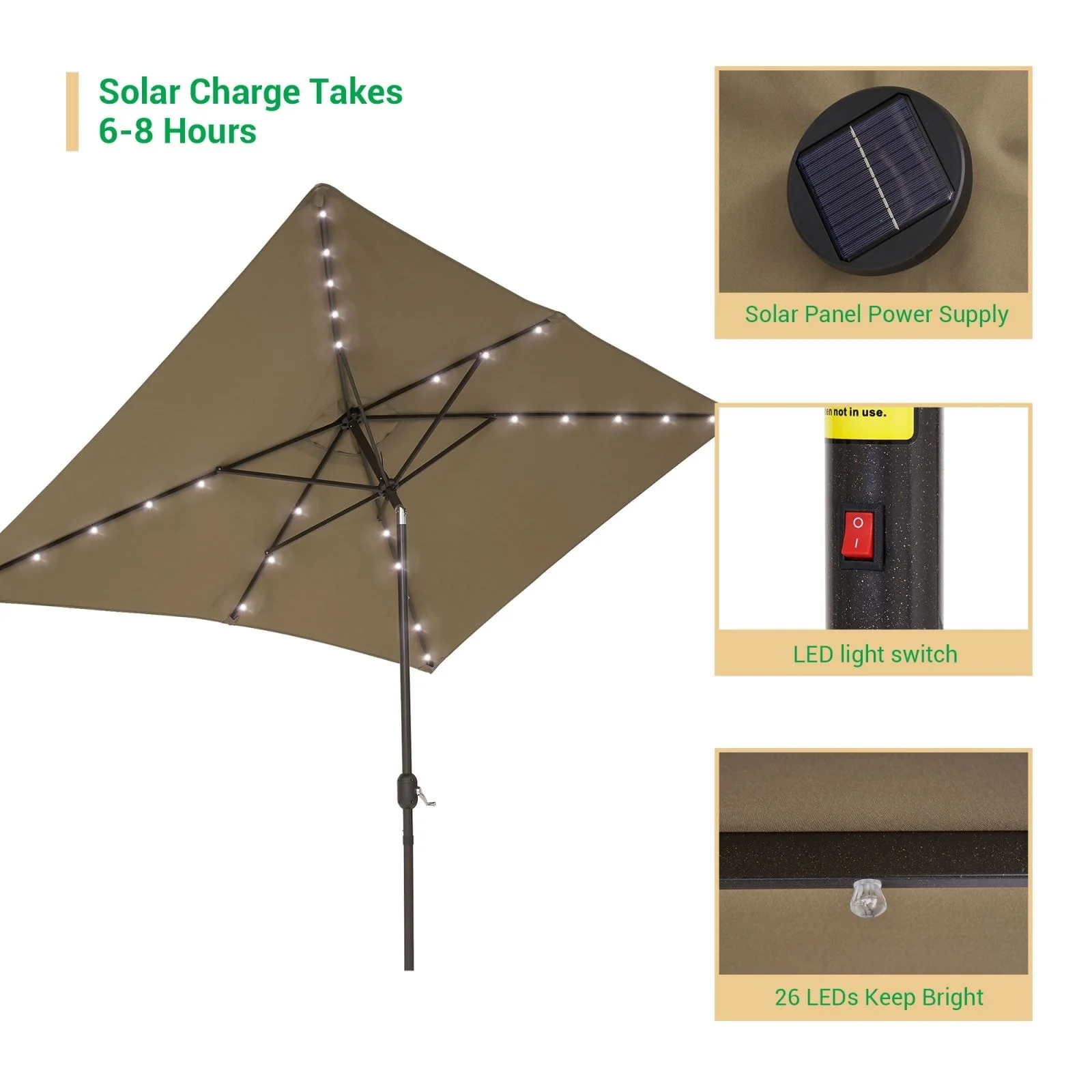 • LIVOOSUN Patio LED 10 x 6.5Ft Market Umbrella Aluminum/Steel Outdoor Table Rectangle Umbrella with Tilt