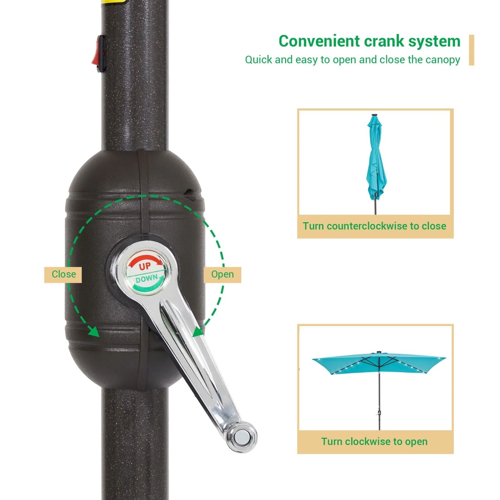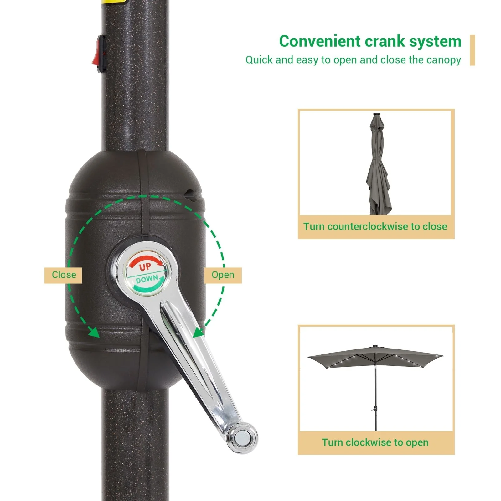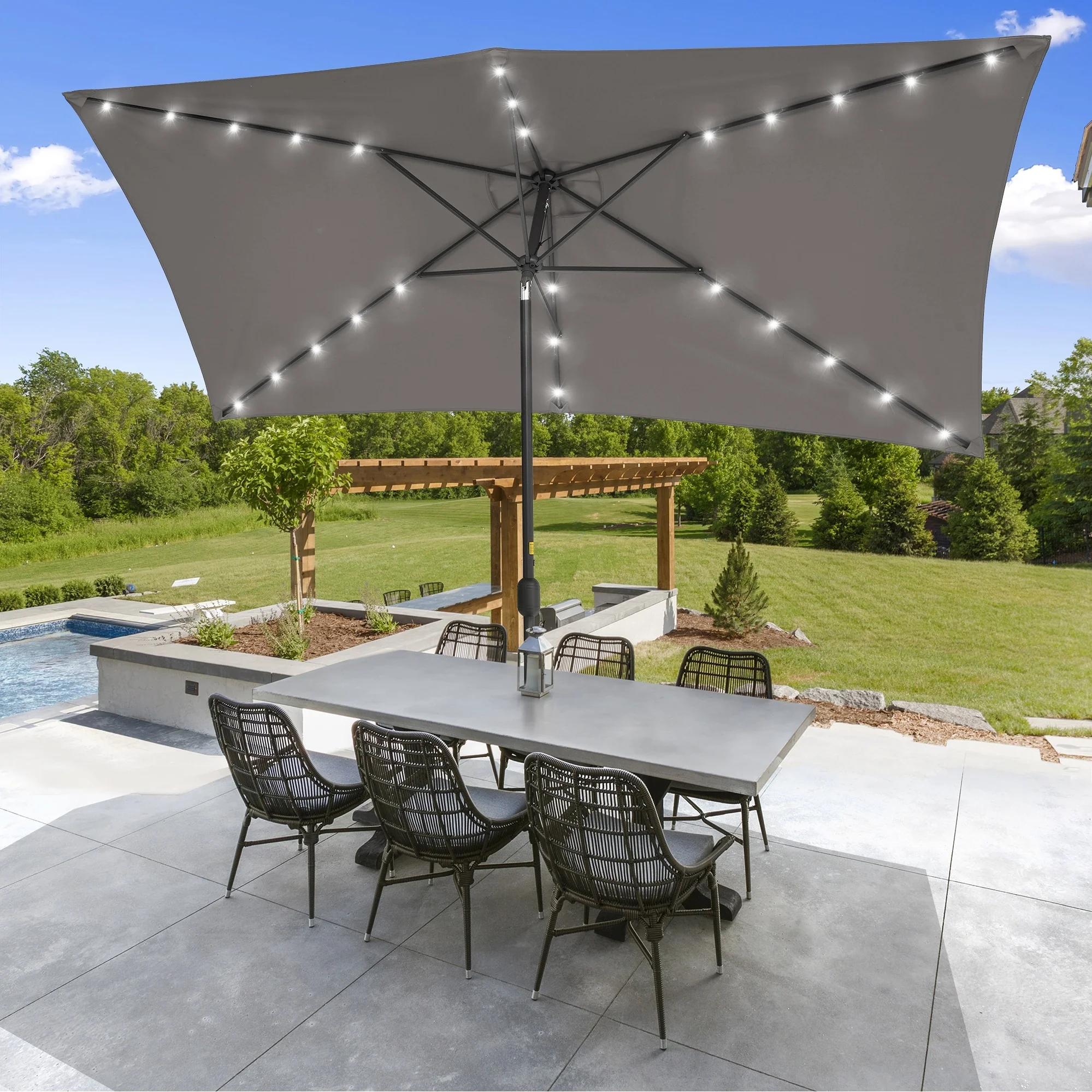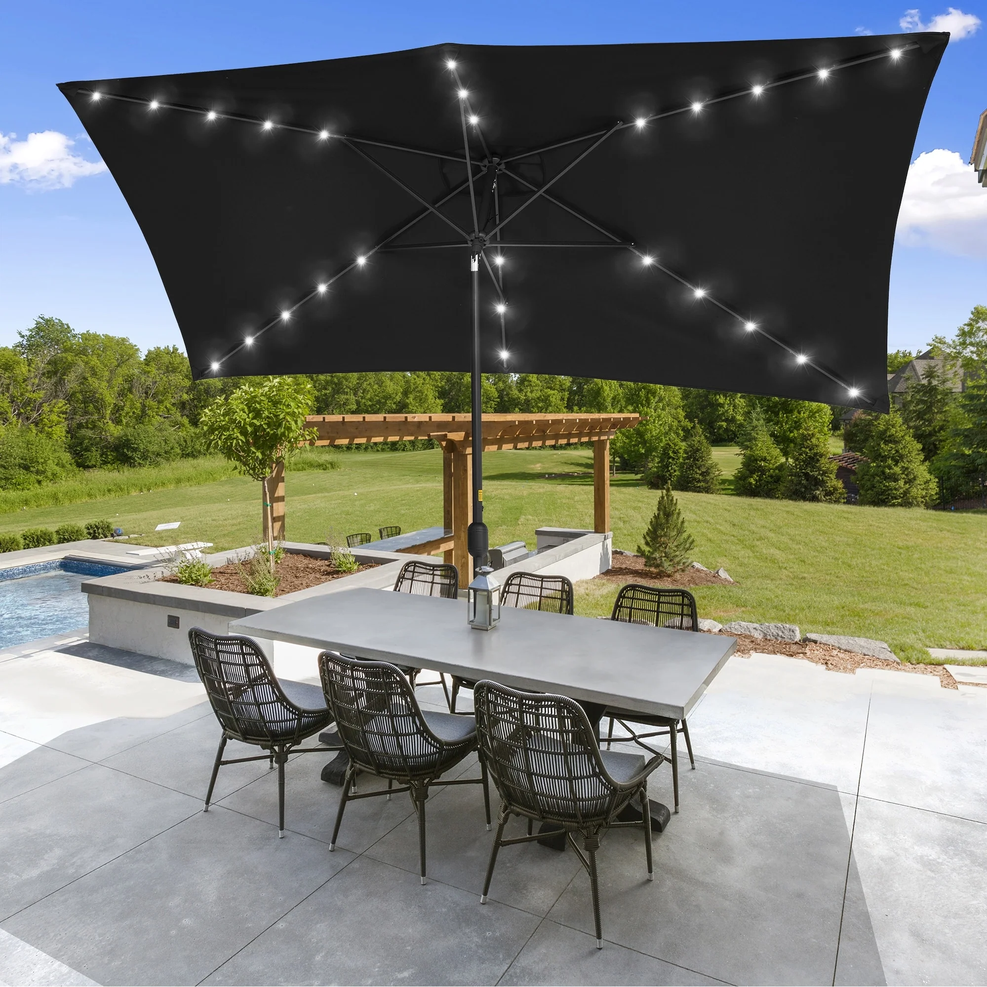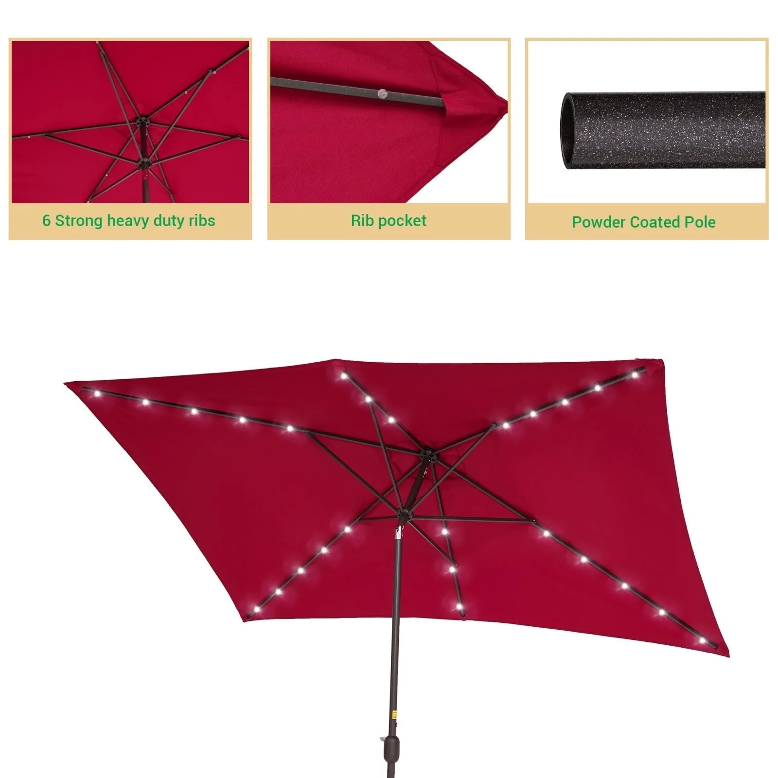 • LIVOOSUN Patio LED 10 x 6.5Ft Market Umbrella Aluminum/Steel Outdoor Table Rectangle Umbrella with Tilt