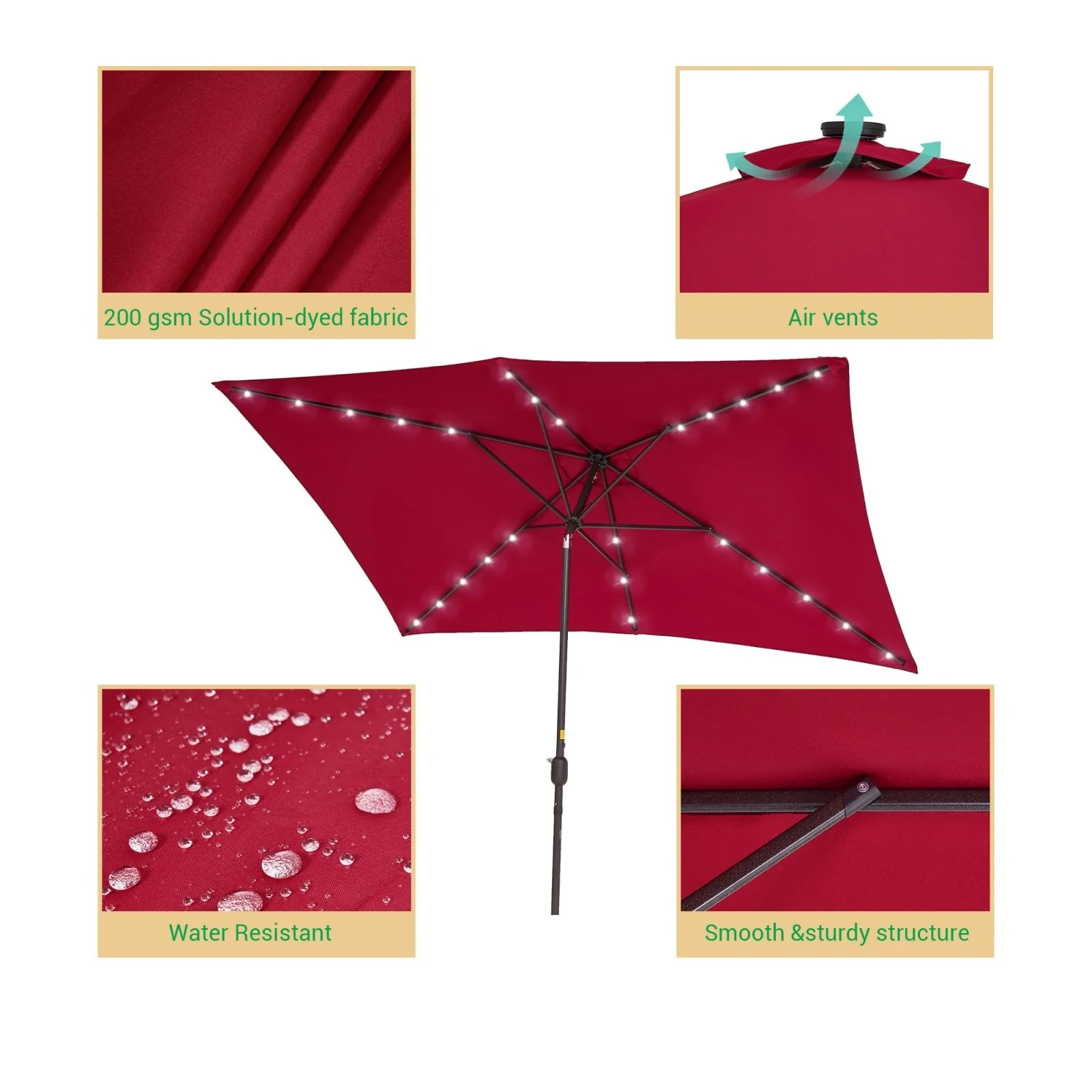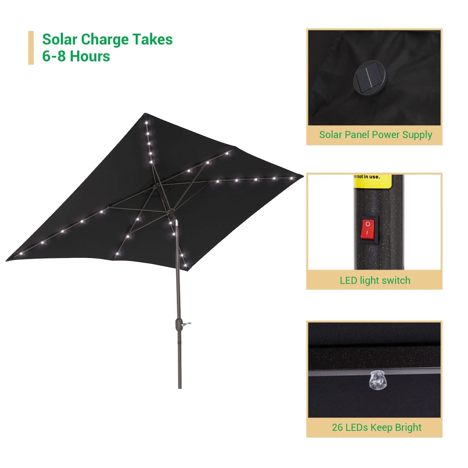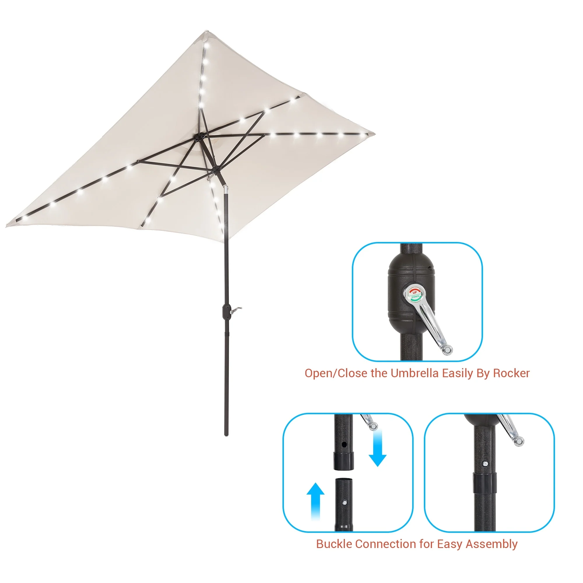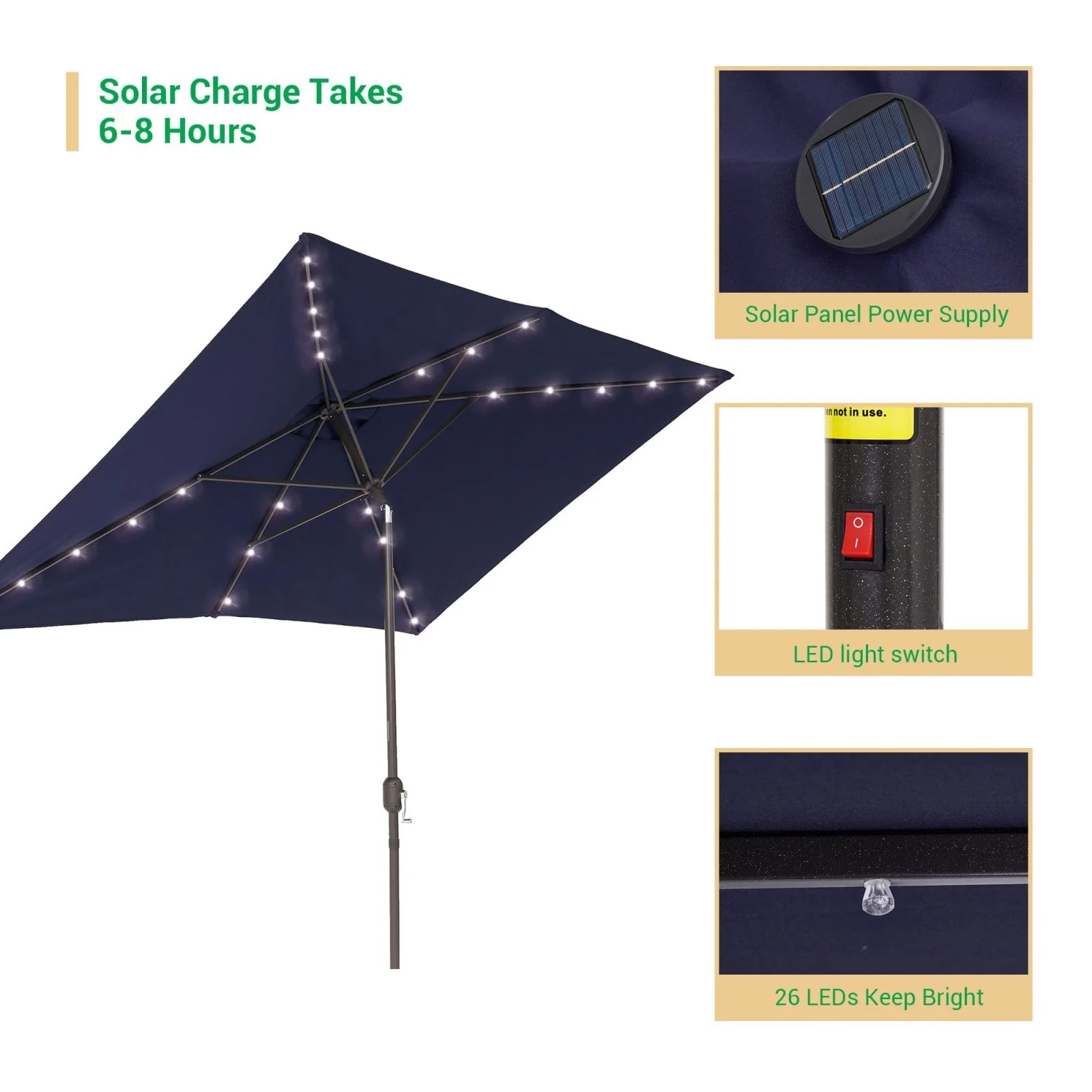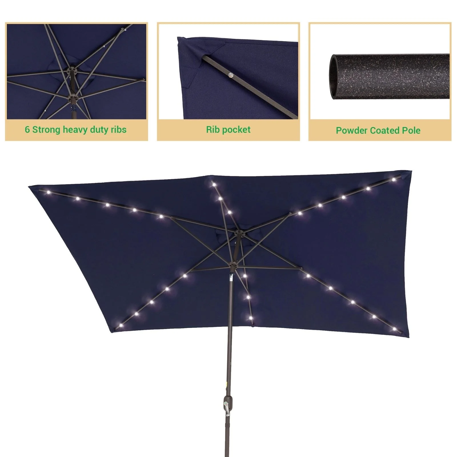 • LIVOOSUN Patio LED 10 x 6.5Ft Market Umbrella Aluminum/Steel Outdoor Table Rectangle Umbrella with Tilt