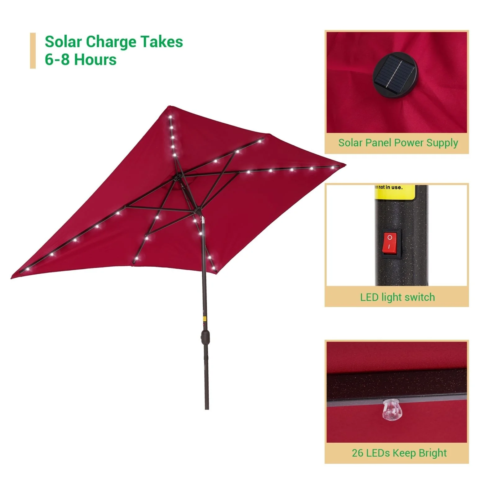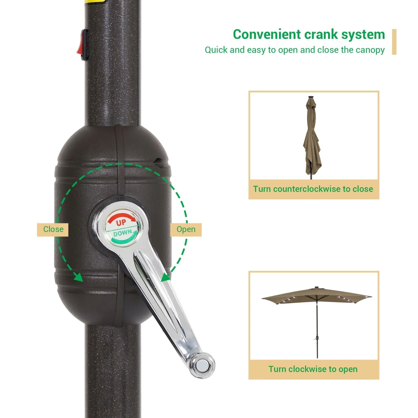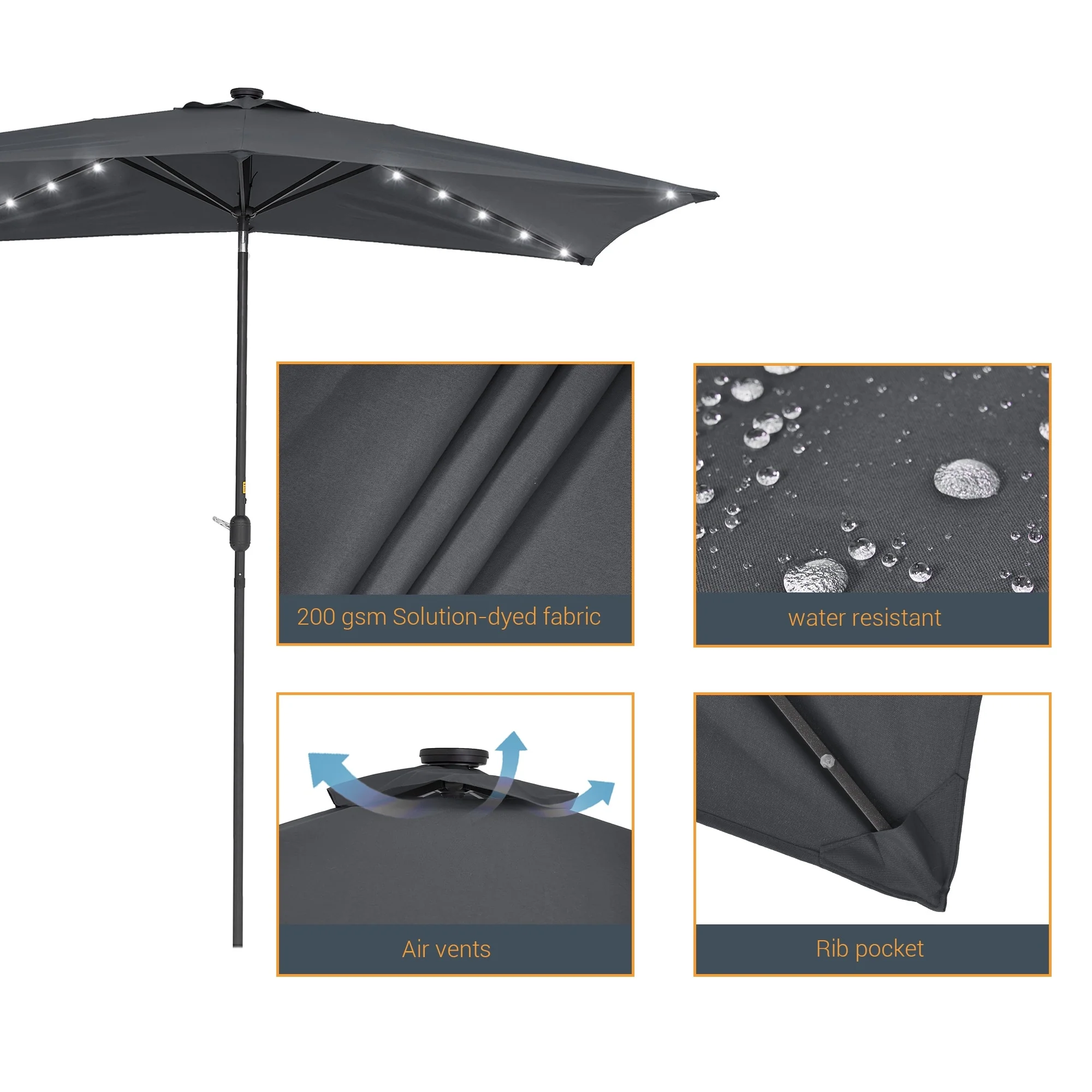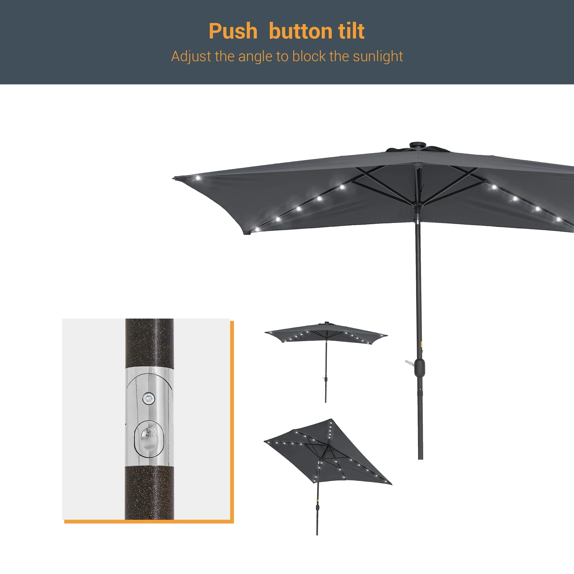 • LIVOOSUN Patio LED 10 x 6.5Ft Market Umbrella Aluminum/Steel Outdoor Table Rectangle Umbrella with Tilt