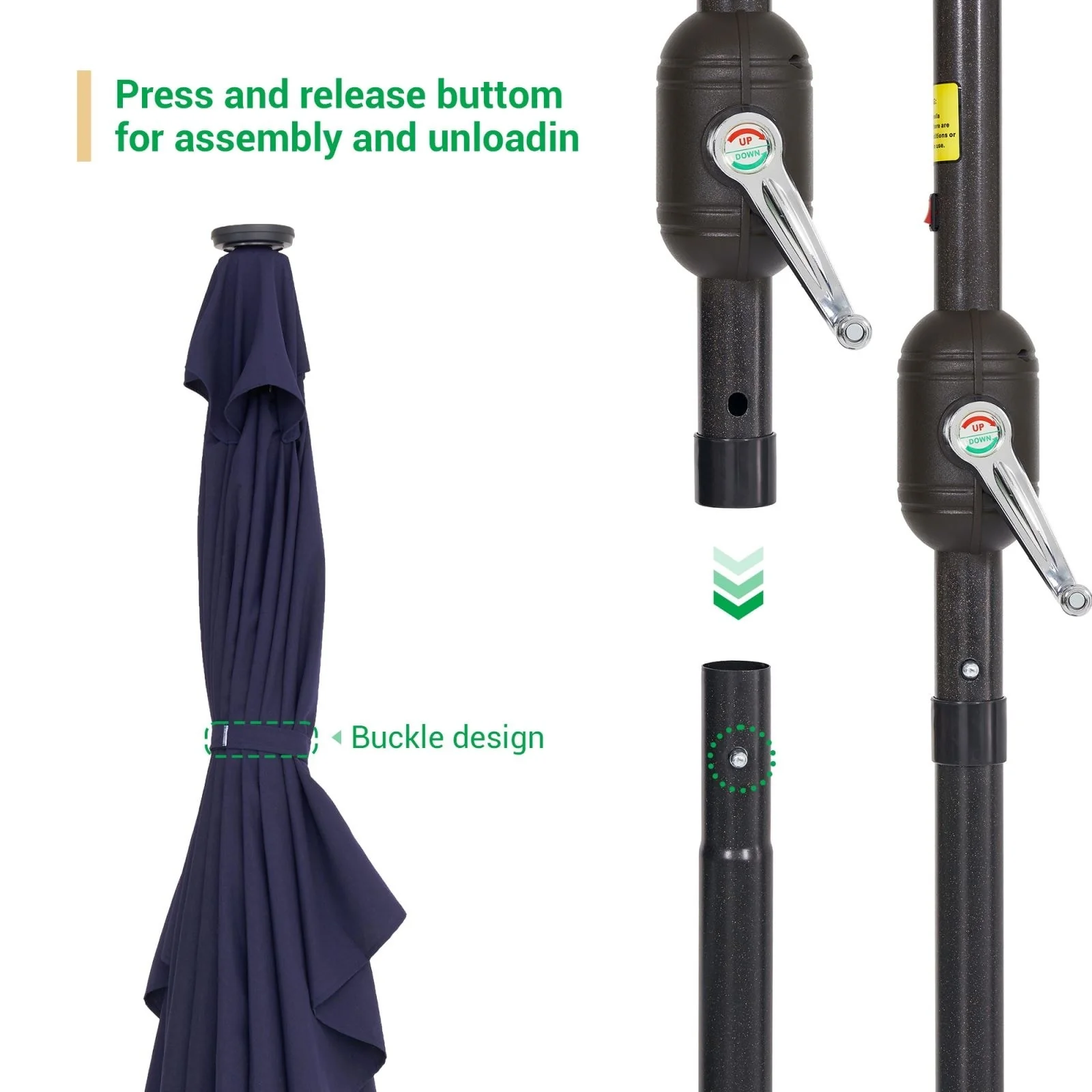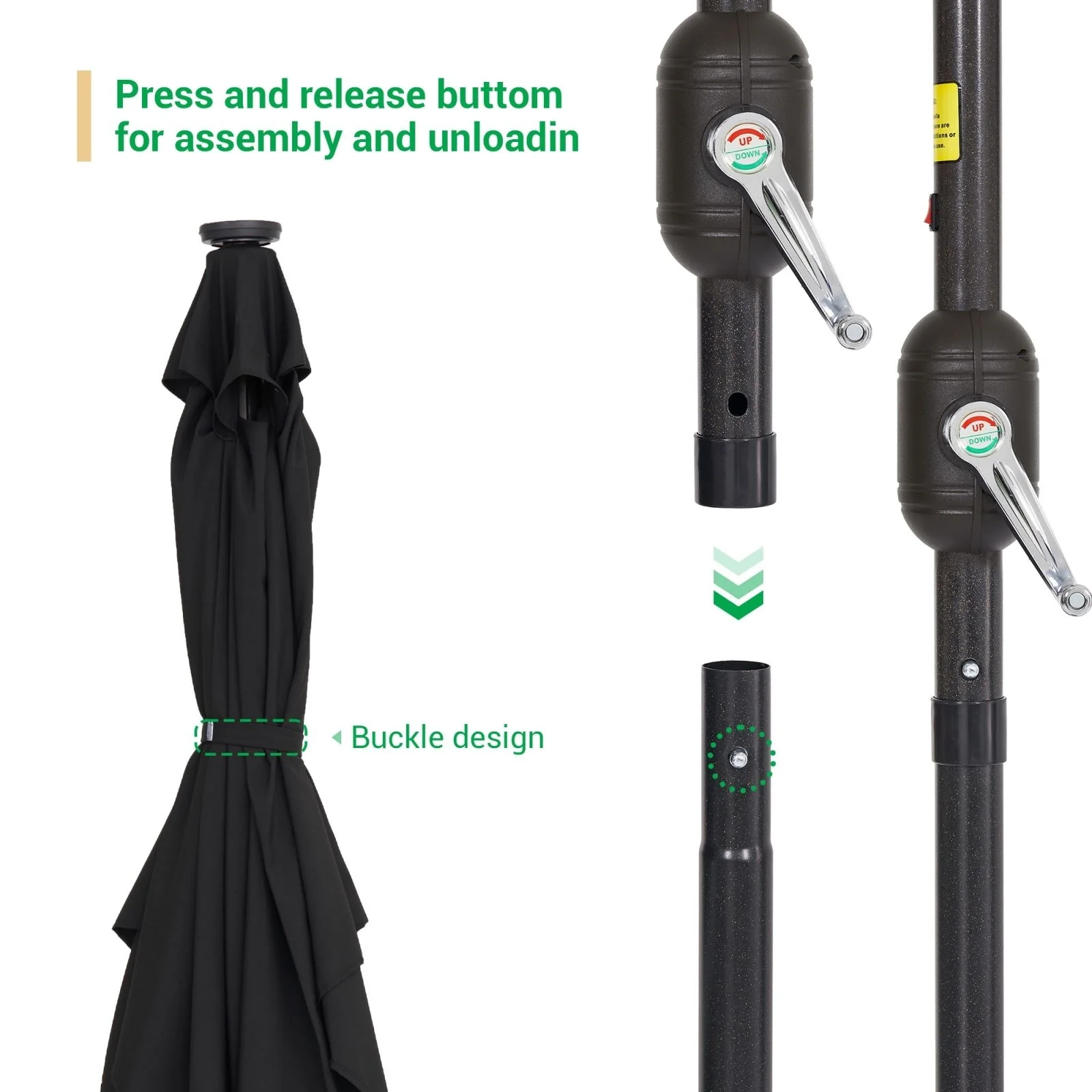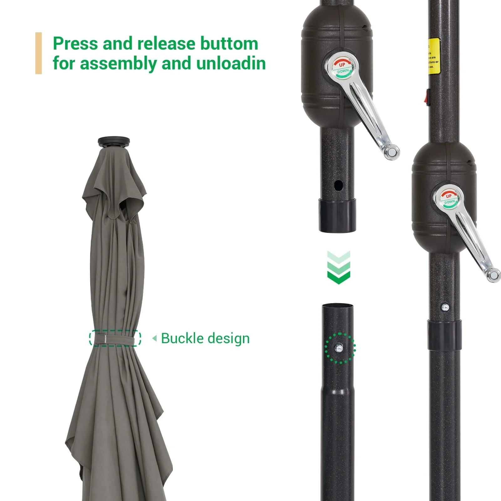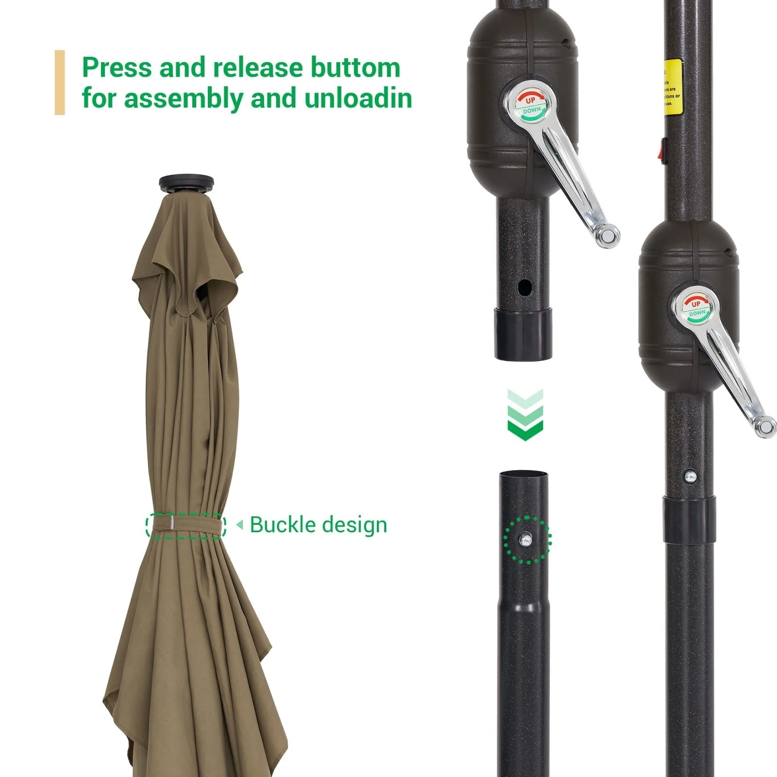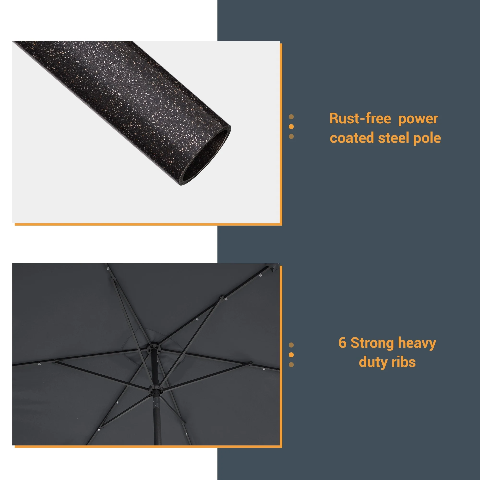 • LIVOOSUN Patio LED 10 x 6.5Ft Market Umbrella Aluminum/Steel Outdoor Table Rectangle Umbrella with Tilt