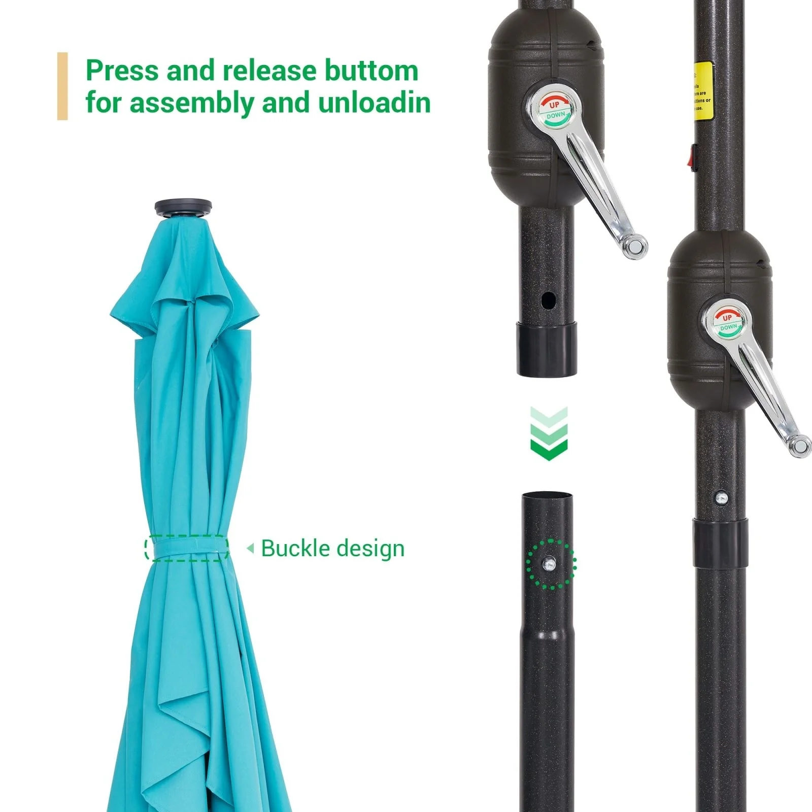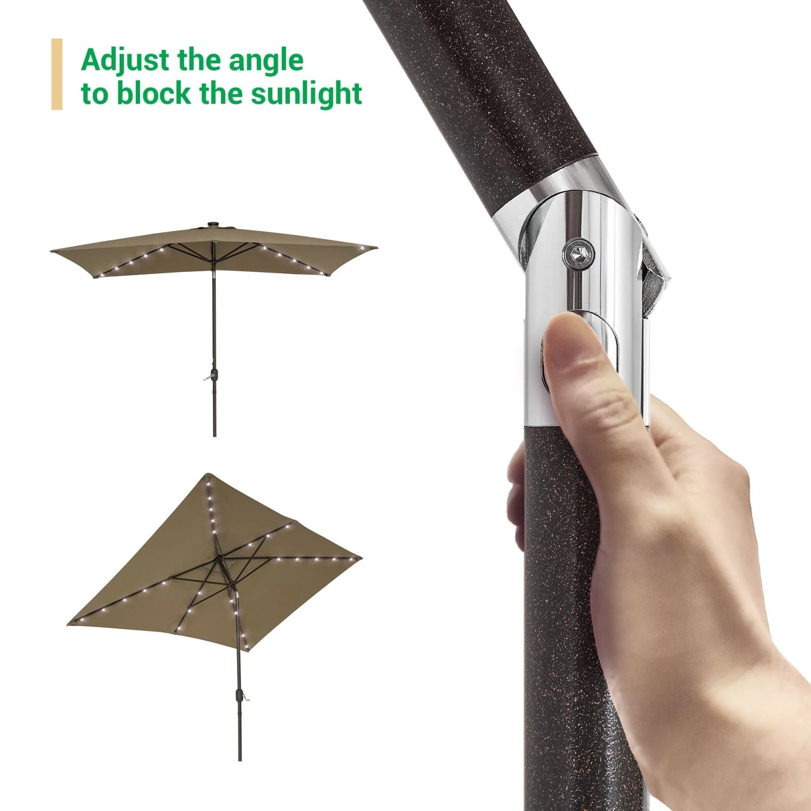 LIVOOSUN Patio LED 10 x 6.5Ft Market Umbrella Aluminum/Steel Outdoor Table Rectangle Umbrella with Tilt
