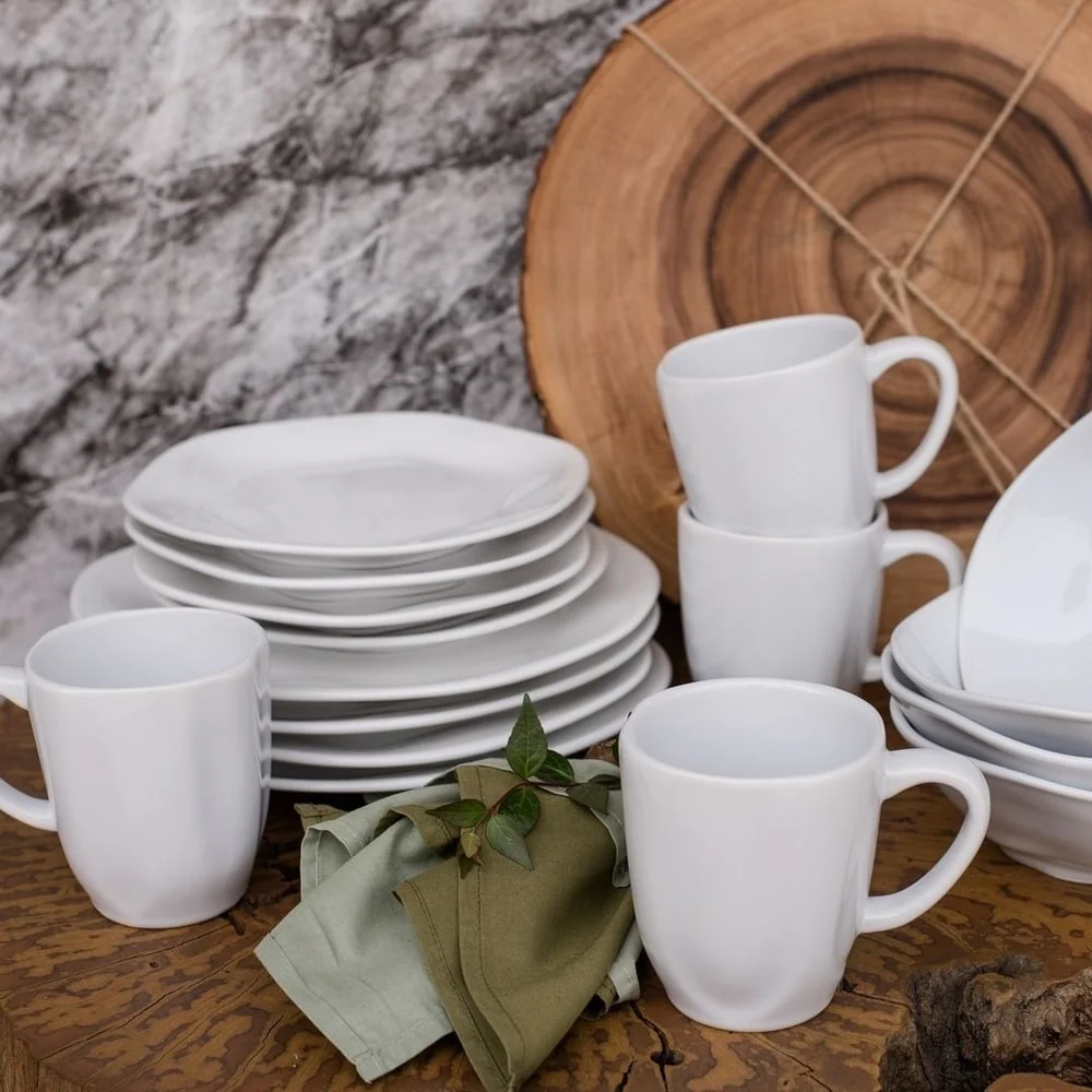 • Set includes: Includes 6 Large Dinner Plates, 6 Salad Plates, 6 Soup Bowls and 6 Mugs.