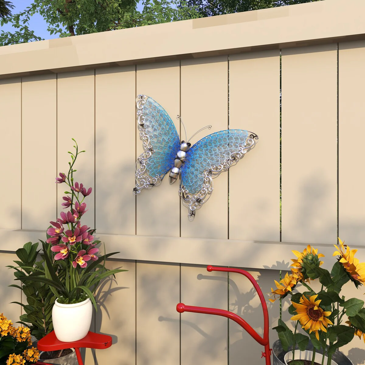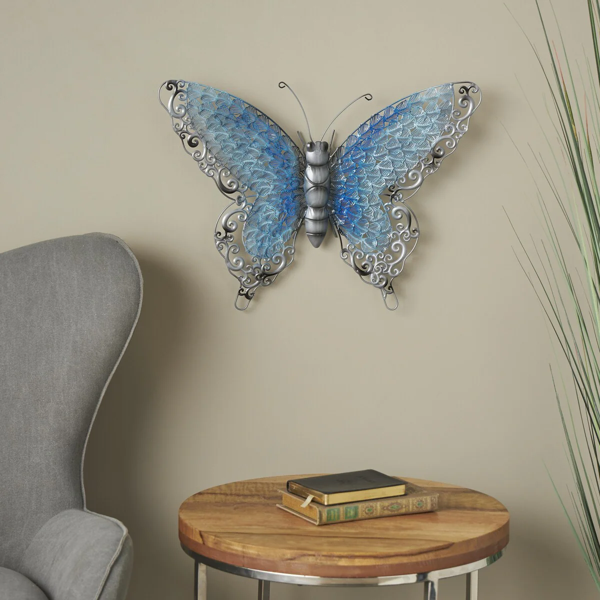 Transform your living space into a captivating art gallery with this expertly designed wall decor. Infuse creativity and balance into your home by showcasing your unique personality through this stunning piece. Ideal for tranquil environments, the butterfly wall sculpture pairs beautifully with indoor potted plants or nature-inspired canvas paintings, creating a charming visual treat.This item is shipped in one carton and comes fully assembled for your convenience. It can be hung vertically using the built-in keyholes; please note that nails and screws are not included. Designed exclusively for indoor use, this single blue, green, and pink wall sculpture complements eclectic styles perfectly.