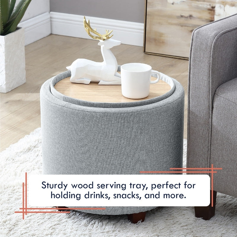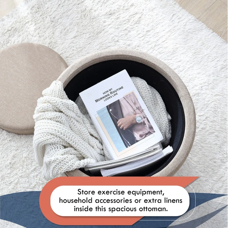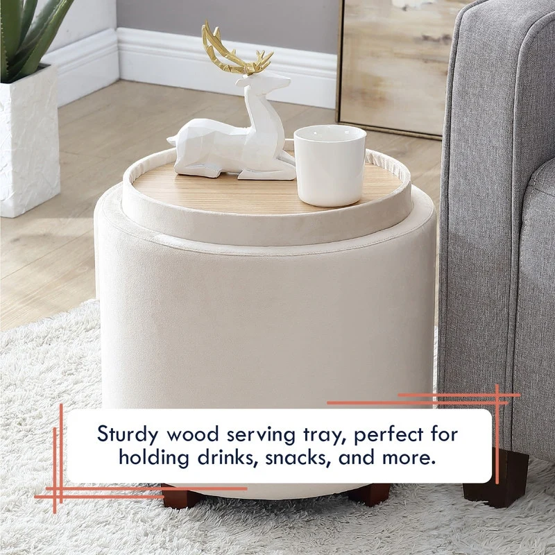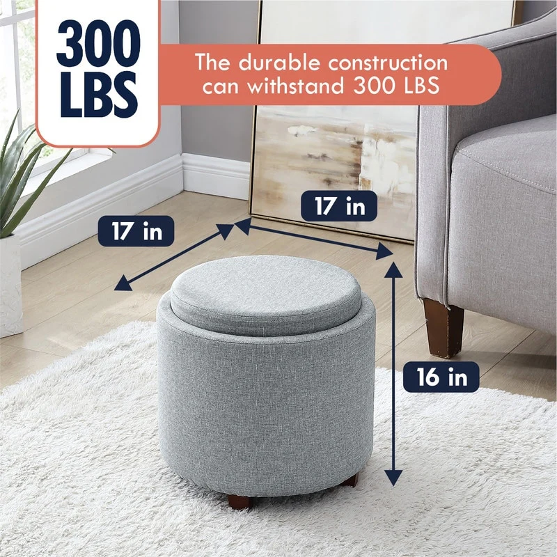 The Ornavo Home Lawrence Round Storage Ottoman with Lift Off Lid and Tray Top Coffee Table is the perfect way to add functional, stylish storage to any room. This ottoman offers a large space for storing items like magazines, blankets, books, toys and more. The tray top provides an ideal surface for a coffee table or extra seating when friends come over. Built with quality and sturdiness in mind, this ottoman is also designed for comfort so you can kick your feet up and enjoy it for years to come. Plus, it’s easy to clean and even easier to assemble! With its chic upholstery and sleek style, you won’t find another storage ottoman that looks as good as this one does. Add the Ornavo Home Lawrence Round Storage Ottoman with Lift Off Lid and Tray Top Coffee Table to your living space today—you won’t regret it!