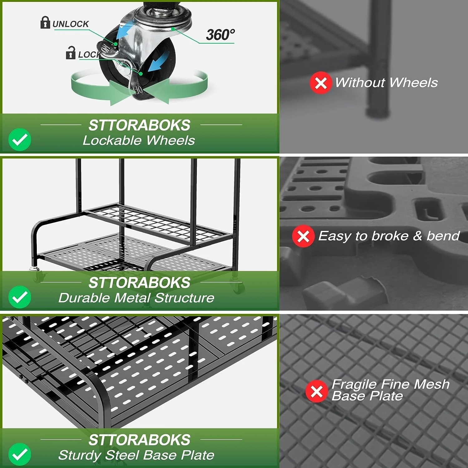 Sttoraboks Tool Organizer Yard Storage with Wheels and Hooks, Shed, Garage, Basement, Outdoor, Home, Black