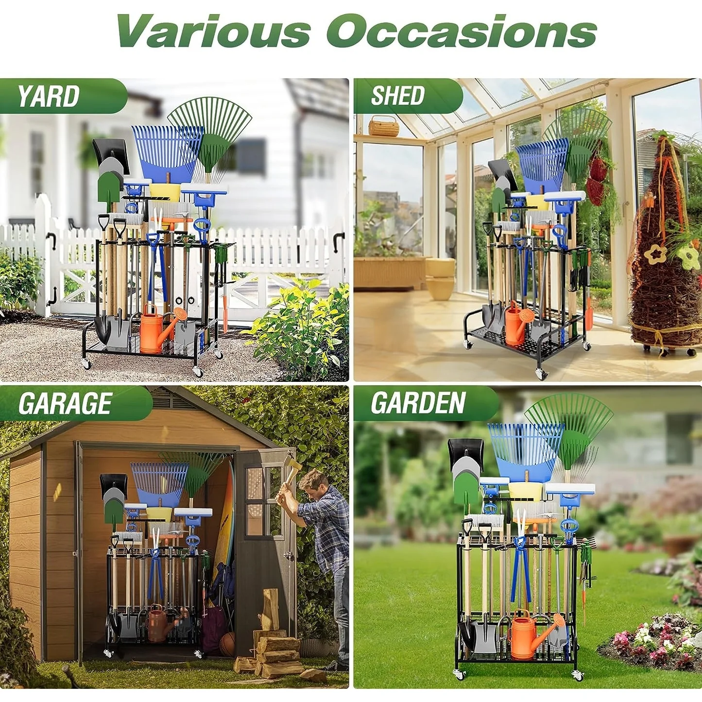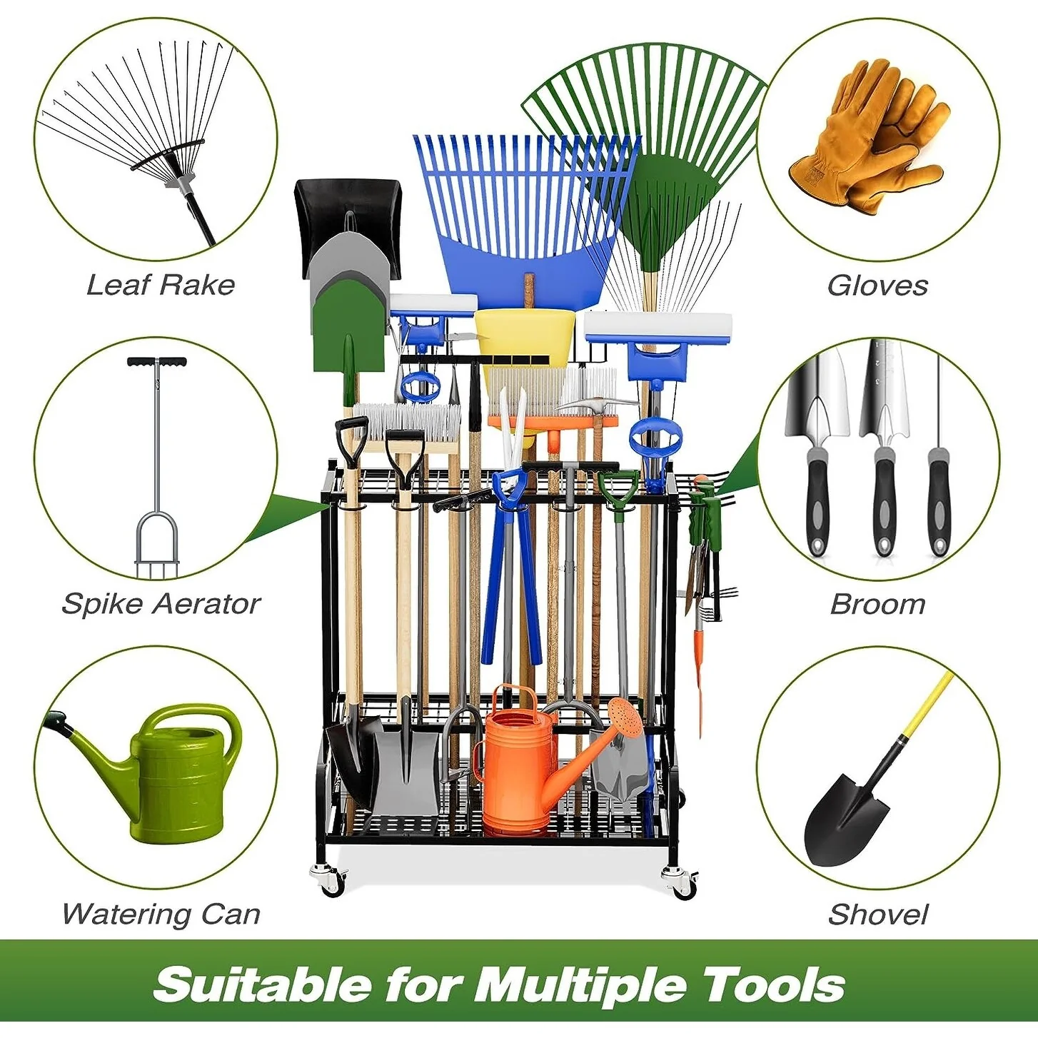 • Sttoraboks Tool Organizer Yard Storage with Wheels and Hooks, Shed, Garage, Basement, Outdoor, Home, Black