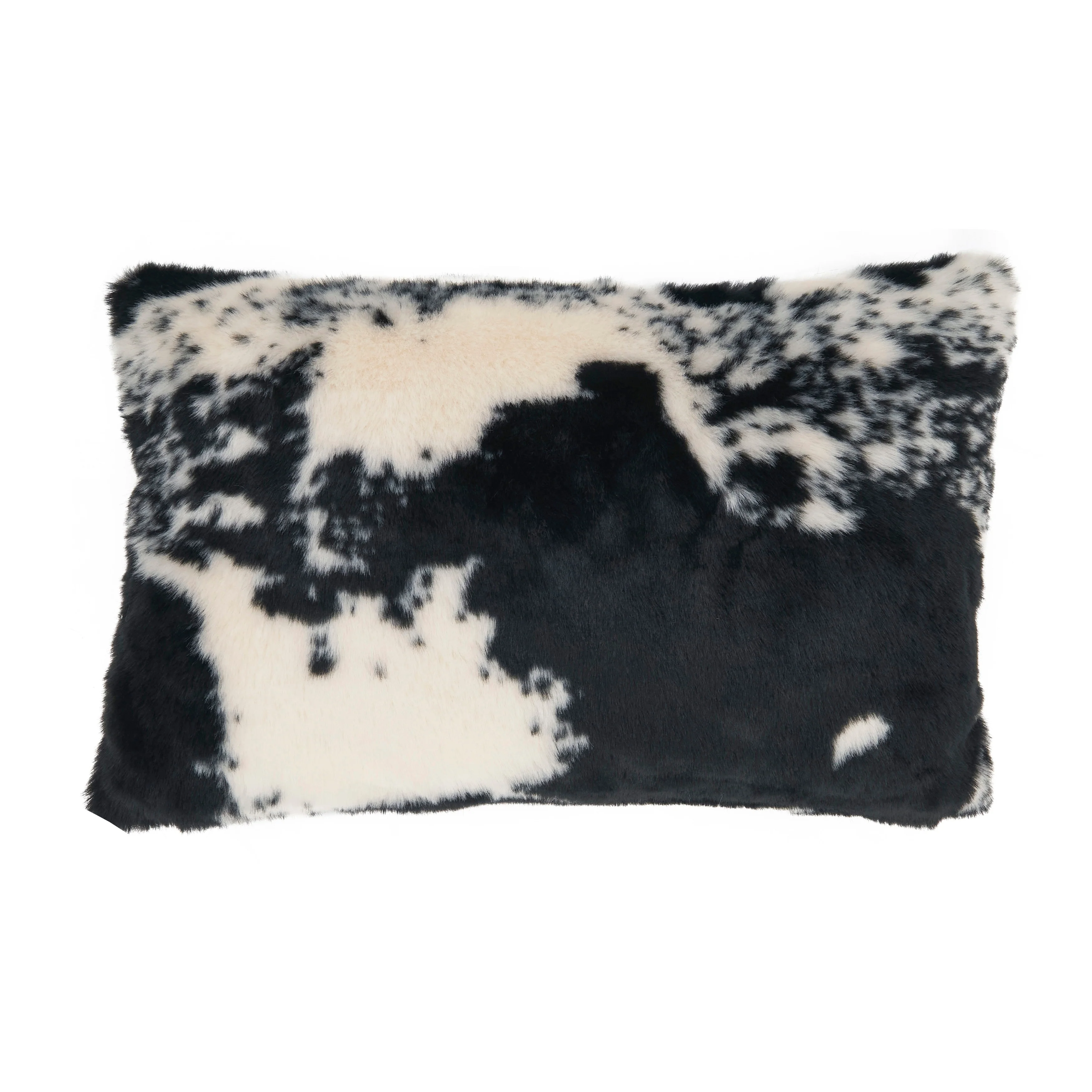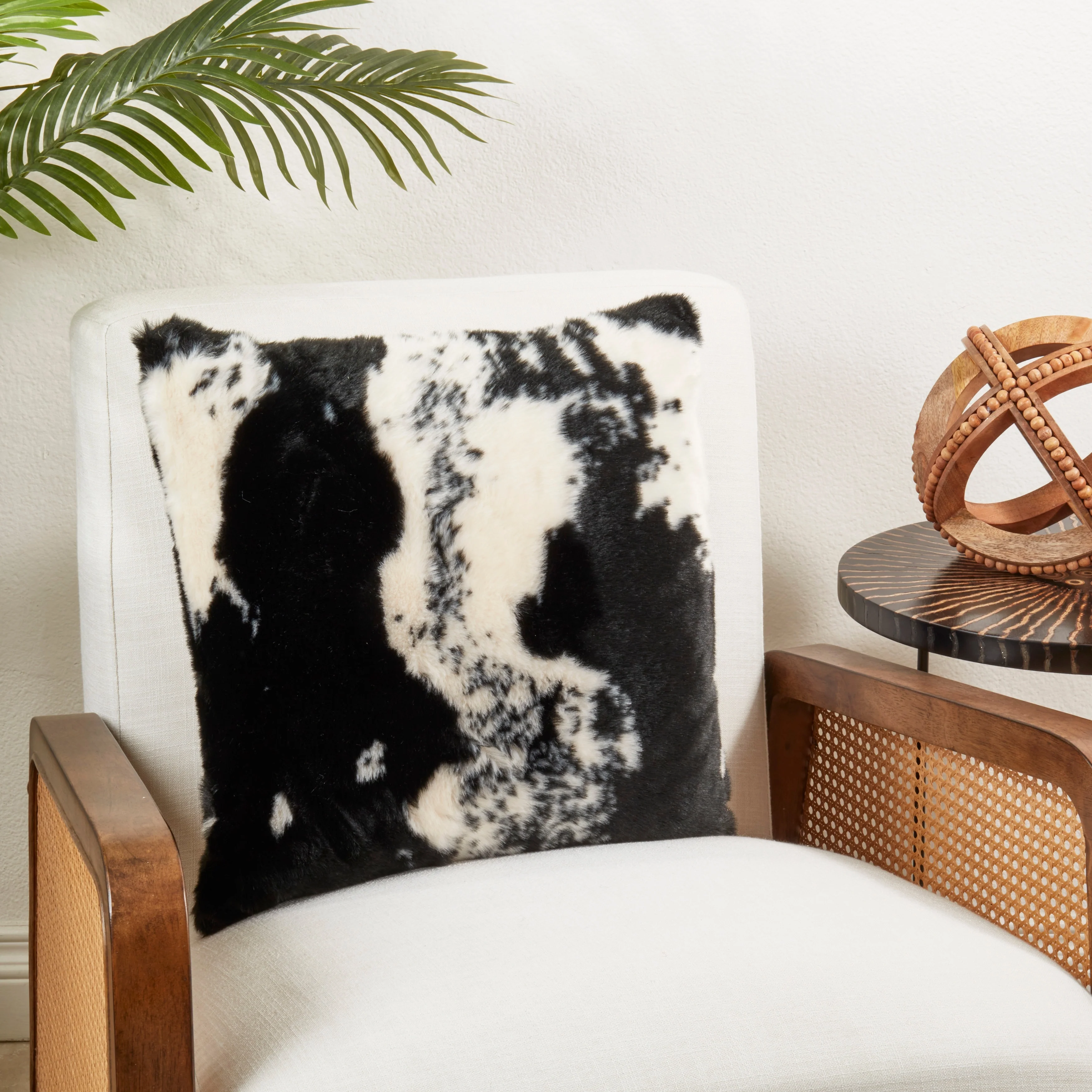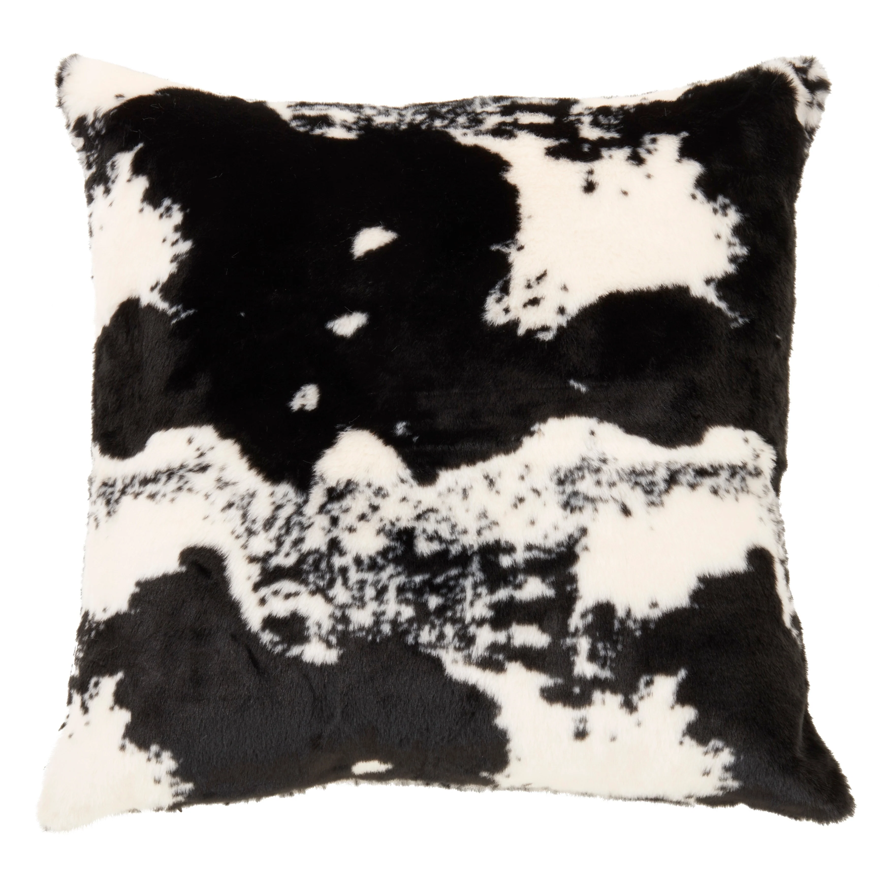 Indulge in a cozy lodge ambiance with this faux-cowhide throw pillow. The brown-and-white animal-themed finish complements warm-colored furnishings, and the hidden zipper closure doesn't interfere with the design. This reversible throw pillow has a 100-percent polyester exterior that withstands daily use.